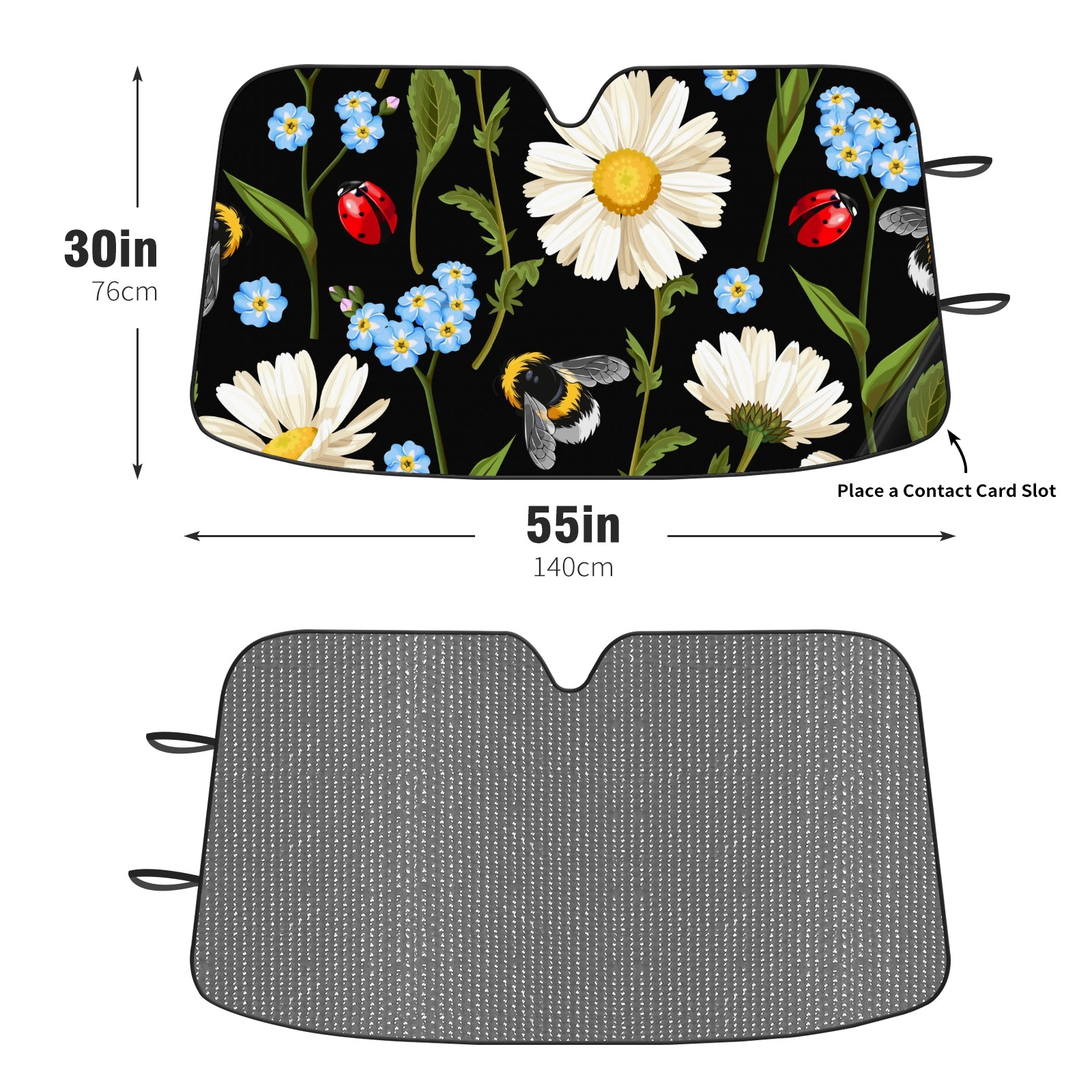 Car Windshield Sun Shade for Front Window Ladybug Meadow Flowers Foldable Vehicle Windshield Car Sun Visor Covers Automotive Window Protector Car Privacy Sun Blocker