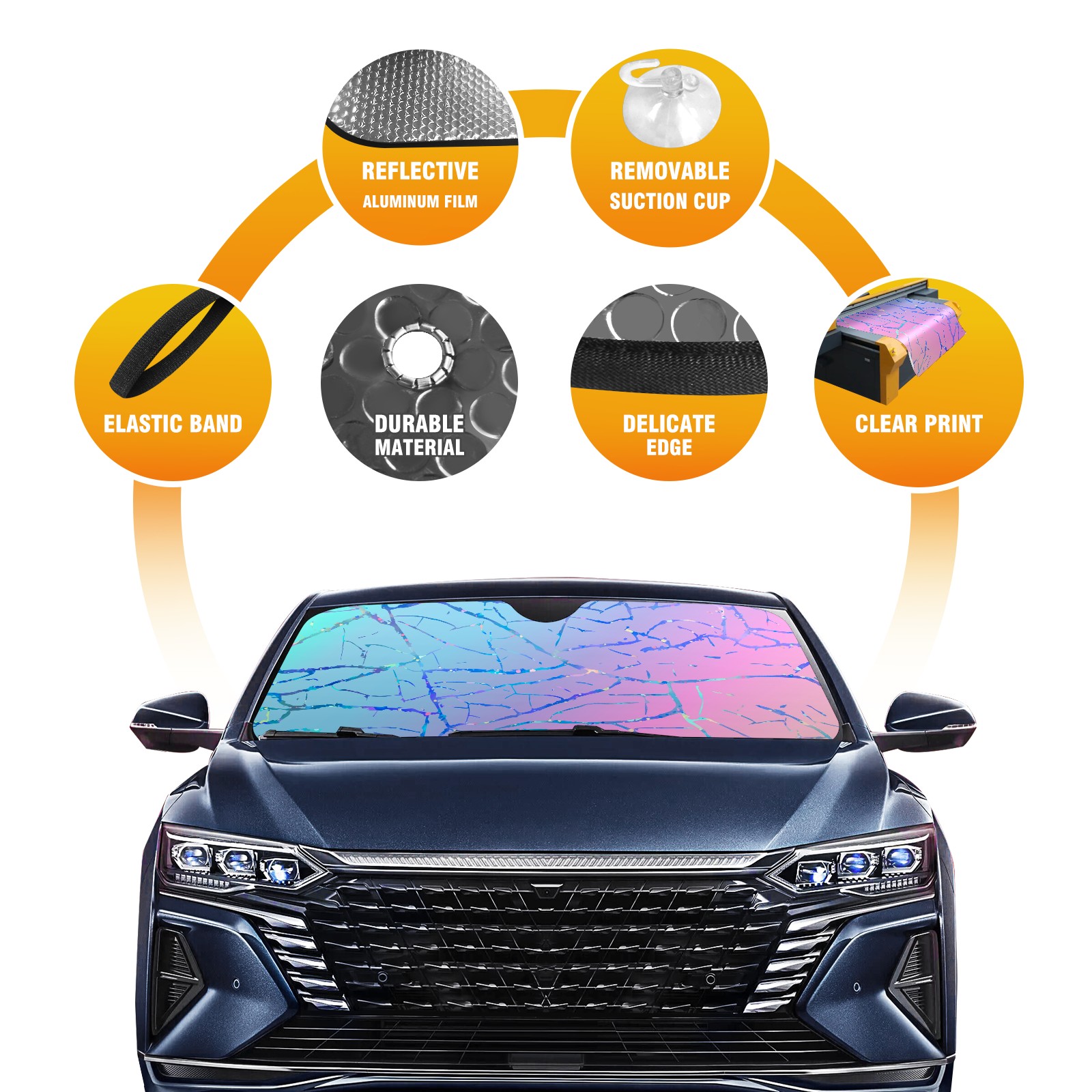 Diameter /Size 63"L x 33.5"W</b><br> Made from excellent materials which makes it sturdy and protects the car from the sun. Easy to use and pack. Makes the interior of the car cooler.You can easily stash the sunshade in the storage bag or store long term.It open and closes easy. Also the leather storage bag is durable and easy to put the umbrella back into.This windshield sunshade provides complete coverage and keeps your car interior cool under direct sun. It is easy to open and position under the windshield and around the rear-view mirror. Makes Your Car Easy To Identify, Perfect For Finding Your Car In Crowded Parking Lots And Garages.Great Choice: It Is A Great Gift For Dad, Boyfriend, Brother, Brother And Uncle, Friends, Classmates, Family And So On.<br> Notice:</b><br> Due To Difference Computer Monitors, The Color Maybe Slightly Different From Picture. As Different Measurement Methods, Measurement Data Will Float Within 2%.I Hope You Understand.<br> If You Have Any Question About The Item Please Do Not Hesitate To Contact Us Immediately And We Will Give You A Satisfactory Reply Within 24 Hours.