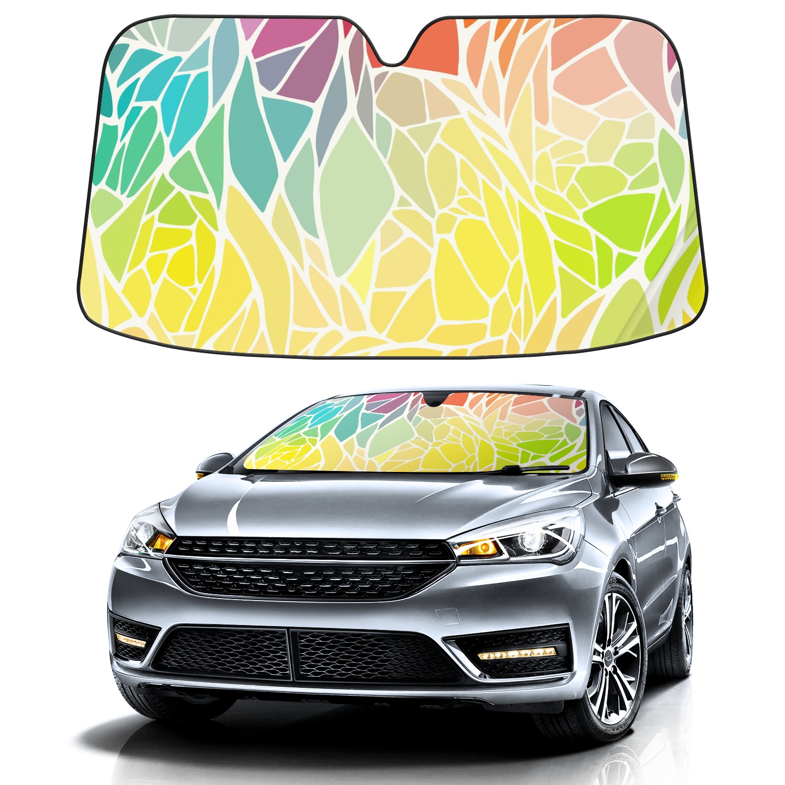 Car Windshield Sun Shade for Front Window Abstract Geometric Rainbow Foldable Vehicle Windshield Car Sun Visor Covers Automotive Window Protector Car Privacy Sun Blocker