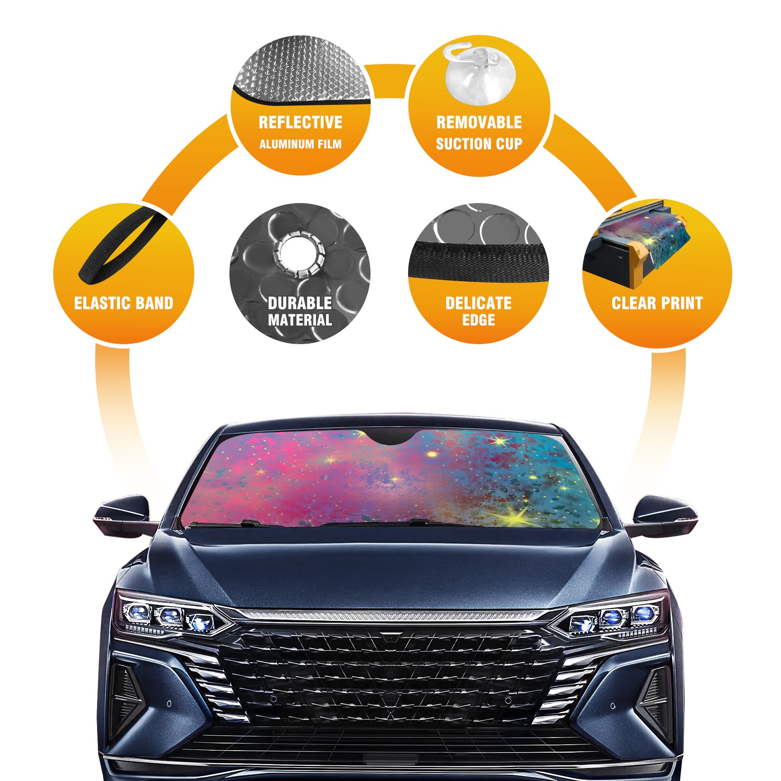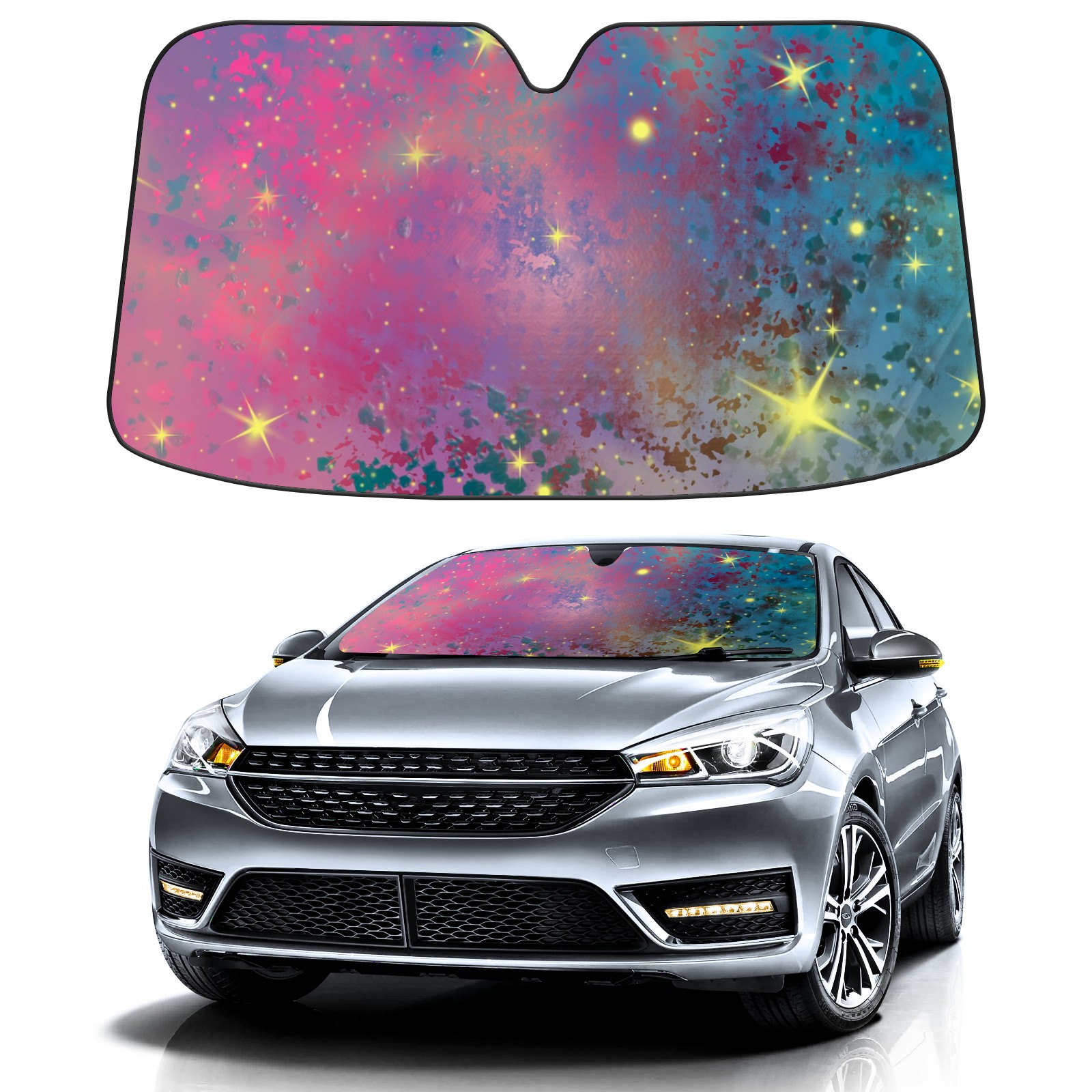 Car Windshield Sun Shade for Front Window Pink Galaxy Sky Stars Foldable Vehicle Windshield Car Sun Visor Covers Automotive Window Protector Car Privacy Sun Blocker