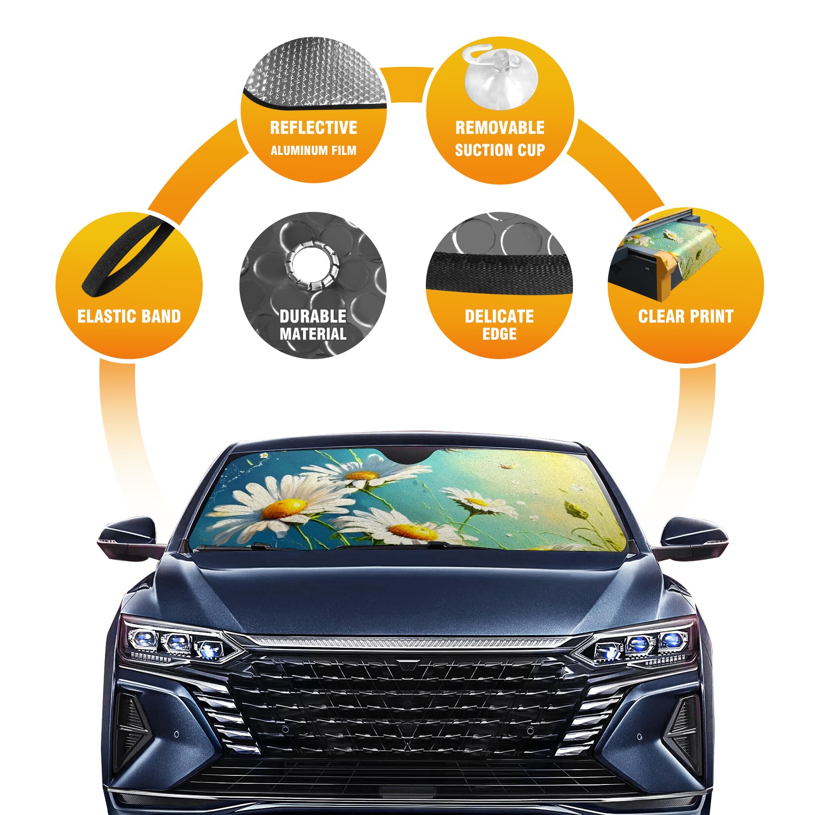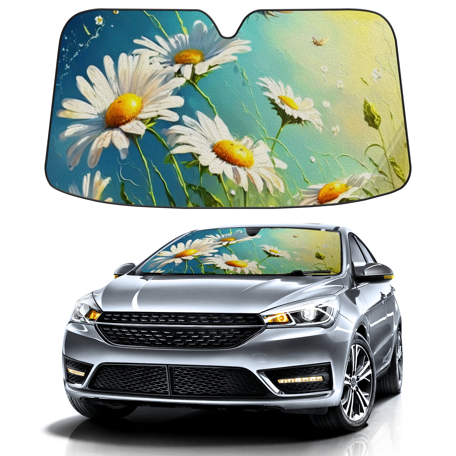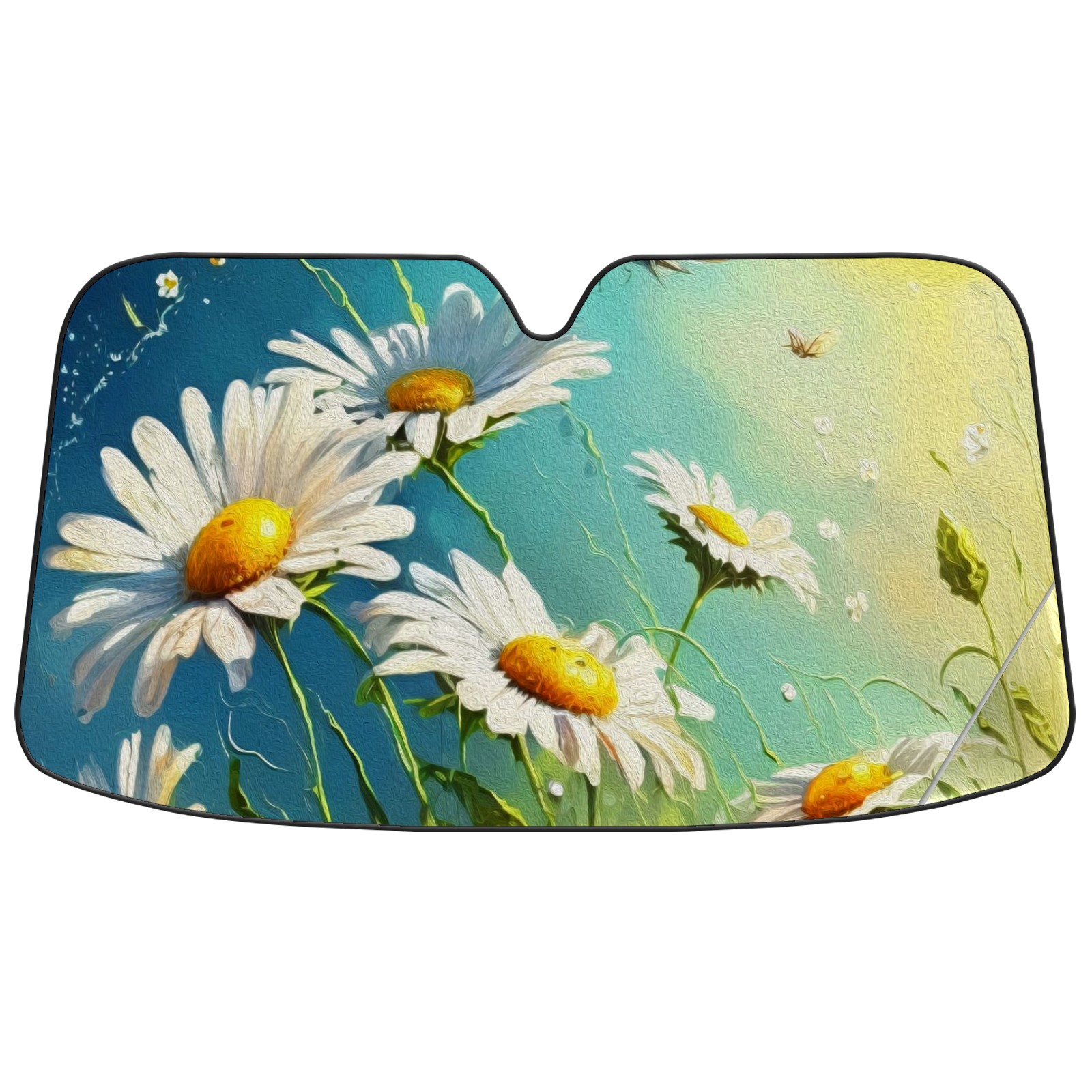 Car Windshield Sun Shade for Front Window Summer Daisy Butterfly Painting Foldable Vehicle Windshield Car Sun Visor Covers Automotive Window Protector Car Privacy Sun Blocker