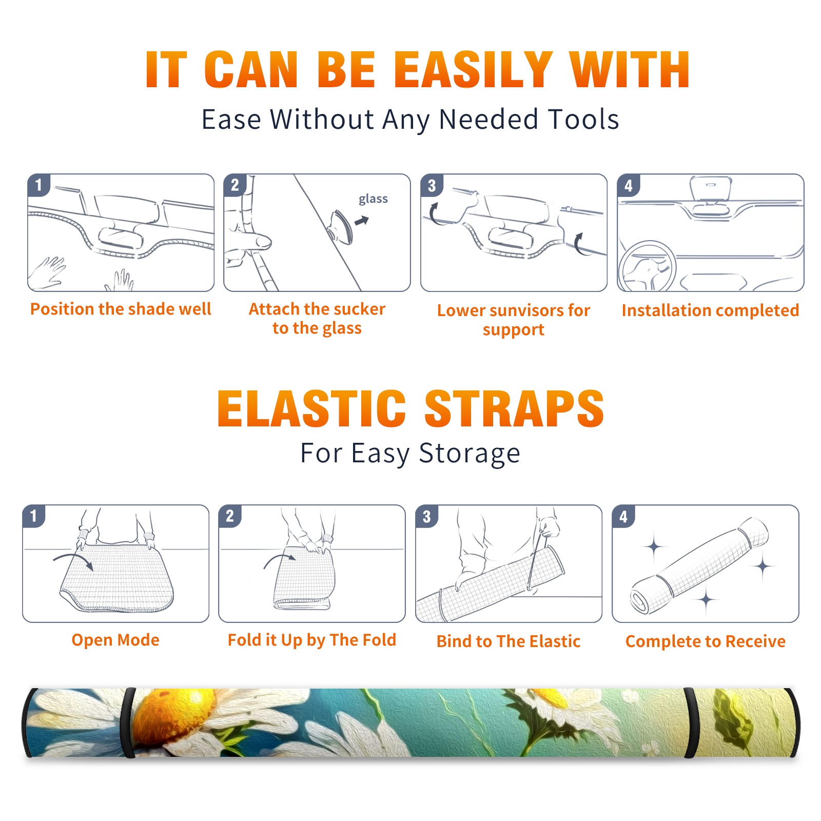 Diameter /Size 63"L x 33.5"W</b><br> Made from excellent materials which makes it sturdy and protects the car from the sun. Easy to use and pack. Makes the interior of the car cooler.You can easily stash the sunshade in the storage bag or store long term.It open and closes easy. Also the leather storage bag is durable and easy to put the umbrella back into.This windshield sunshade provides complete coverage and keeps your car interior cool under direct sun. It is easy to open and position under the windshield and around the rear-view mirror. Makes Your Car Easy To Identify, Perfect For Finding Your Car In Crowded Parking Lots And Garages.Great Choice: It Is A Great Gift For Dad, Boyfriend, Brother, Brother And Uncle, Friends, Classmates, Family And So On.<br> Notice:</b><br> Due To Difference Computer Monitors, The Color Maybe Slightly Different From Picture. As Different Measurement Methods, Measurement Data Will Float Within 2%.I Hope You Understand.<br> If You Have Any Question About The Item Please Do Not Hesitate To Contact Us Immediately And We Will Give You A Satisfactory Reply Within 24 Hours.