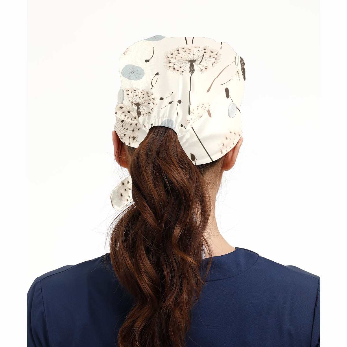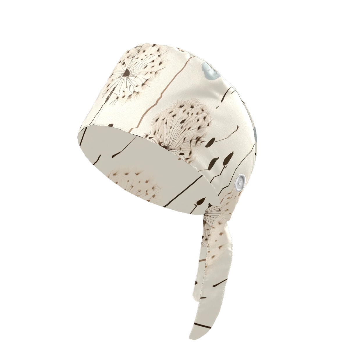 Working Caps with Button & Sweatband Satin Lined Cotton Adjustable Nurse Hats Elastic Band Scrub Cap Surgeon Hat Dandelion