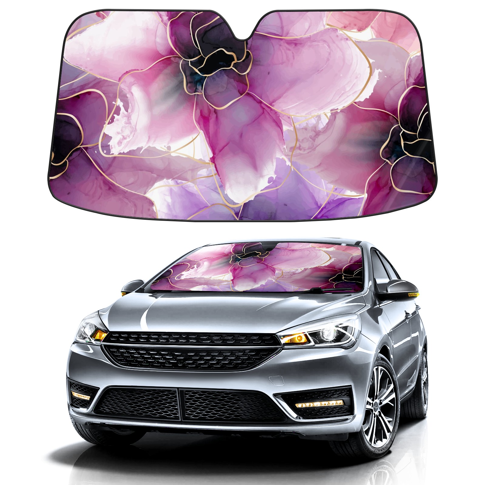 Car Windshield Sun Shade for Front Window Purple Flower Floral Foldable Vehicle Windshield Car Sun Visor Covers Automotive Window Protector Car Privacy Sun Blocker