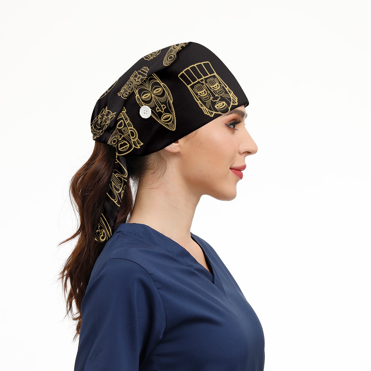 Working Caps with Button & Sweatband Satin Lined Cotton Adjustable Nurse Hats Elastic Band Scrub Cap Surgeon Hat 1260288961
