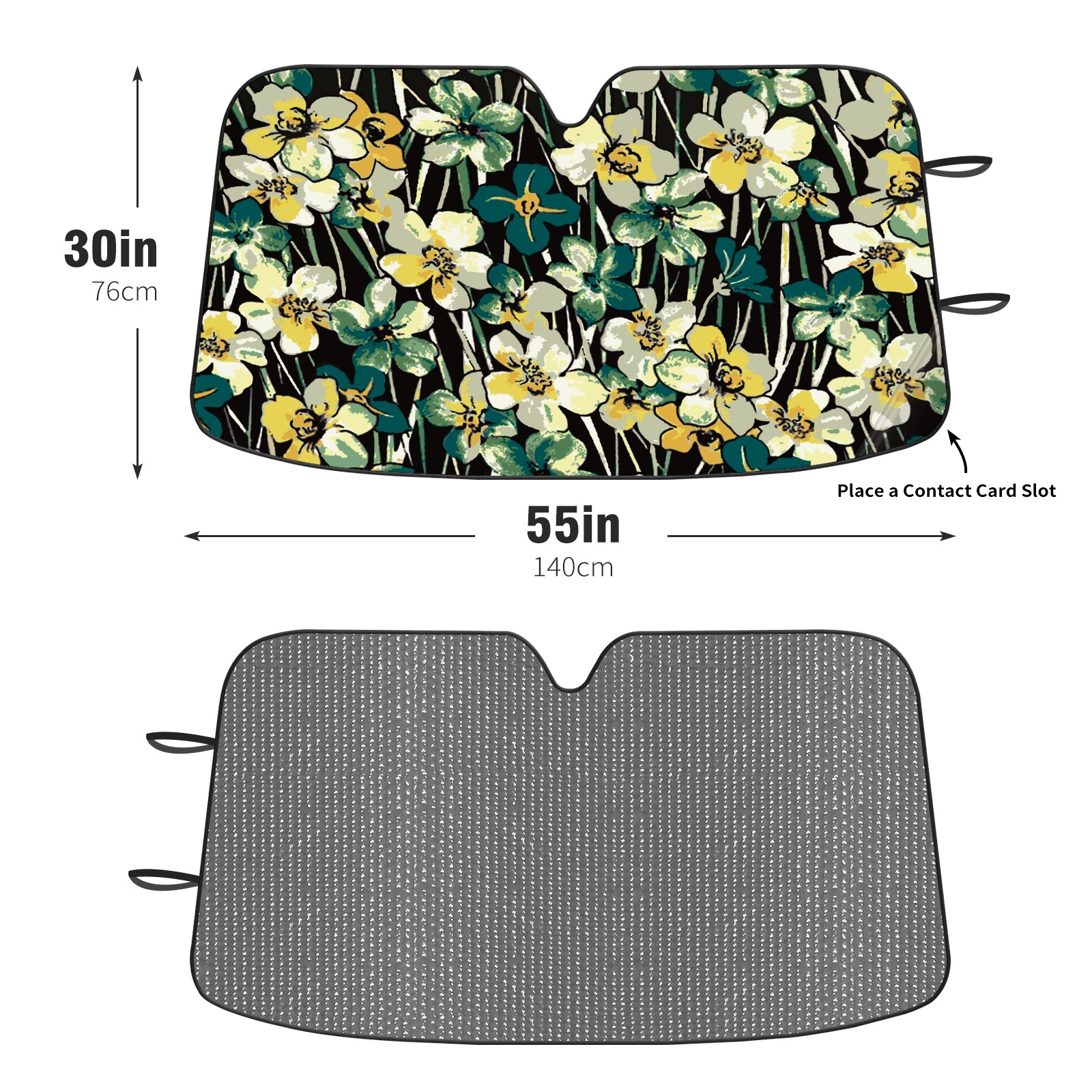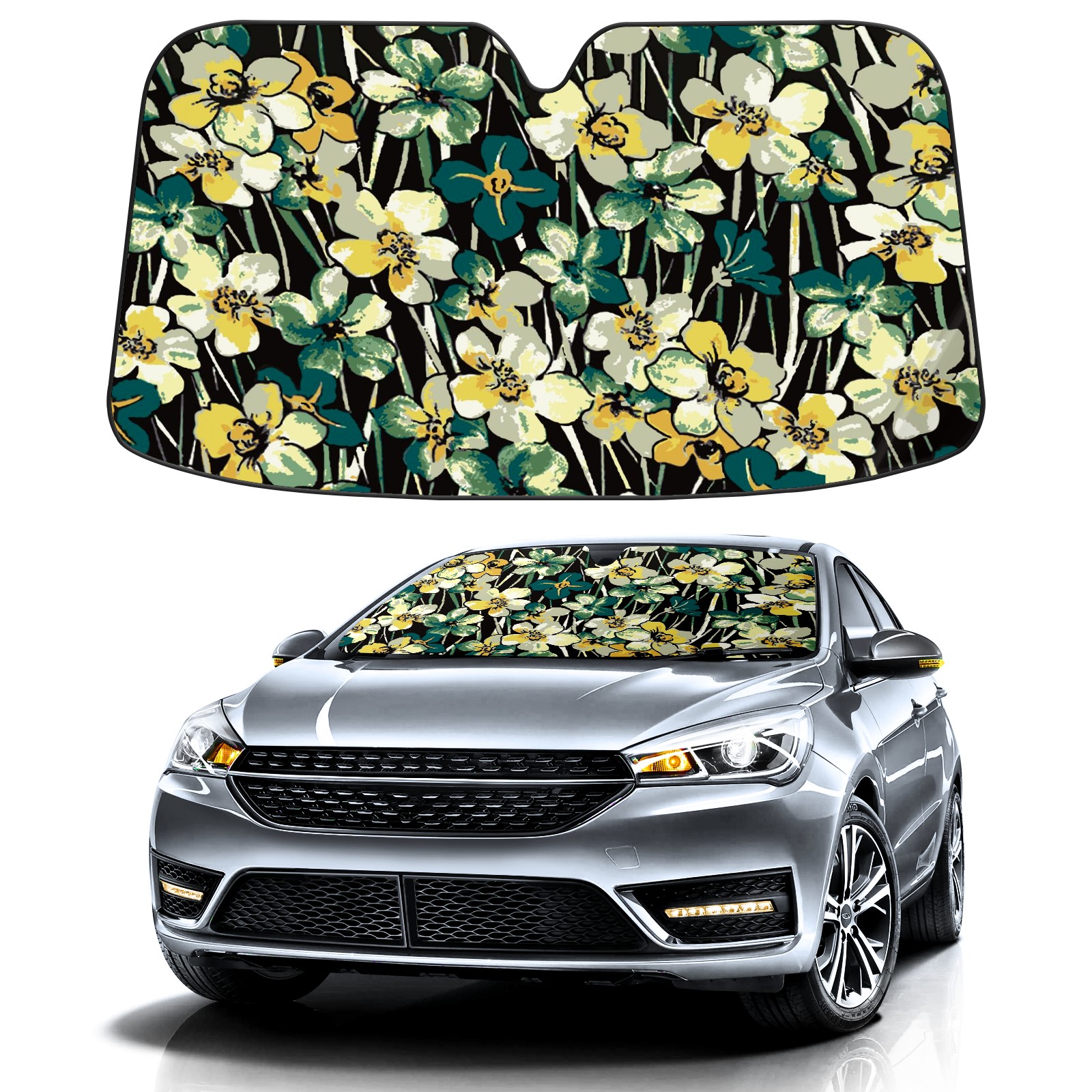 Car Windshield Sun Shade for Front Window Abstract Green Blooming Flower Foldable Vehicle Windshield Car Sun Visor Covers Automotive Window Protector Car Privacy Sun Blocker