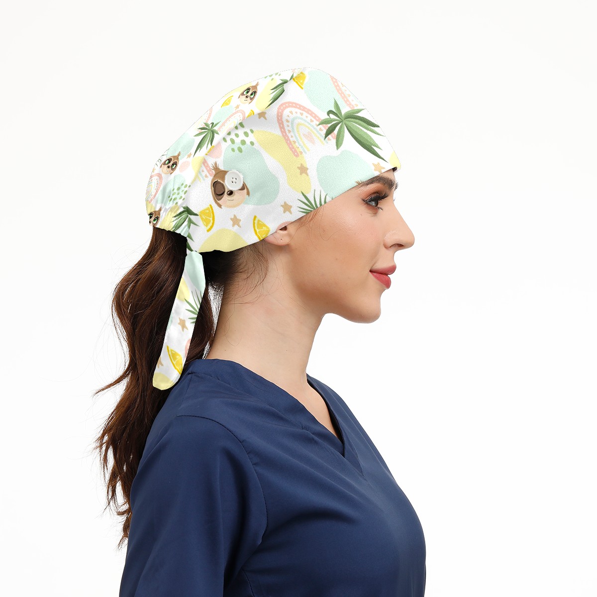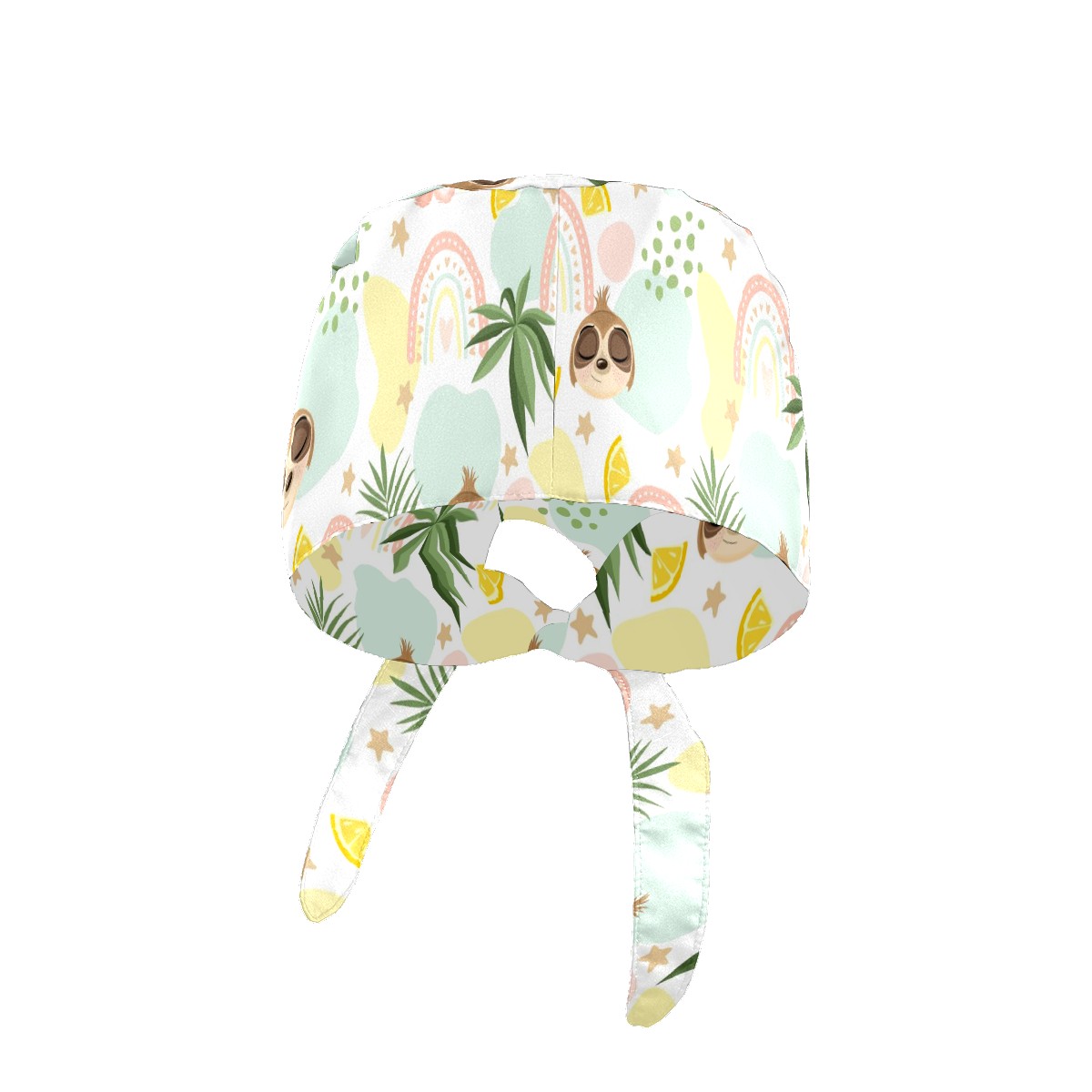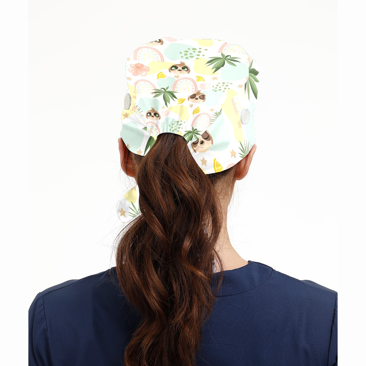 Working Caps with Button & Sweatband Satin Lined Cotton Adjustable Nurse Hats Elastic Band Scrub Cap Surgeon Hat Cute Sloth On Summer Background