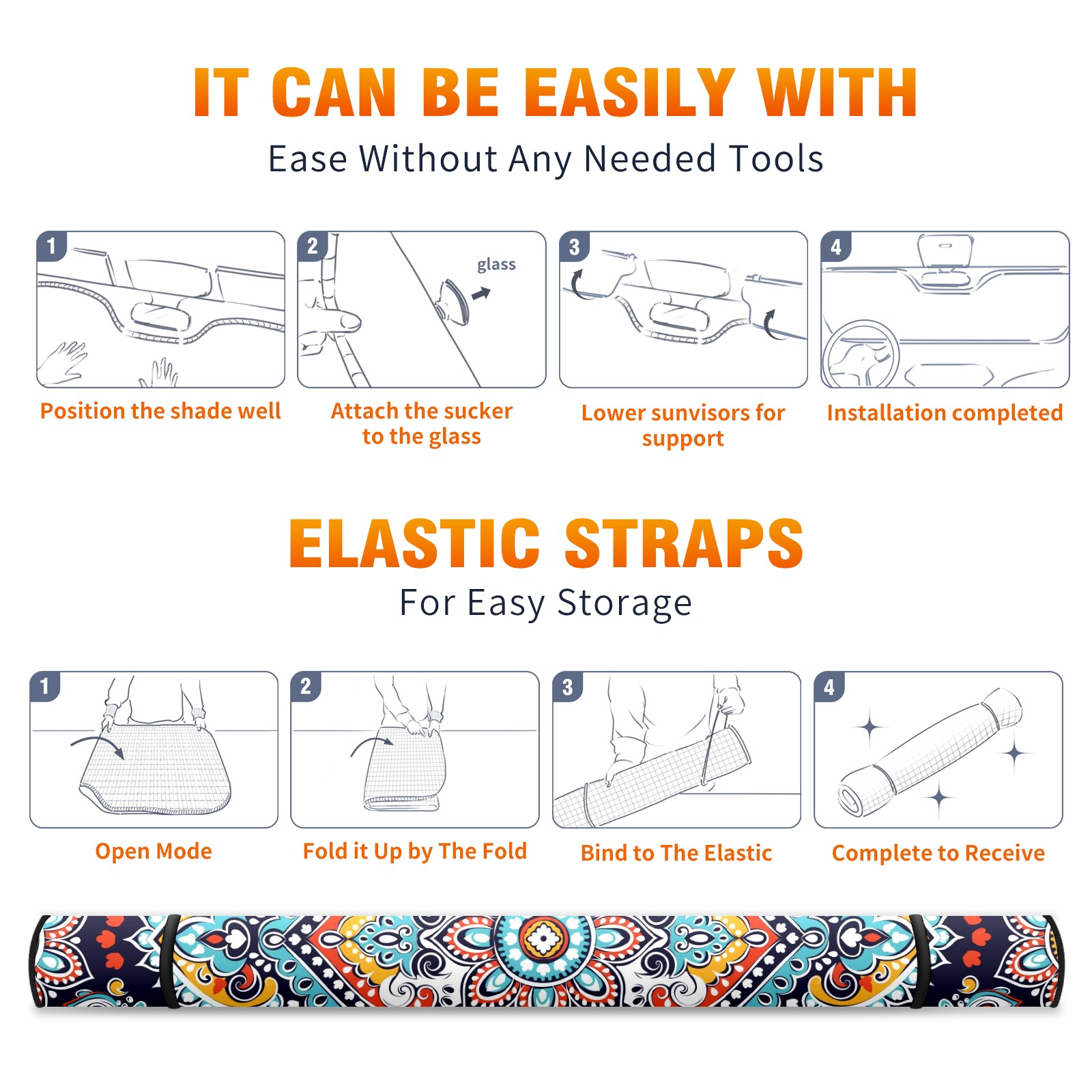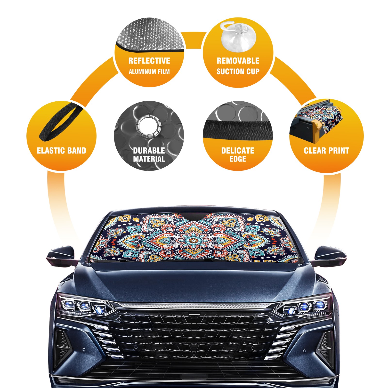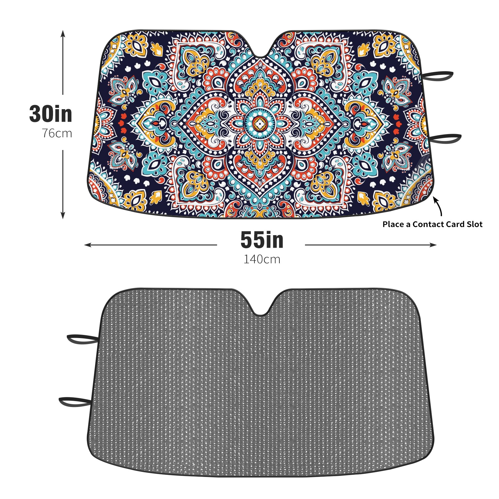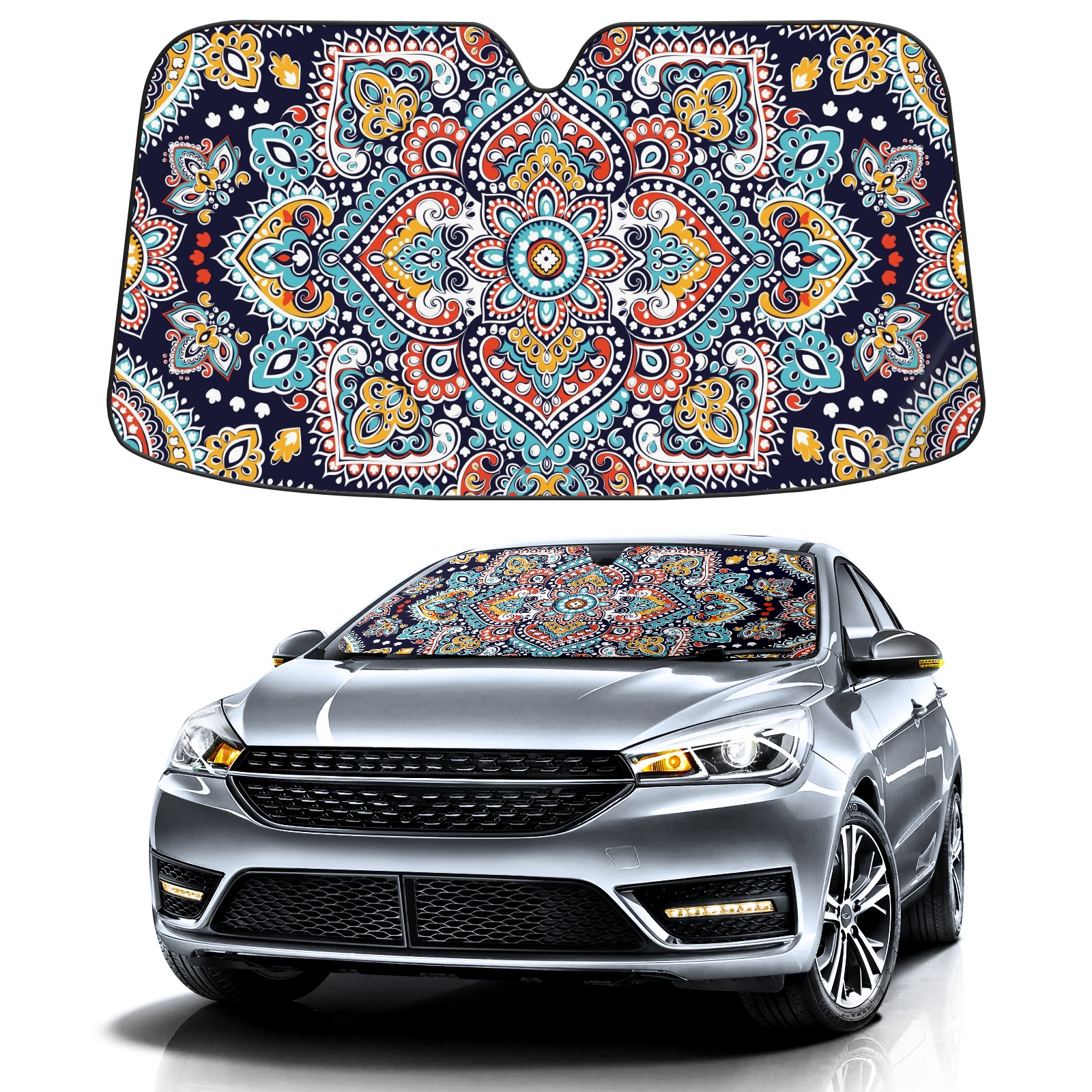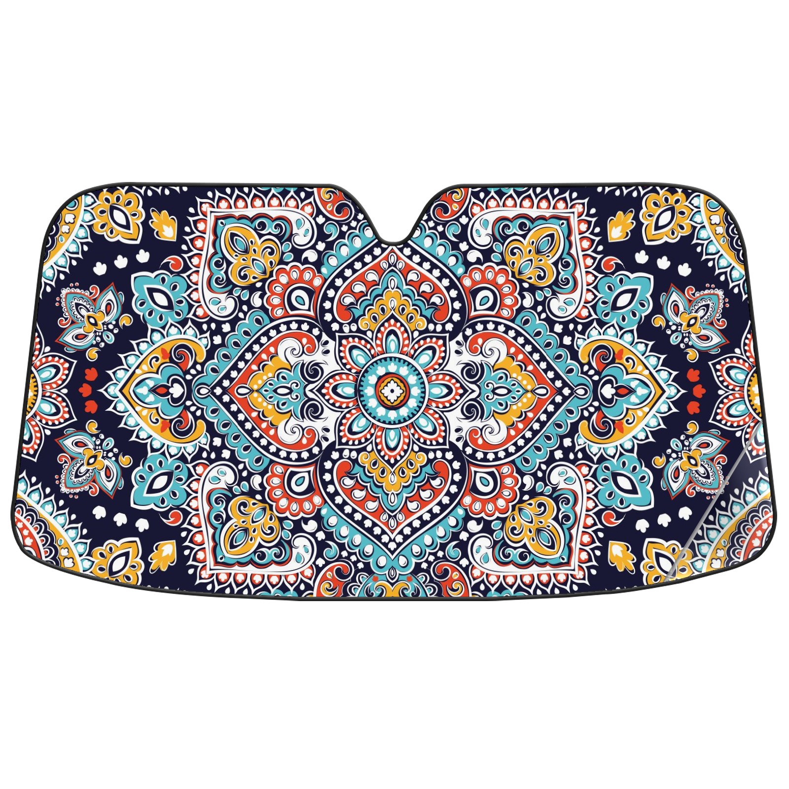 Car Windshield Sun Shade for Front Window Indian Floral Ethnic Mandala Pattern Foldable Vehicle Windshield Car Sun Visor Covers Automotive Window Protector Car Privacy Sun Blocker
