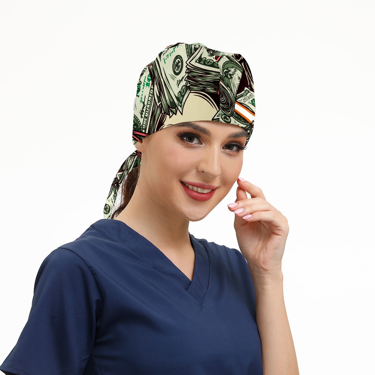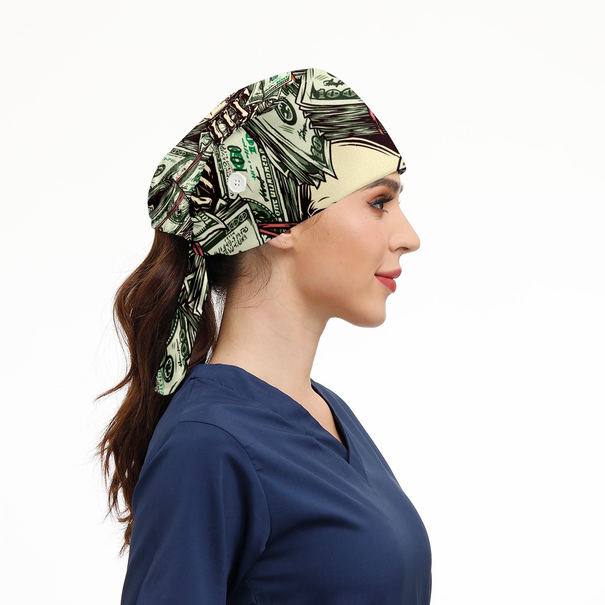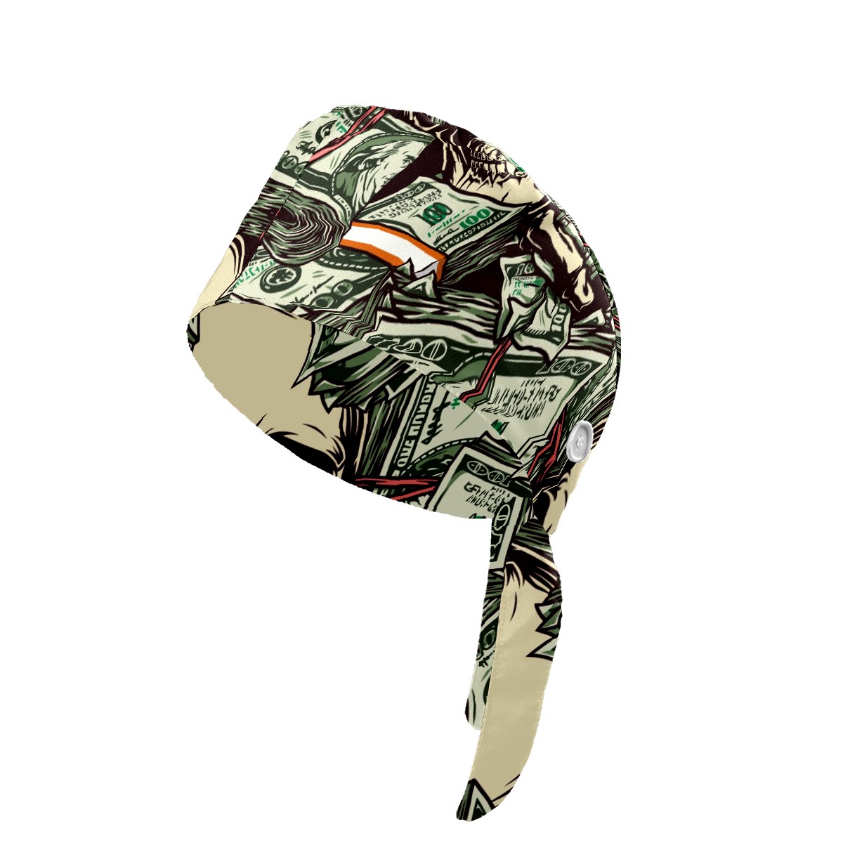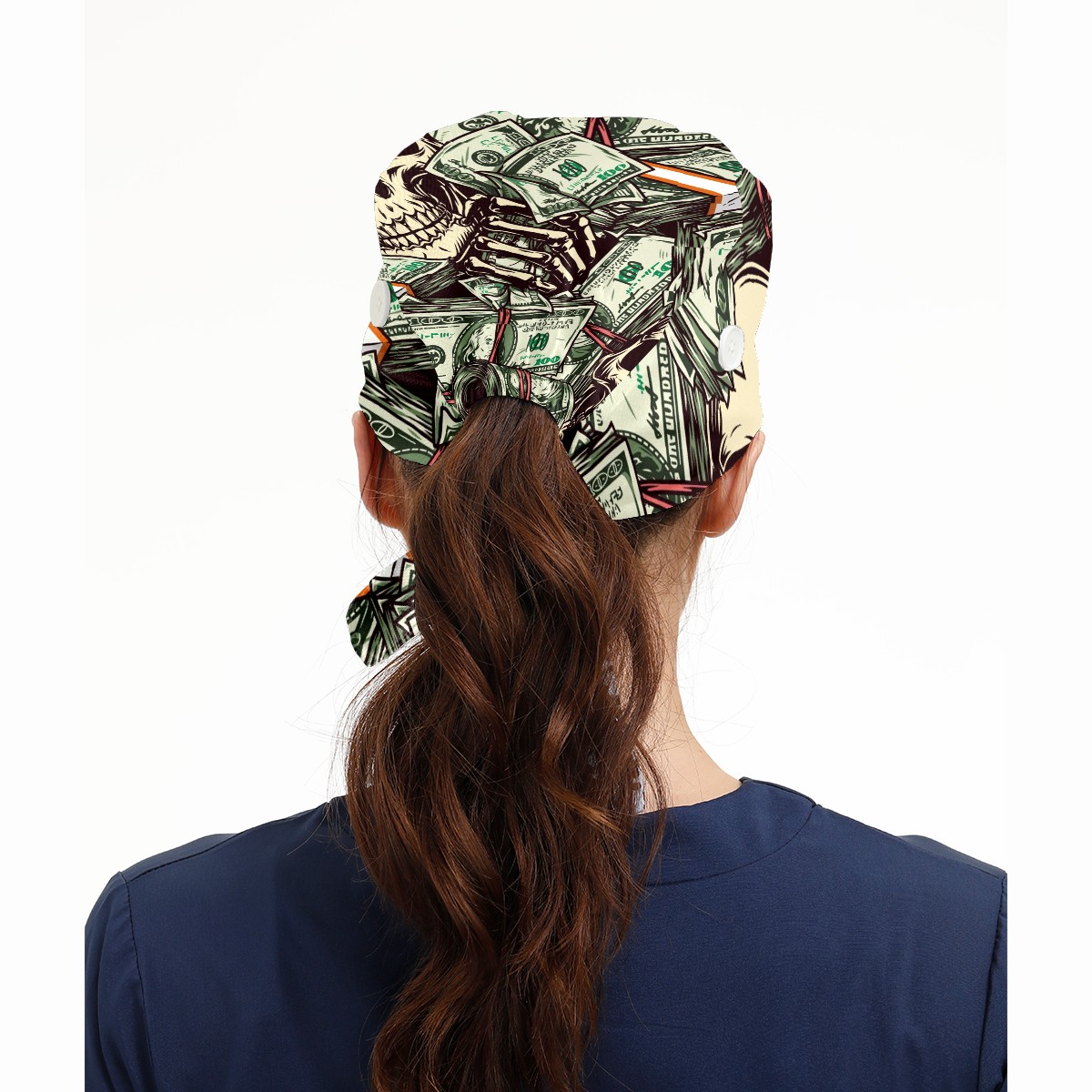 Working Caps with Button & Sweatband Satin Lined Cotton Adjustable Nurse Hats Elastic Band Scrub Cap Surgeon Hat Vintage Money Skull Skeleton