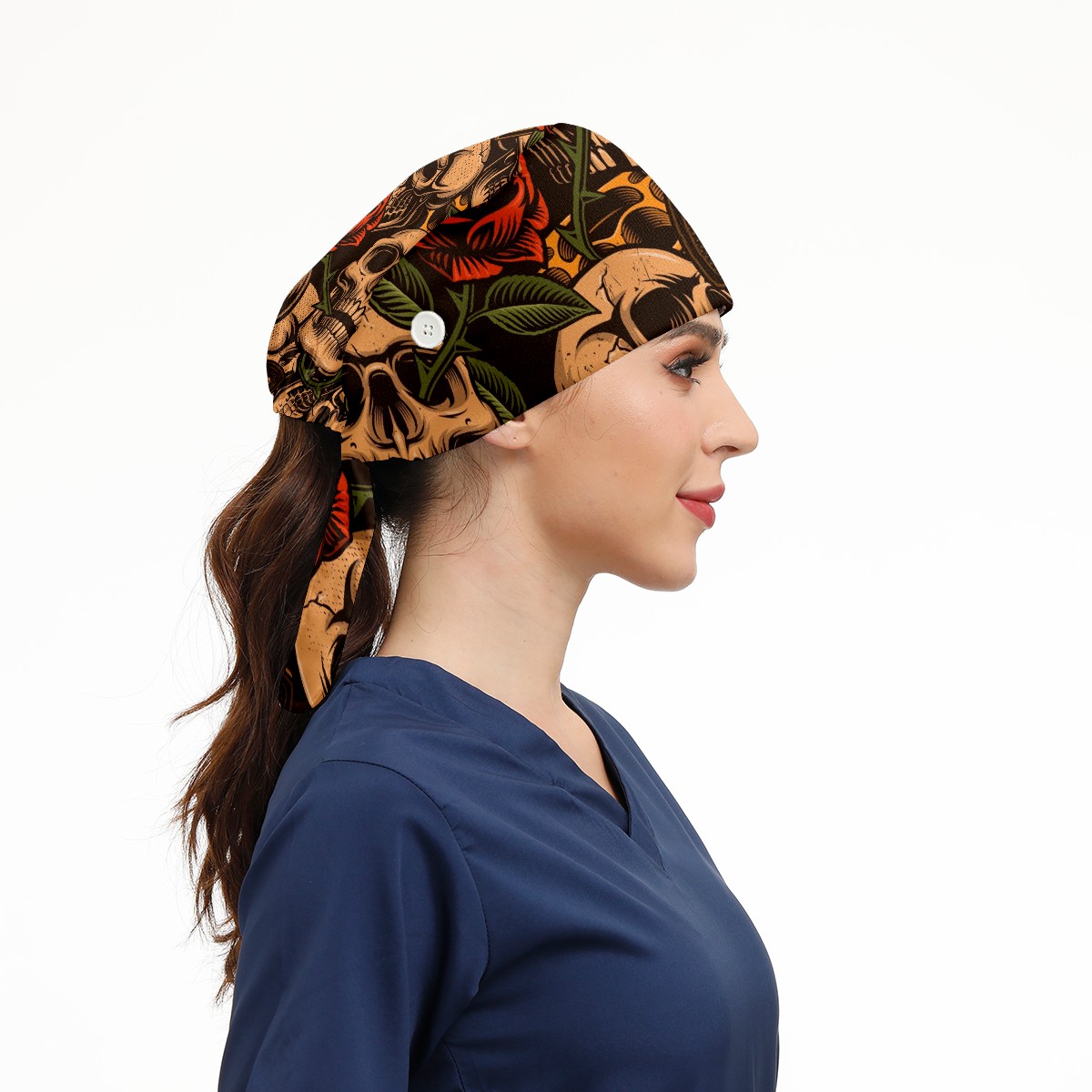Working Caps with Button & Sweatband Satin Lined Cotton Adjustable Nurse Hats Elastic Band Scrub Cap Surgeon Hat Skulls With Guns And Roses