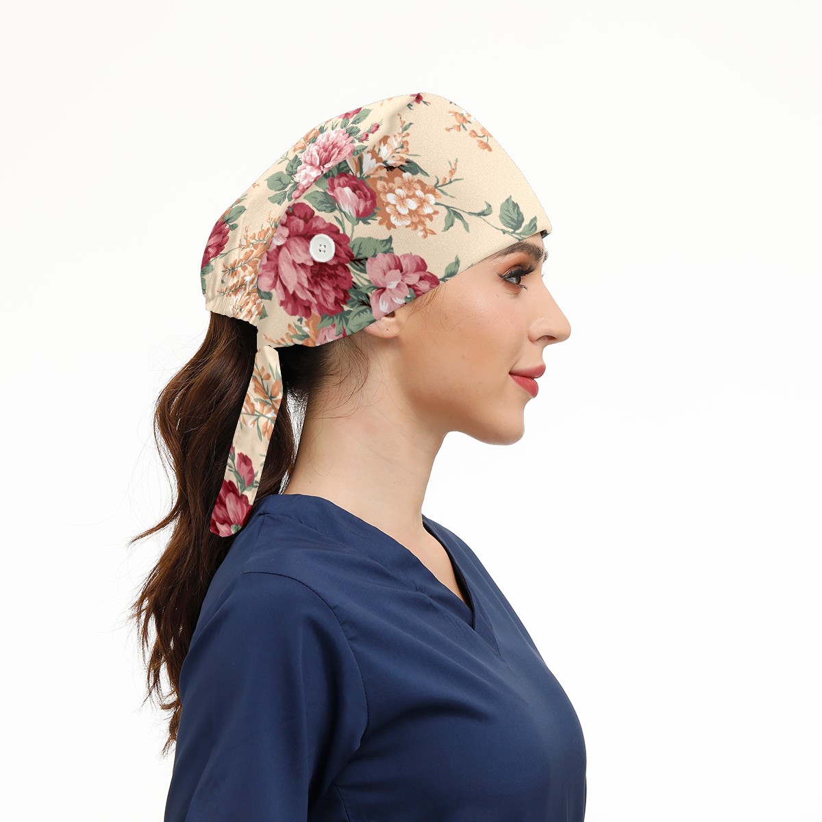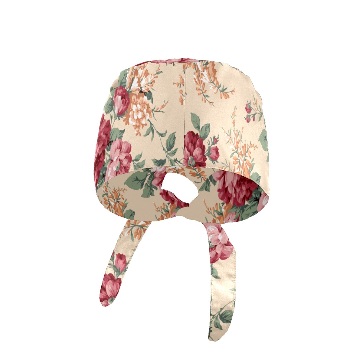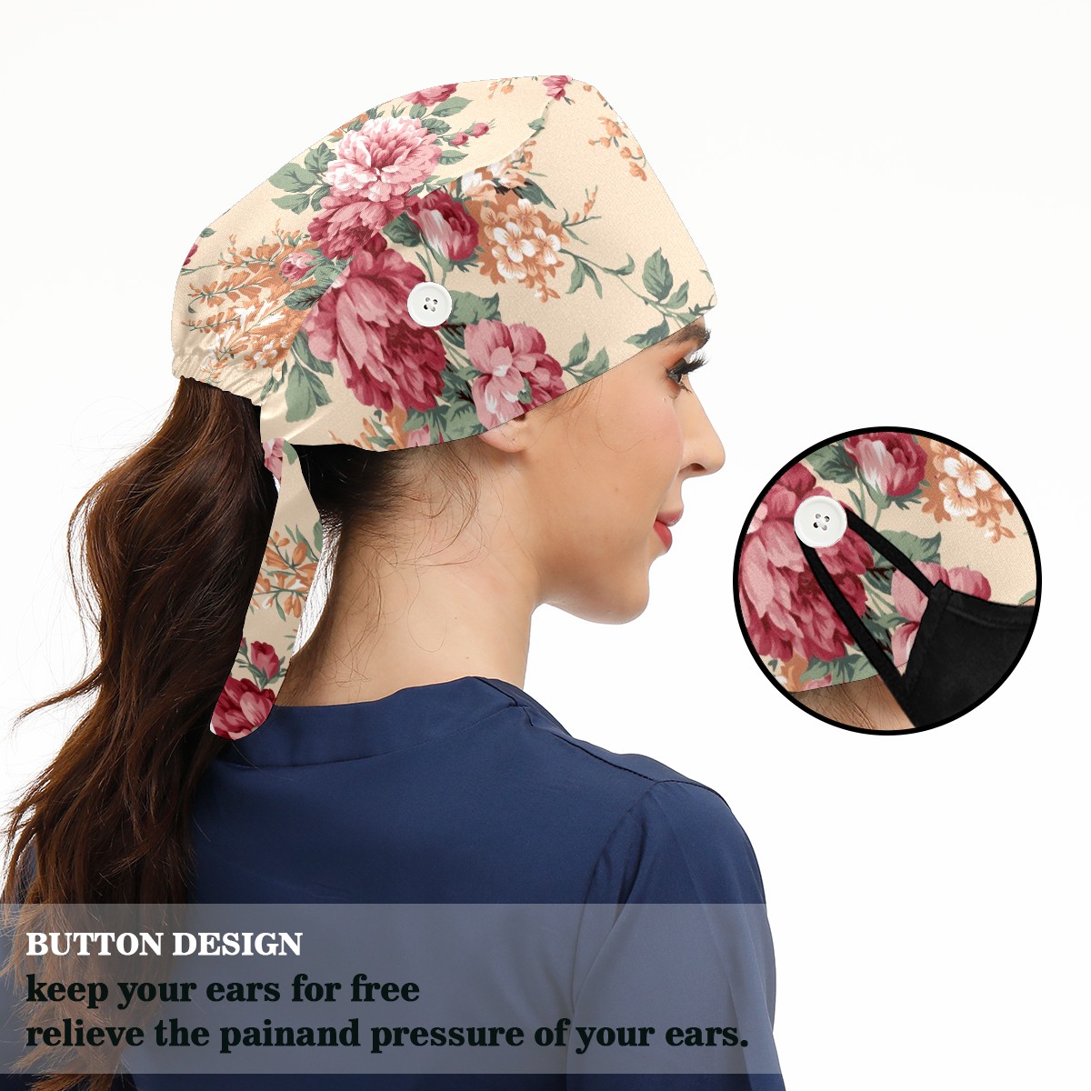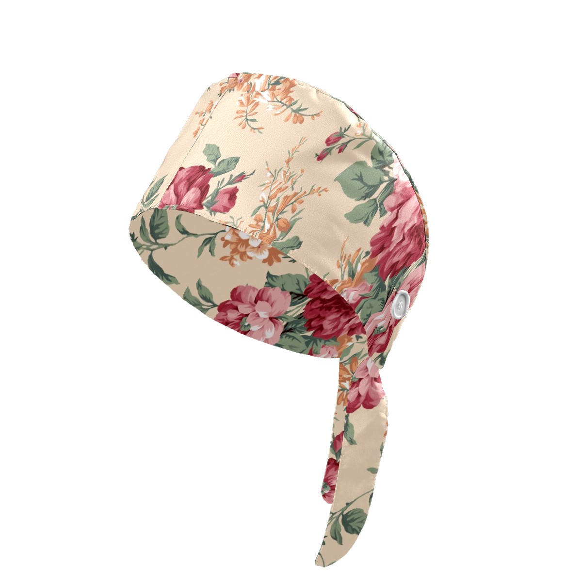 Working Caps with Button & Sweatband Satin Lined Cotton Adjustable Nurse Hats Elastic Band Scrub Cap Surgeon Hat Red And Orange Flower