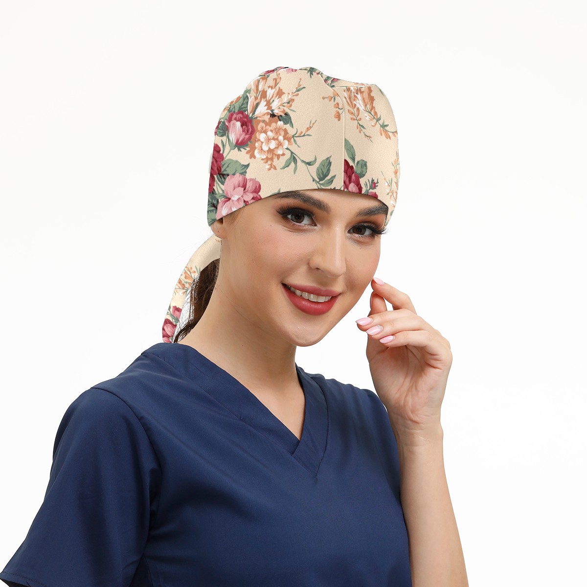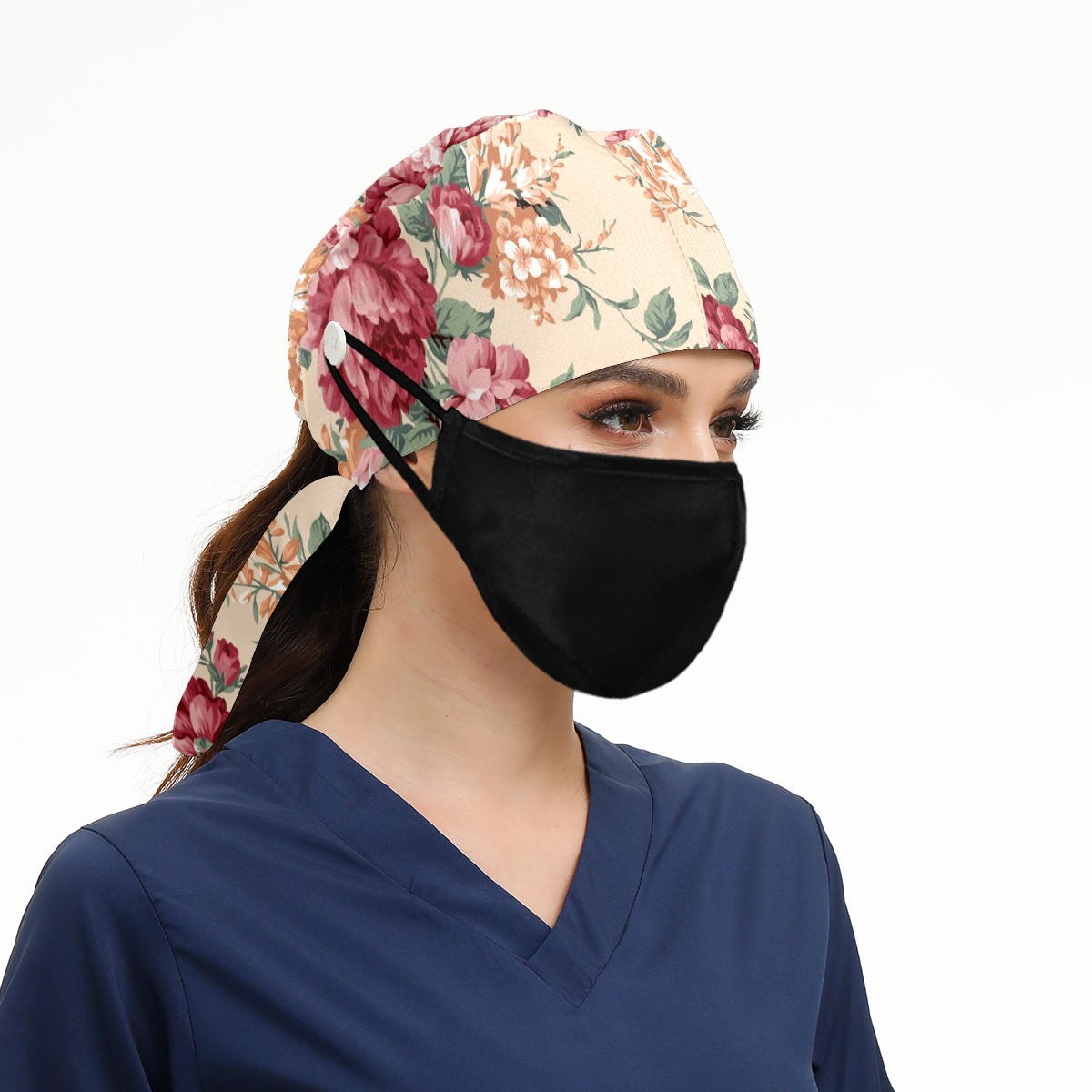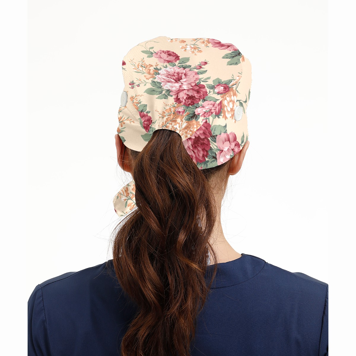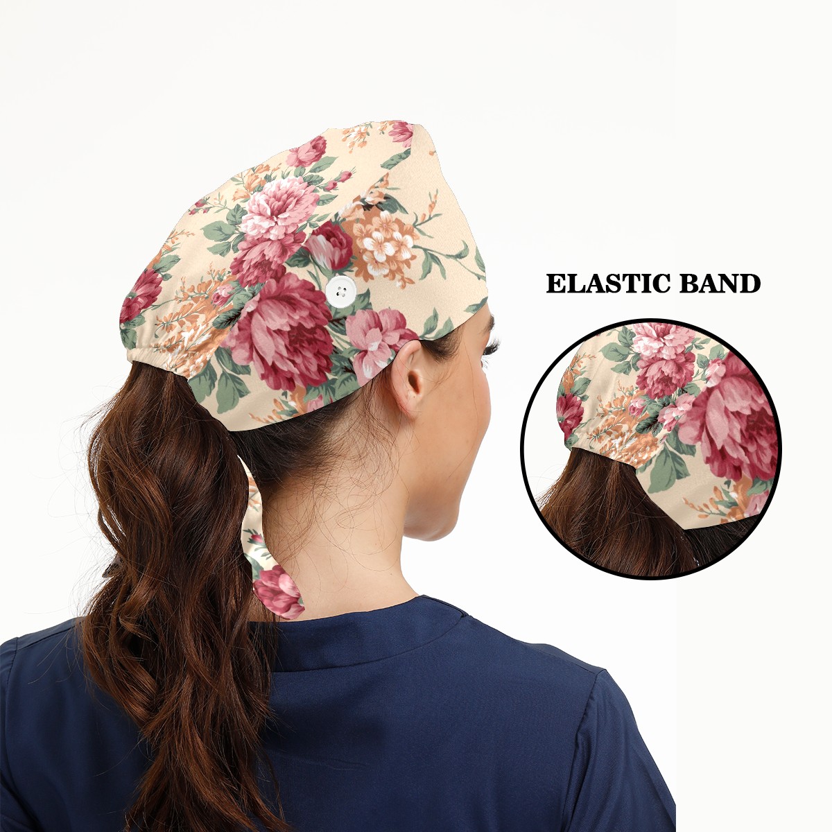 Working Caps with Button & Sweatband Satin Lined Cotton Adjustable Nurse Hats Elastic Band Scrub Cap Surgeon Hat Red And Orange Flower