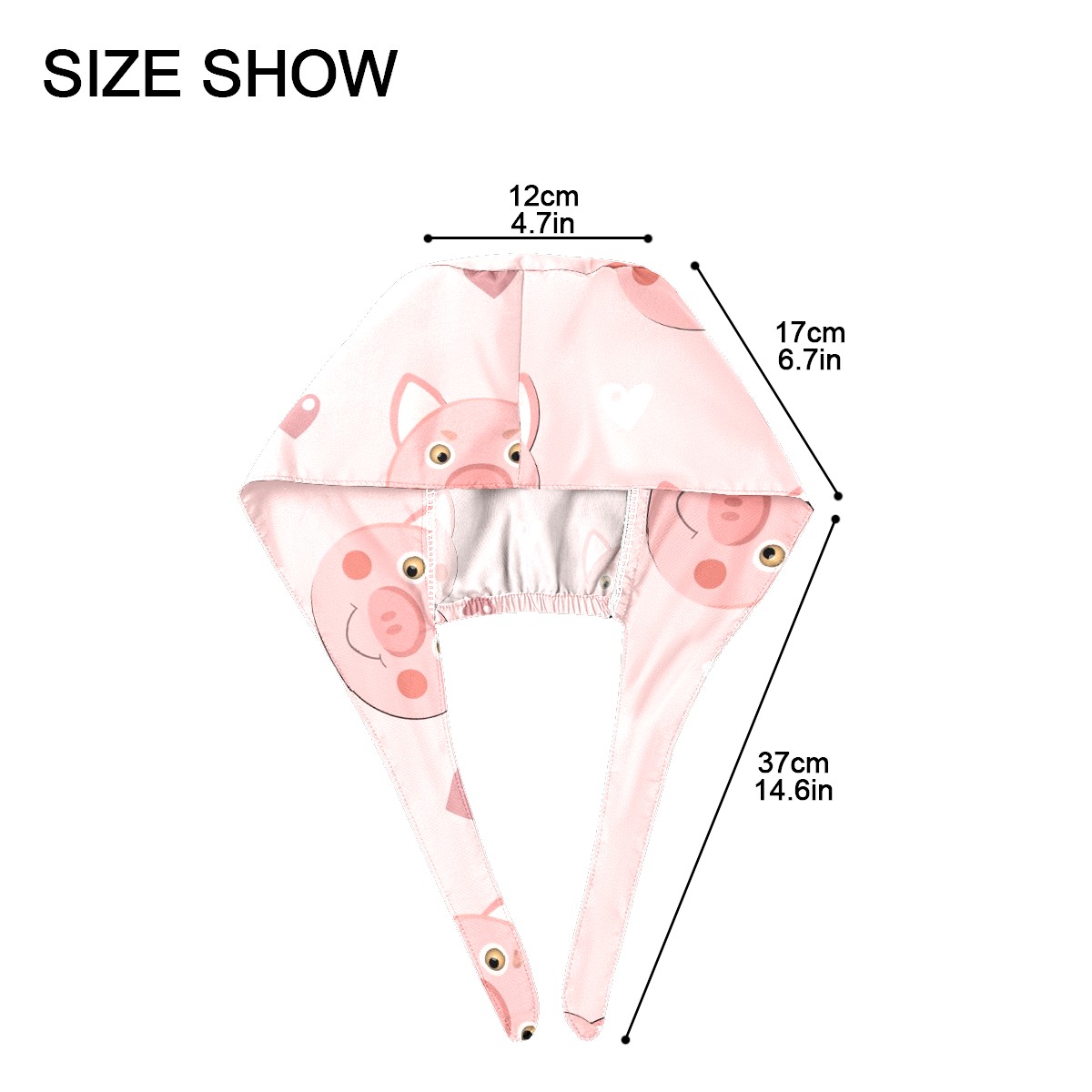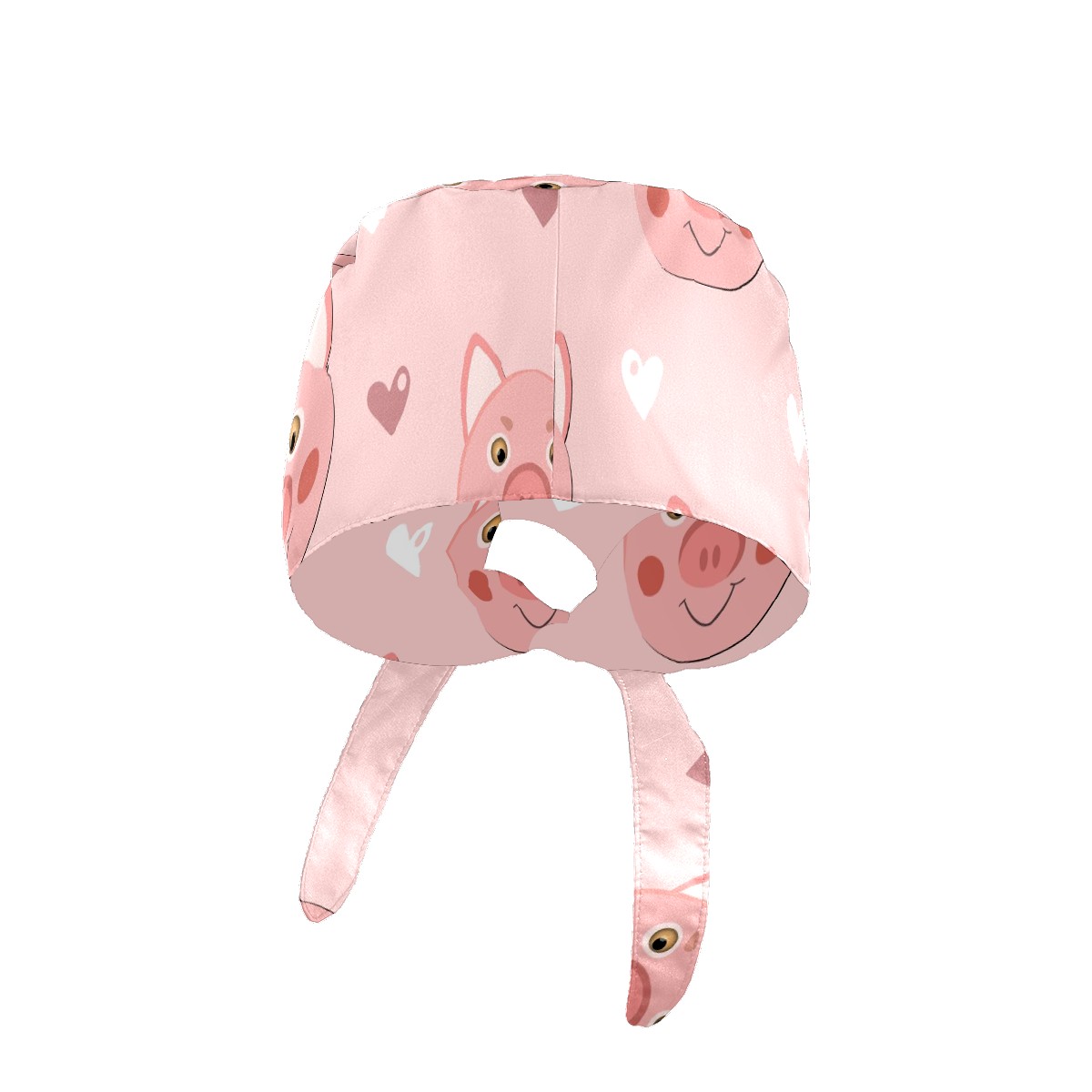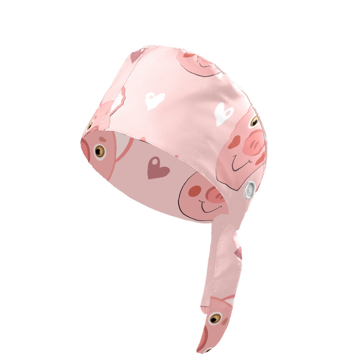 Working Caps with Button & Sweatband Satin Lined Cotton Adjustable Nurse Hats Elastic Band Scrub Cap Surgeon Hat Cute Pink Pig Flower