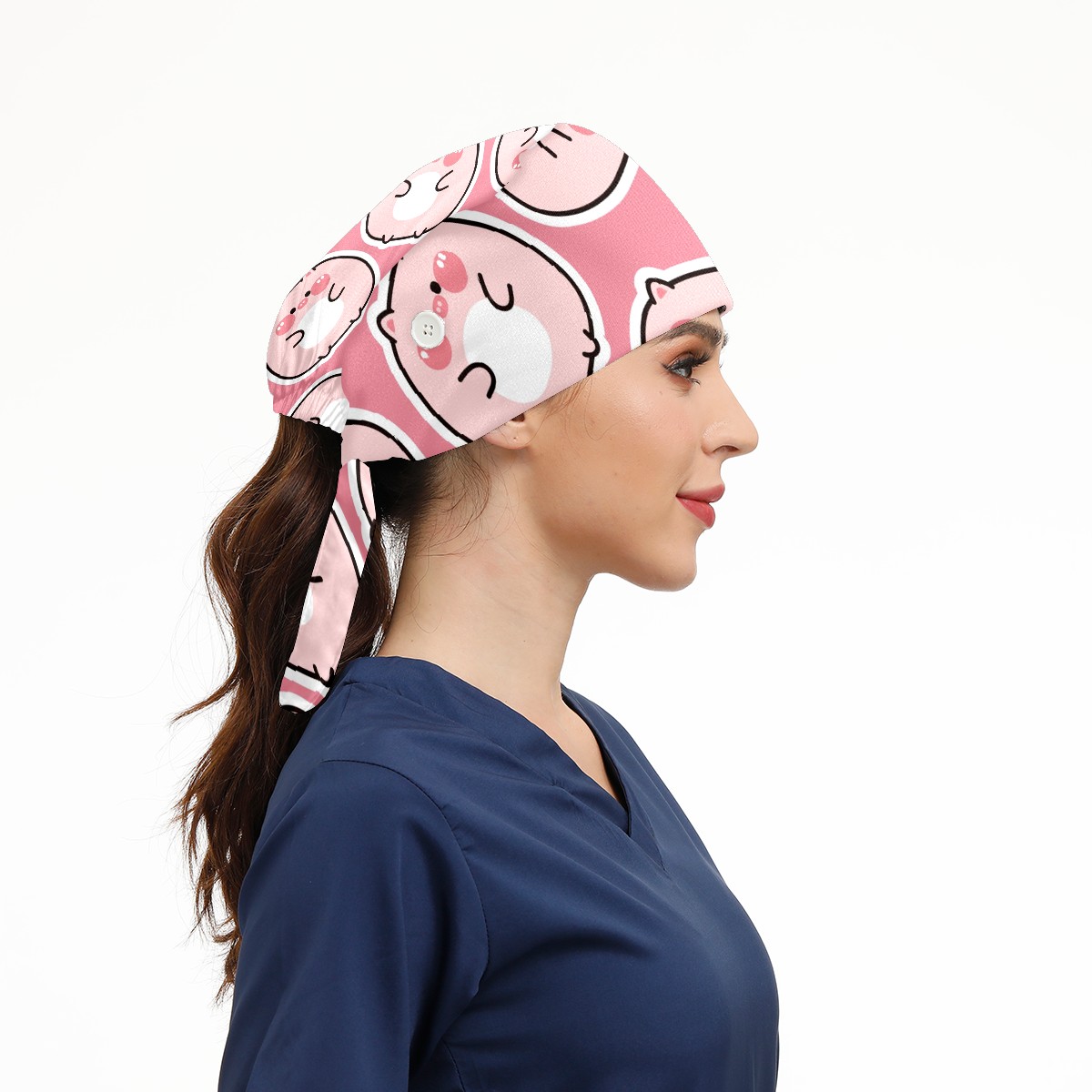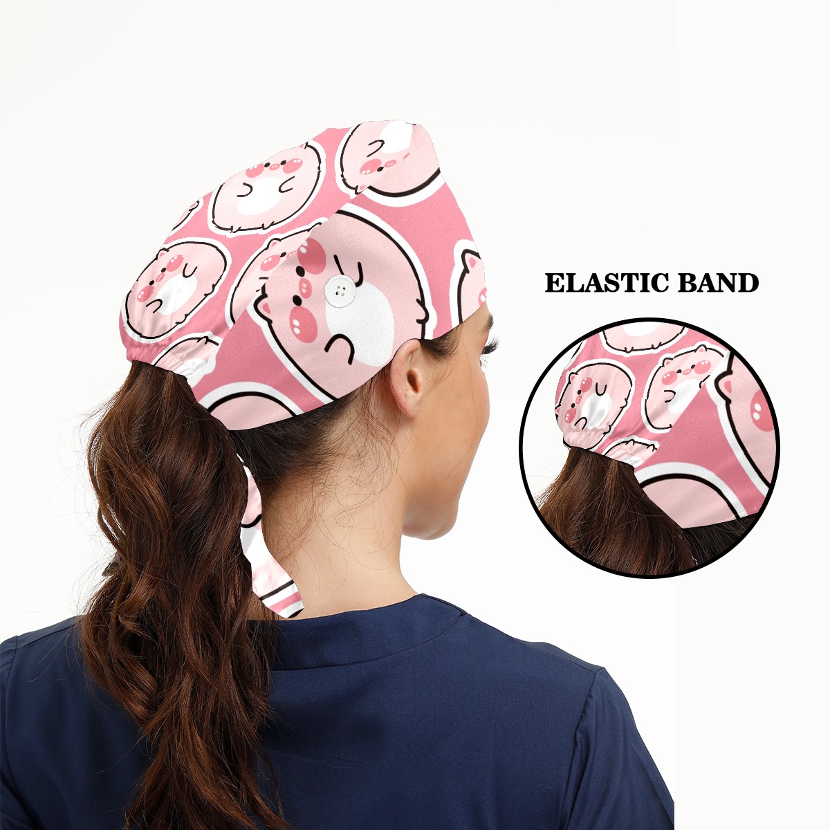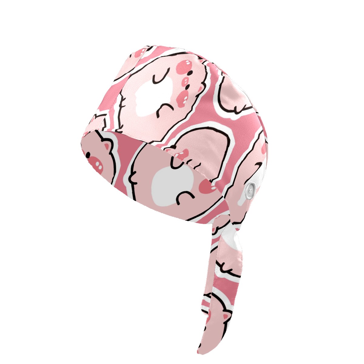 Working Caps with Button & Sweatband Satin Lined Cotton Adjustable Nurse Hats Elastic Band Scrub Cap Surgeon Hat Cute Fat Pig On Pink Background