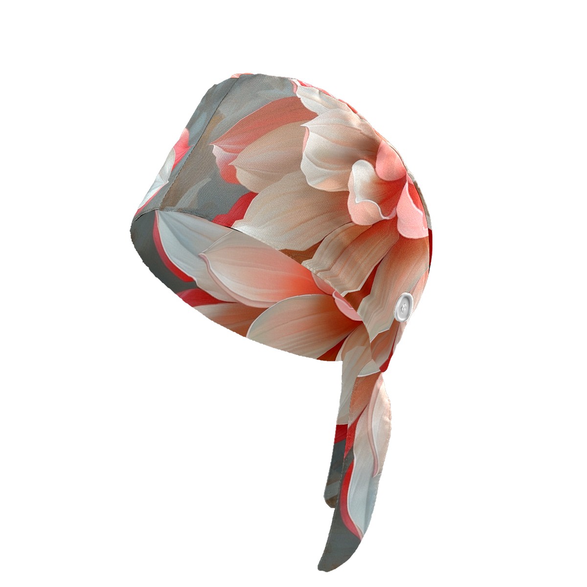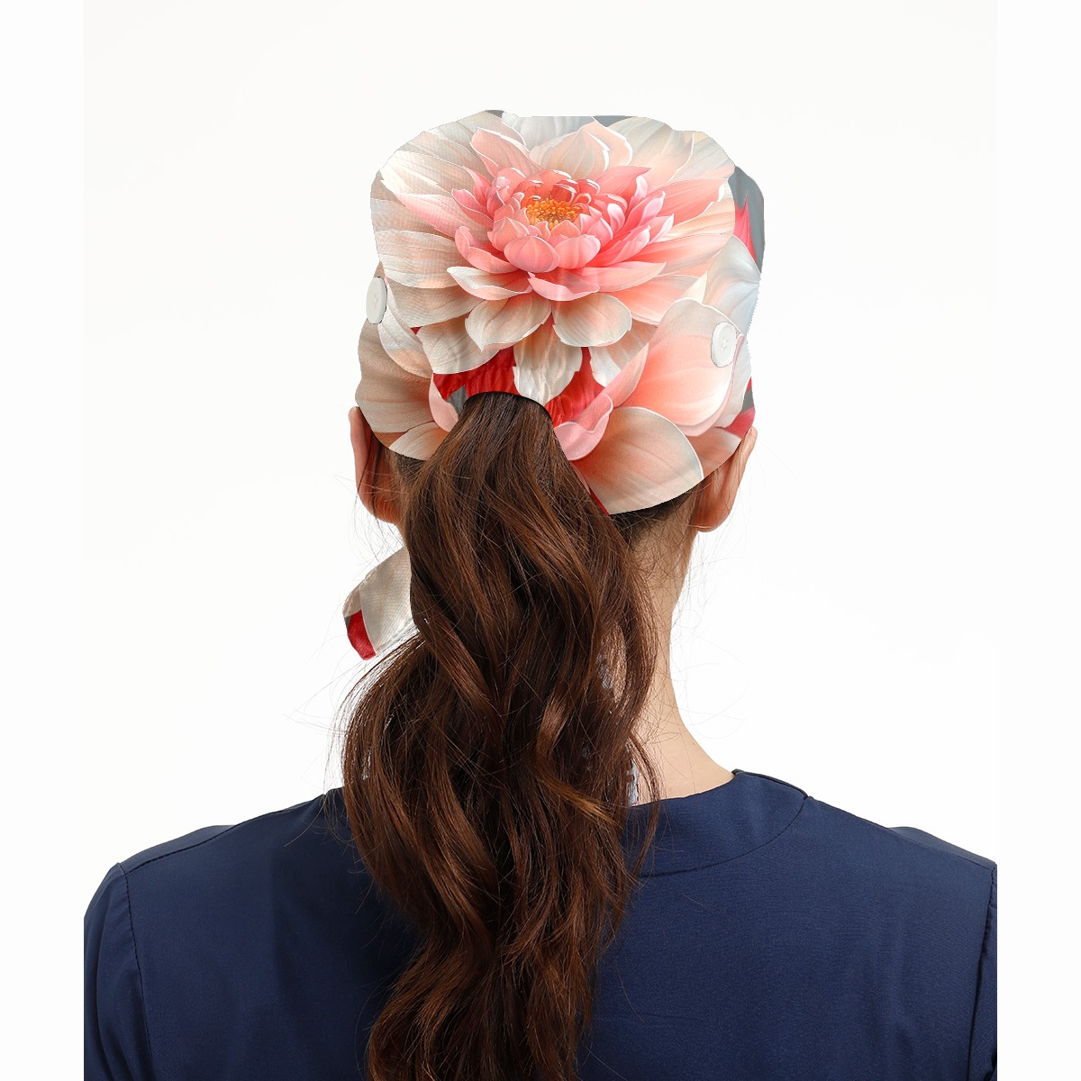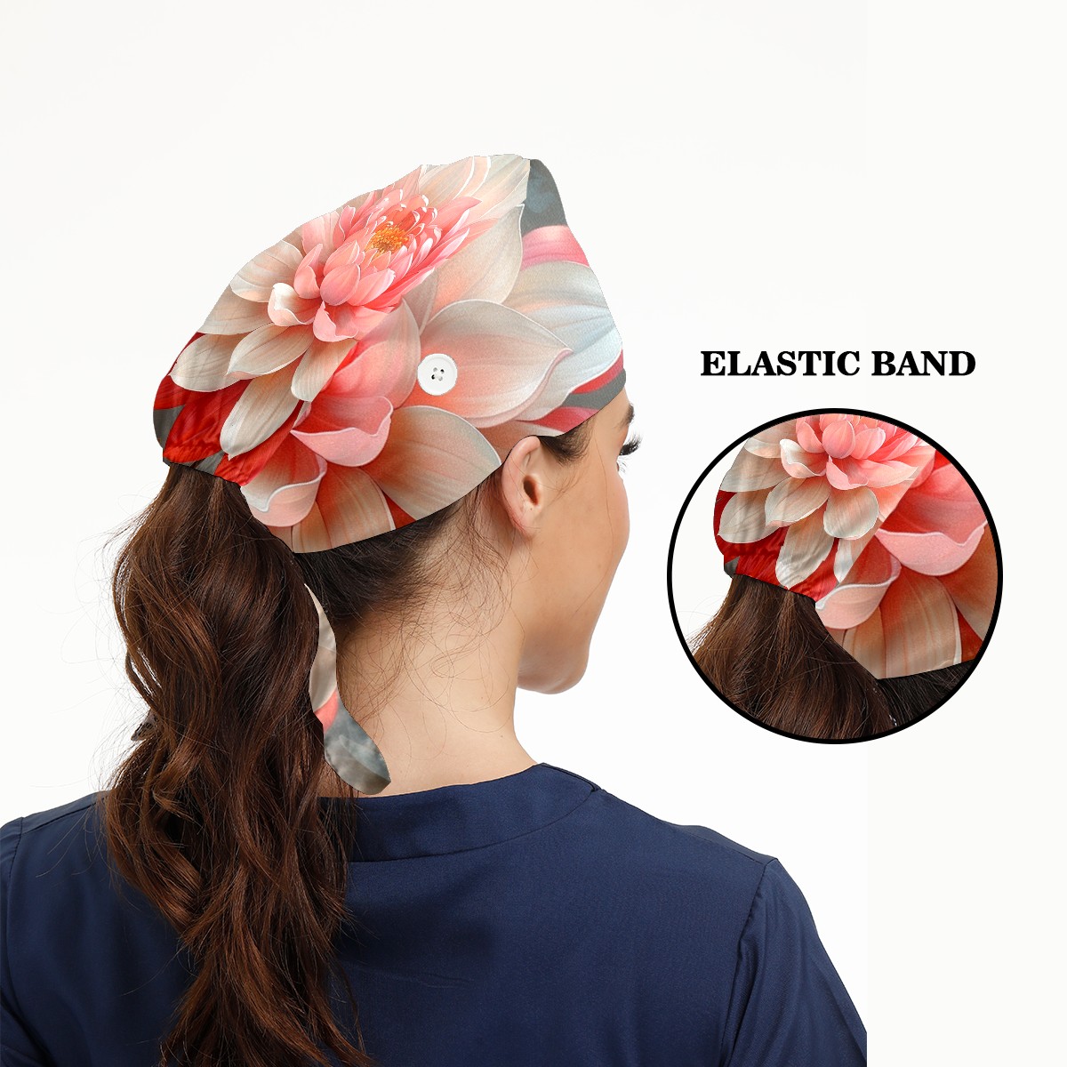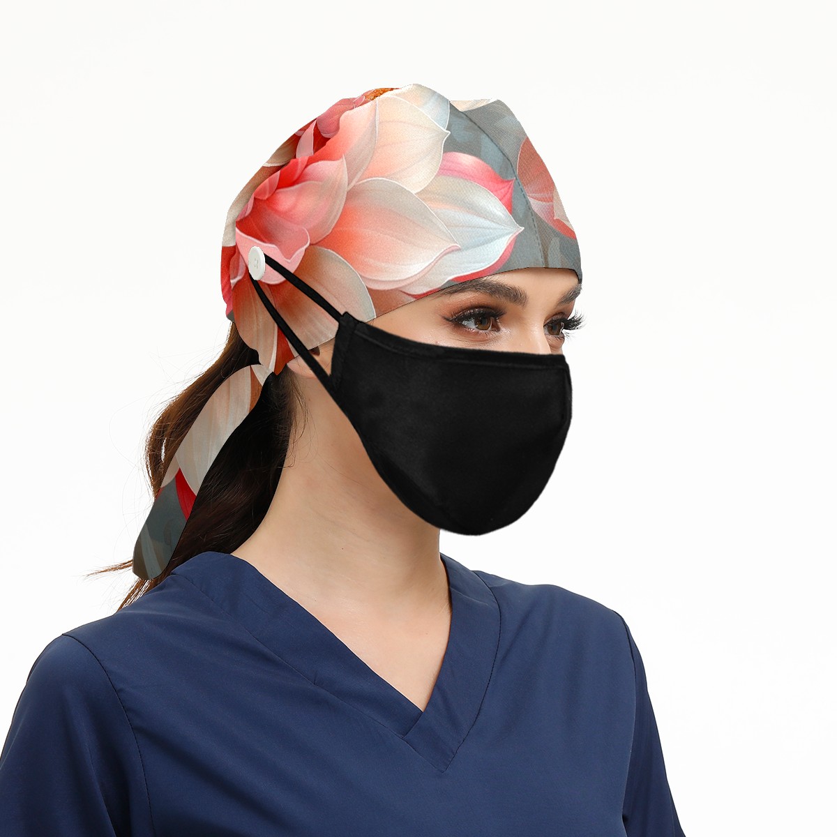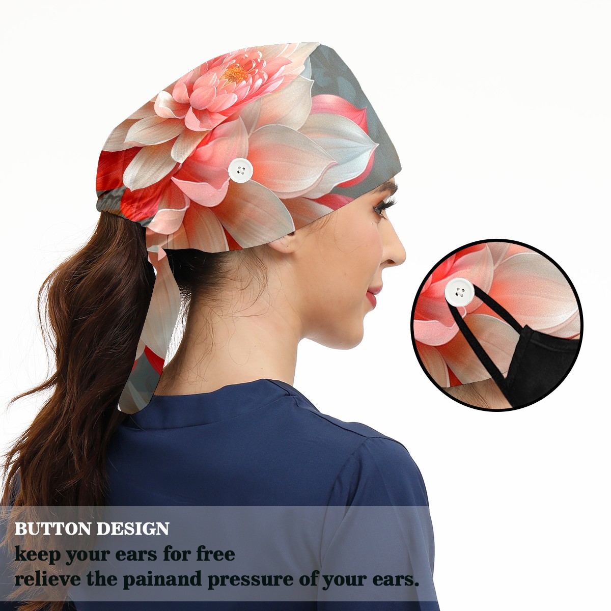 Working Caps with Button & Sweatband Satin Lined Cotton Adjustable Nurse Hats Elastic Band Scrub Cap Surgeon Hat White Lotus