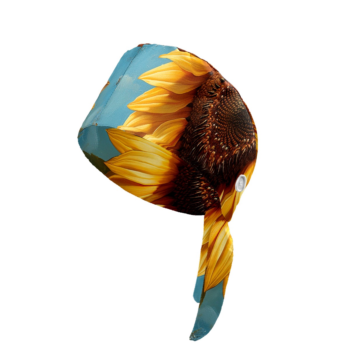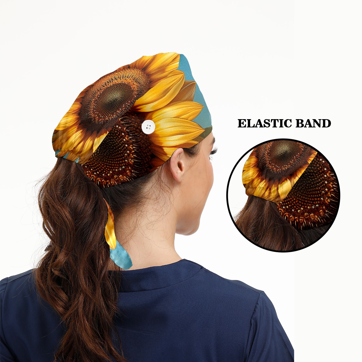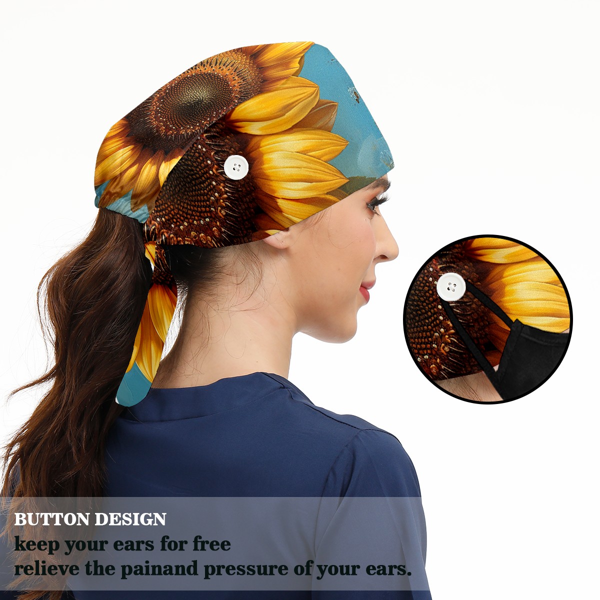 Working Caps with Button & Sweatband Satin Lined Cotton Adjustable Nurse Hats Elastic Band Scrub Cap Surgeon Hat Sunflower
