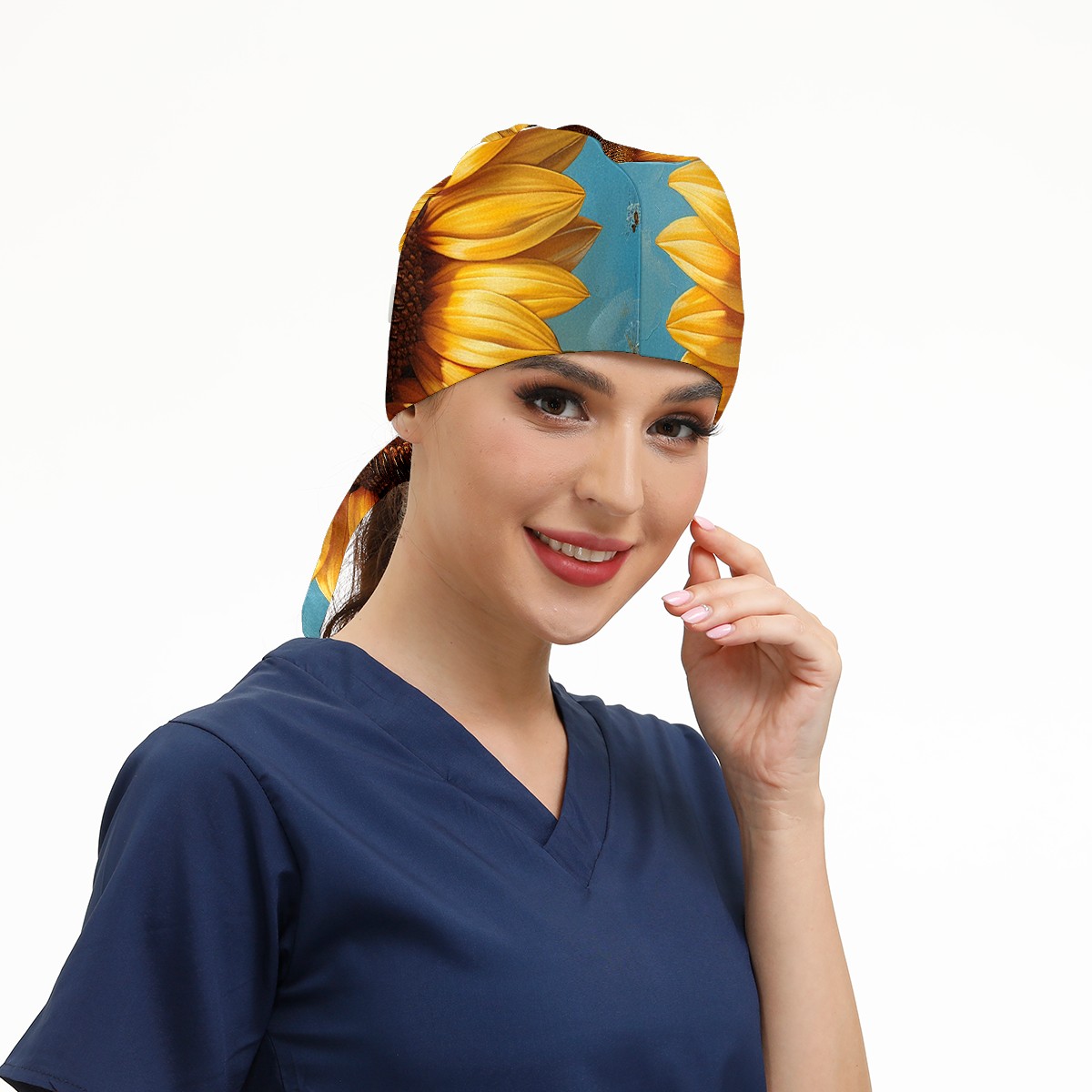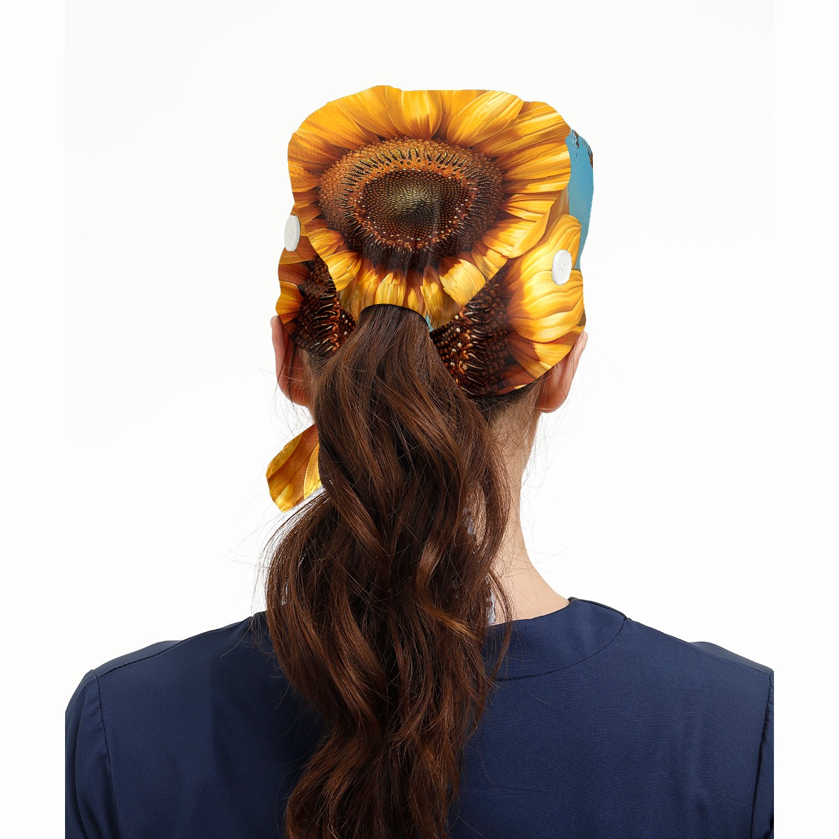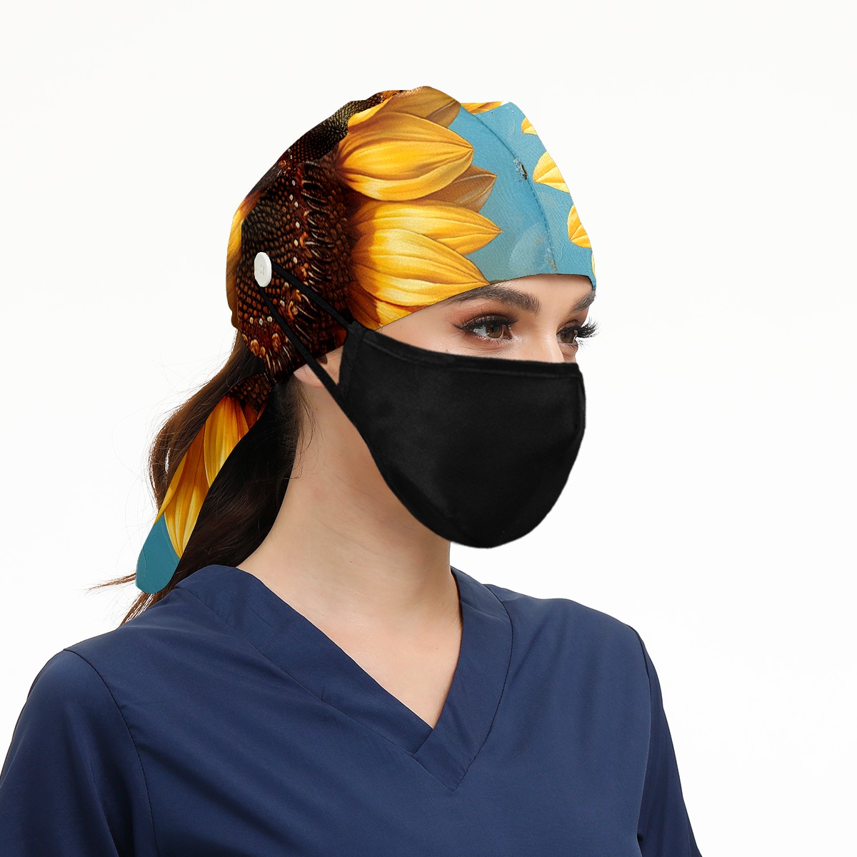 Working Caps with Button & Sweatband Satin Lined Cotton Adjustable Nurse Hats Elastic Band Scrub Cap Surgeon Hat Sunflower