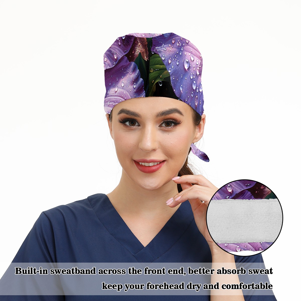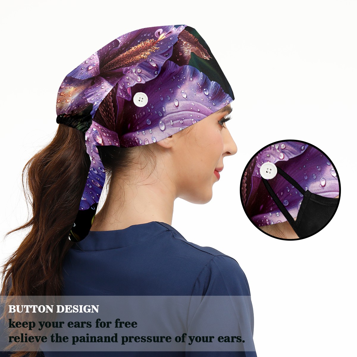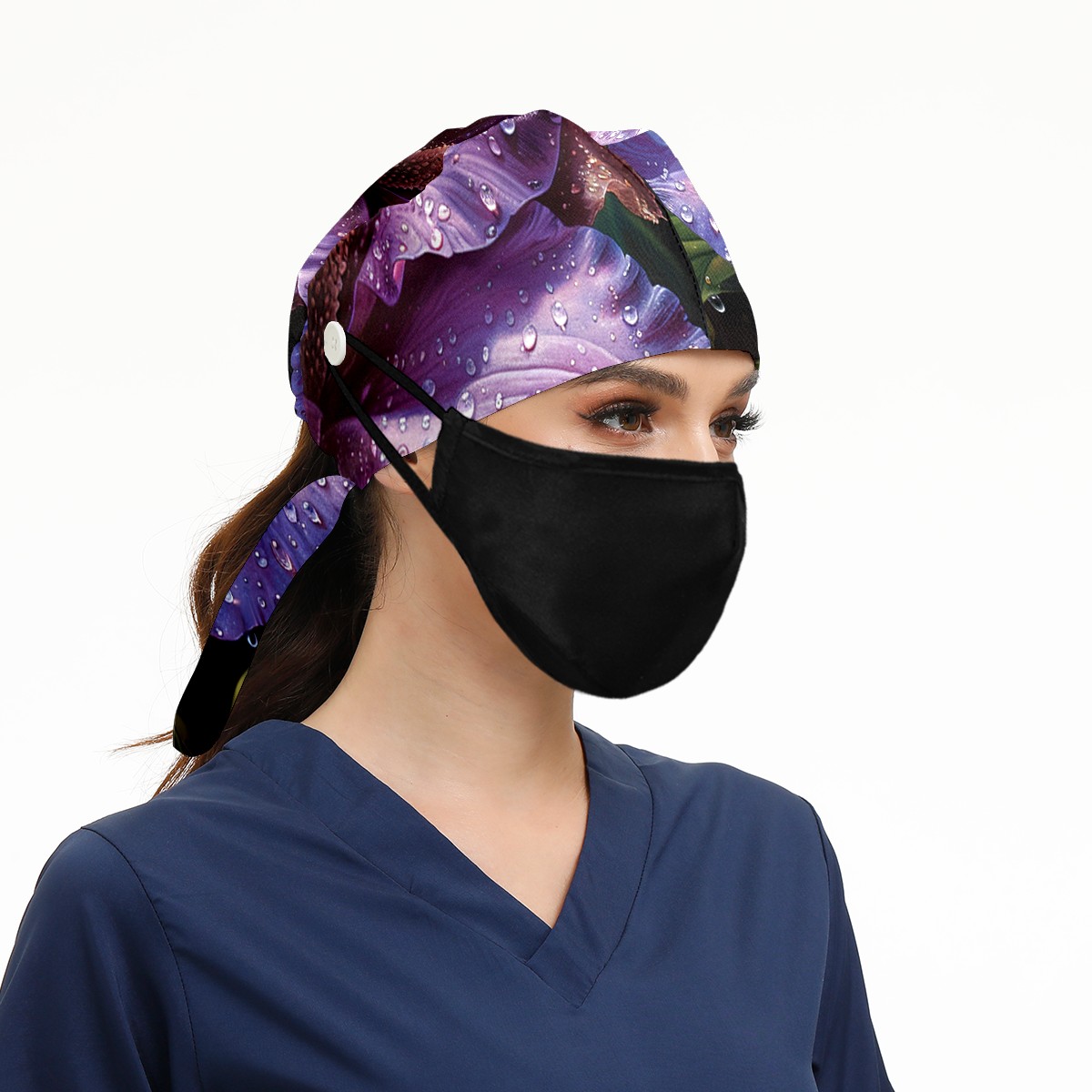 Working Caps with Button & Sweatband Satin Lined Cotton Adjustable Nurse Hats Elastic Band Scrub Cap Surgeon Hat Morning Glory