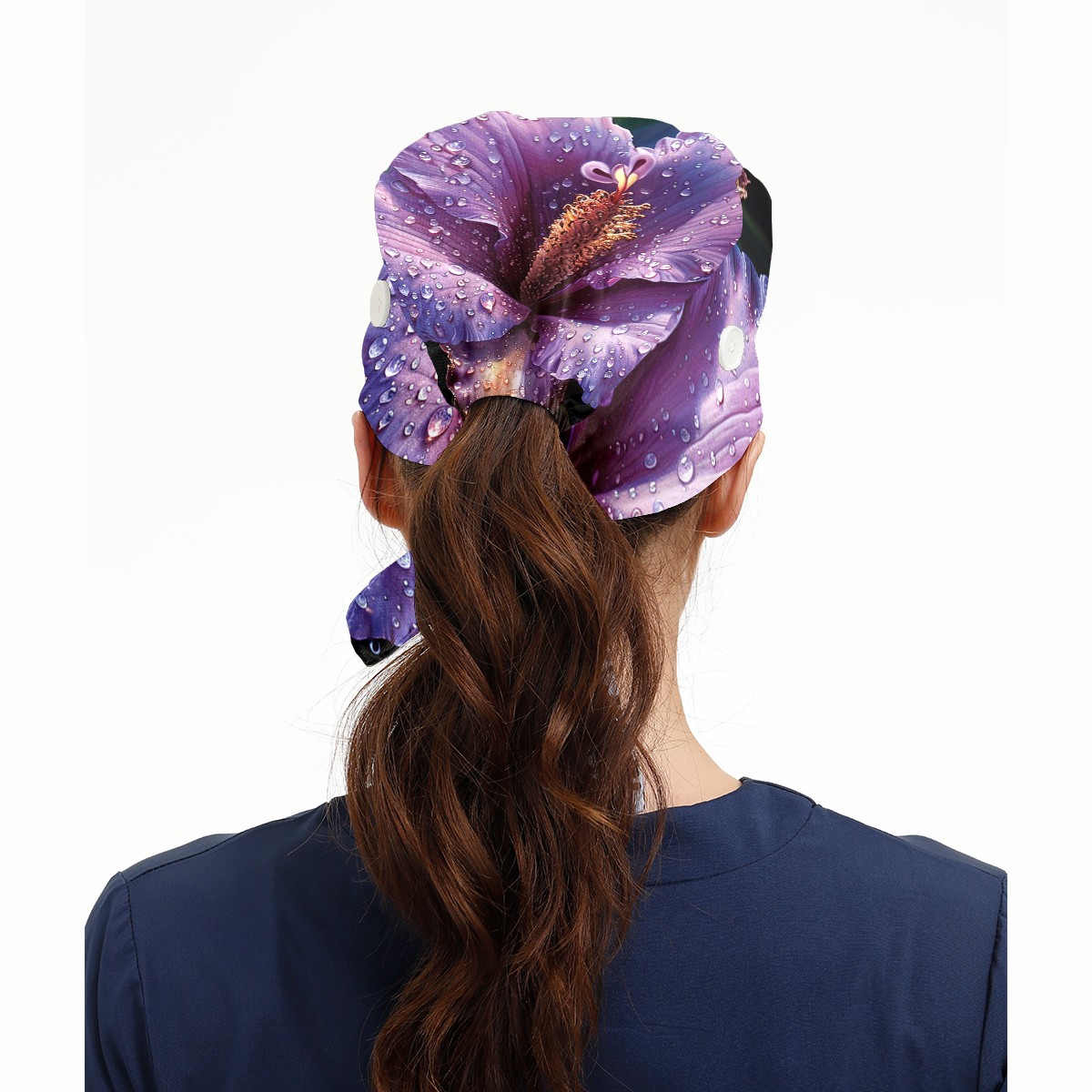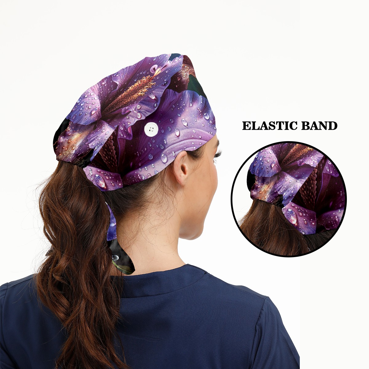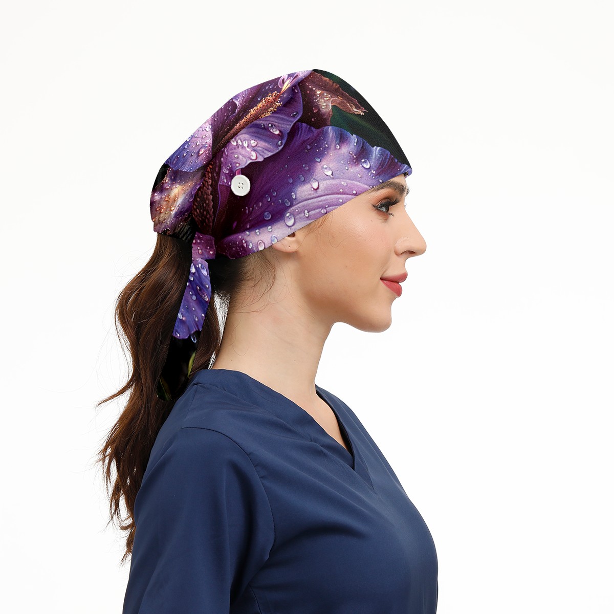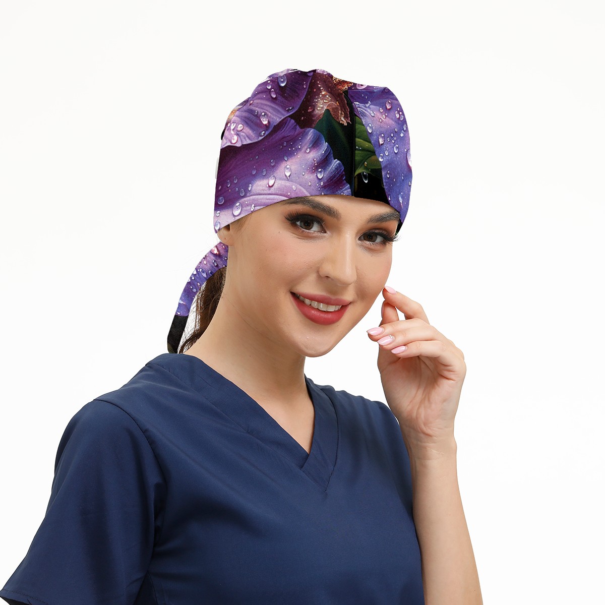 Working Caps with Button & Sweatband Satin Lined Cotton Adjustable Nurse Hats Elastic Band Scrub Cap Surgeon Hat Morning Glory