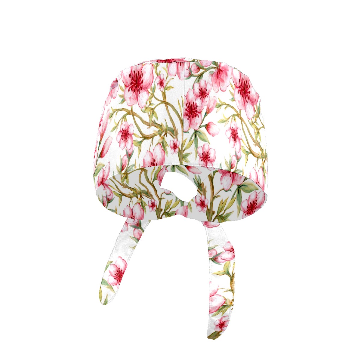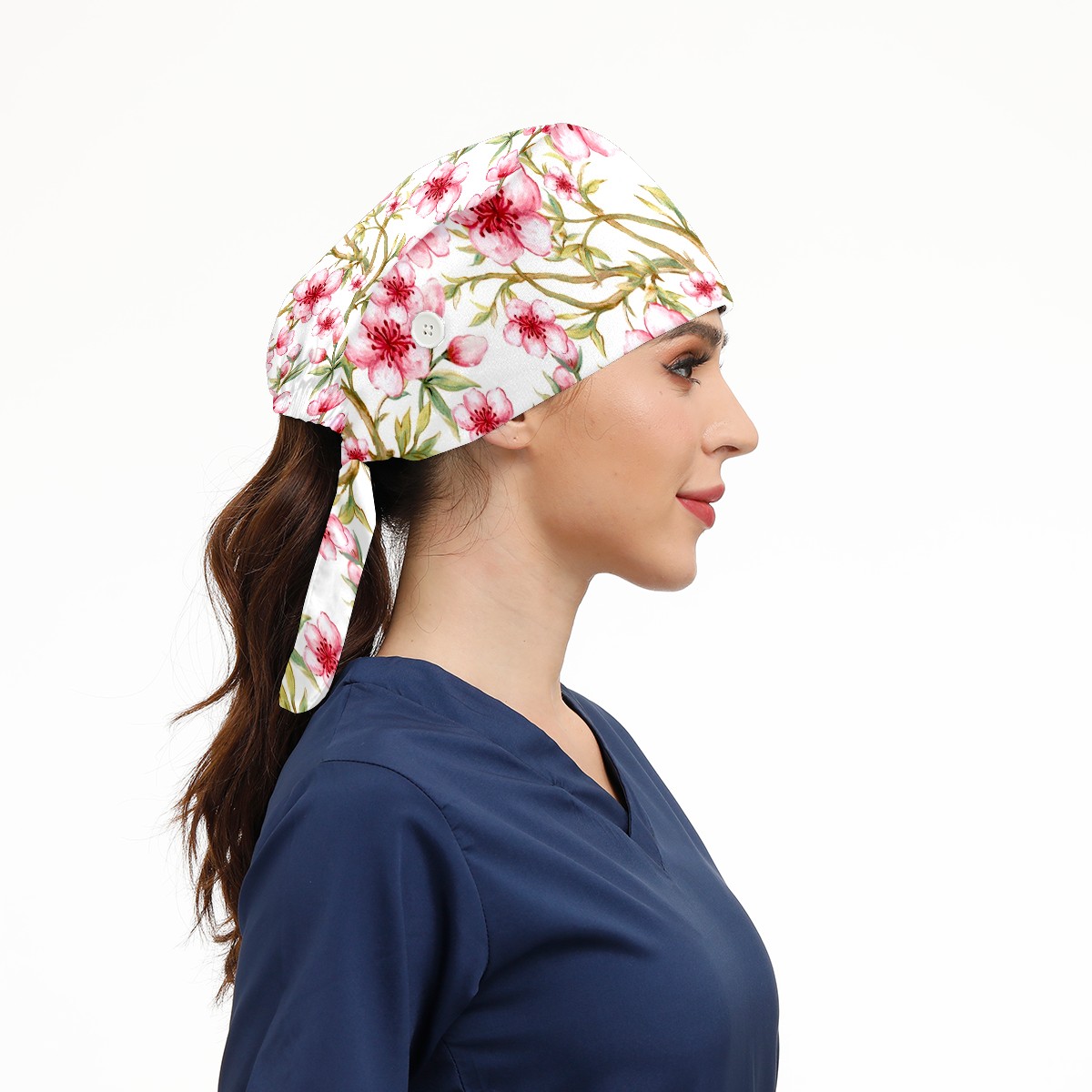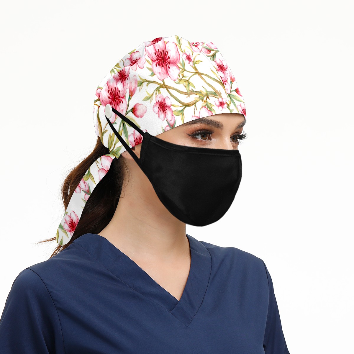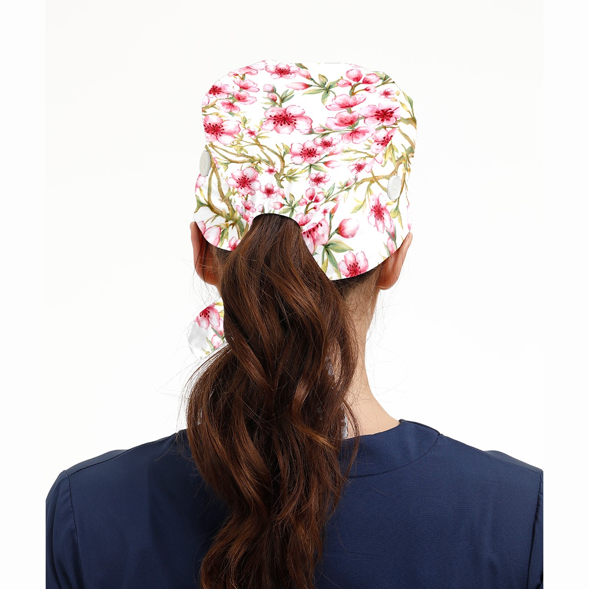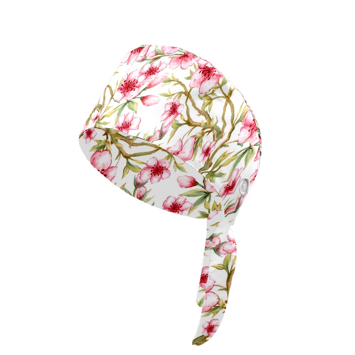 Working Caps with Button & Sweatband Satin Lined Cotton Adjustable Nurse Hats Elastic Band Scrub Cap Surgeon Hat Watercolor Pink Sakura Flower