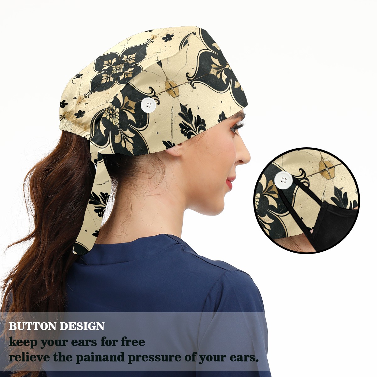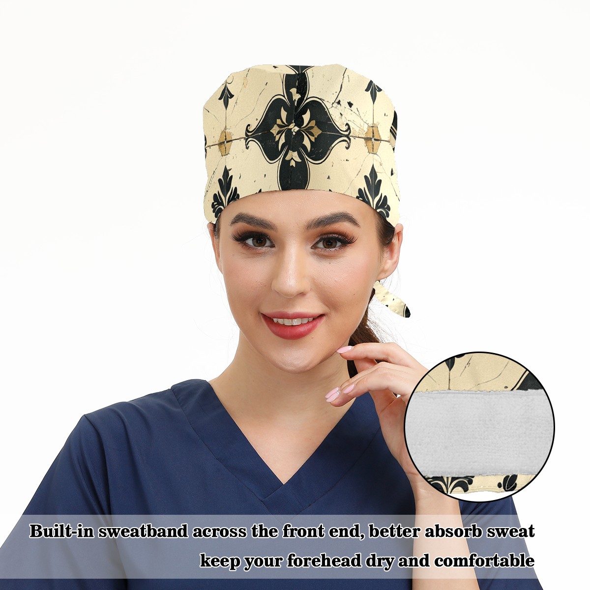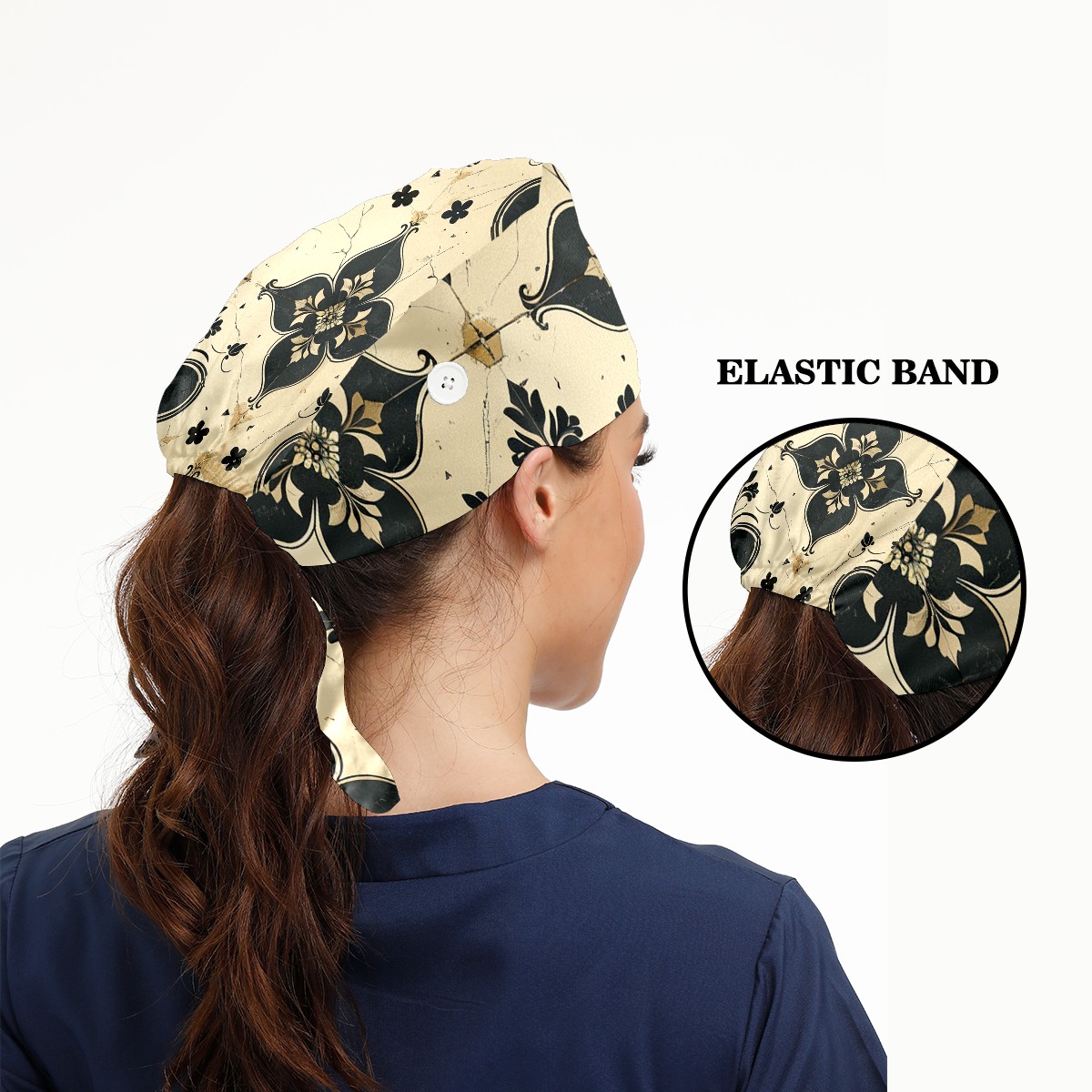 Working Caps with Button & Sweatband Satin Lined Cotton Adjustable Nurse Hats Elastic Band Scrub Cap Surgeon Hat Love