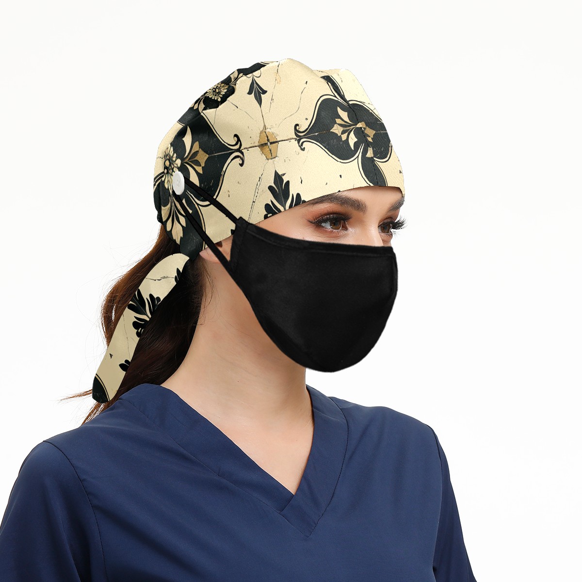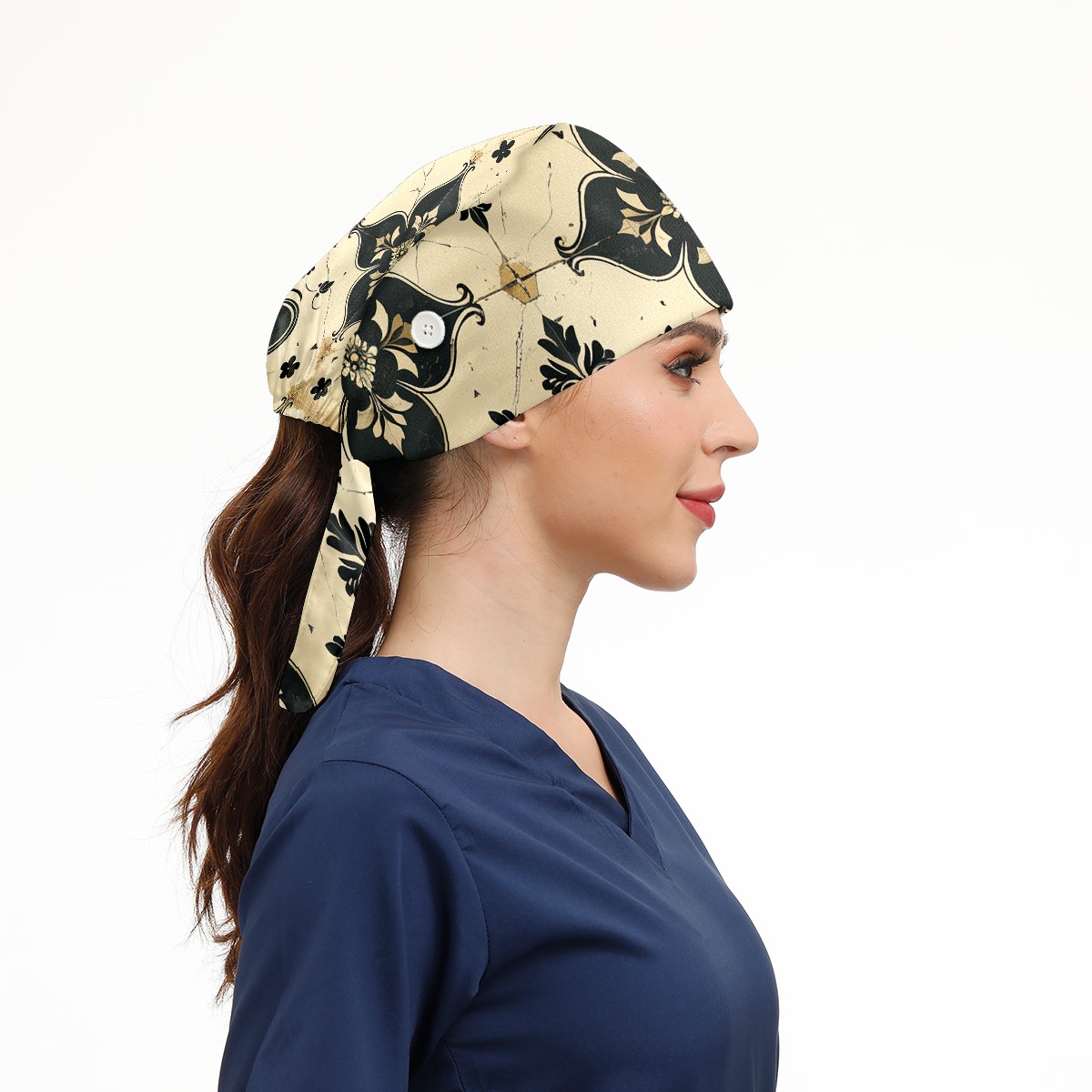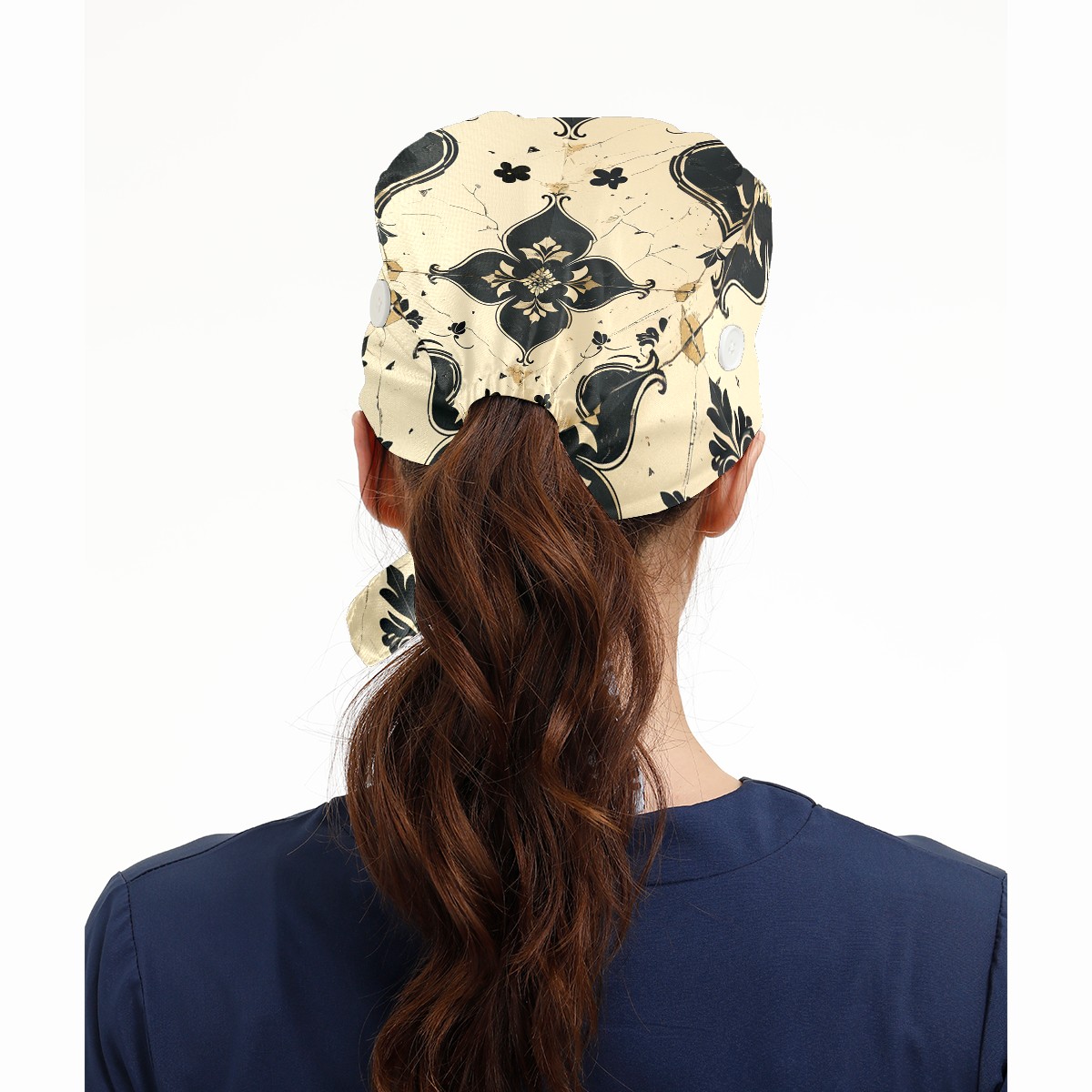 Working Caps with Button & Sweatband Satin Lined Cotton Adjustable Nurse Hats Elastic Band Scrub Cap Surgeon Hat Love