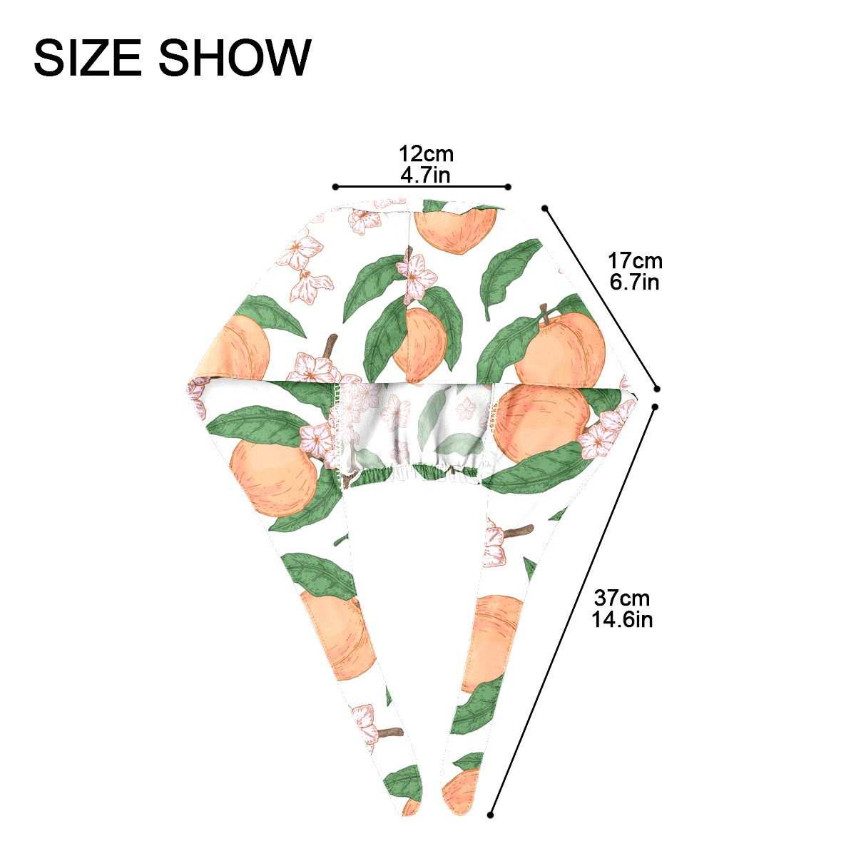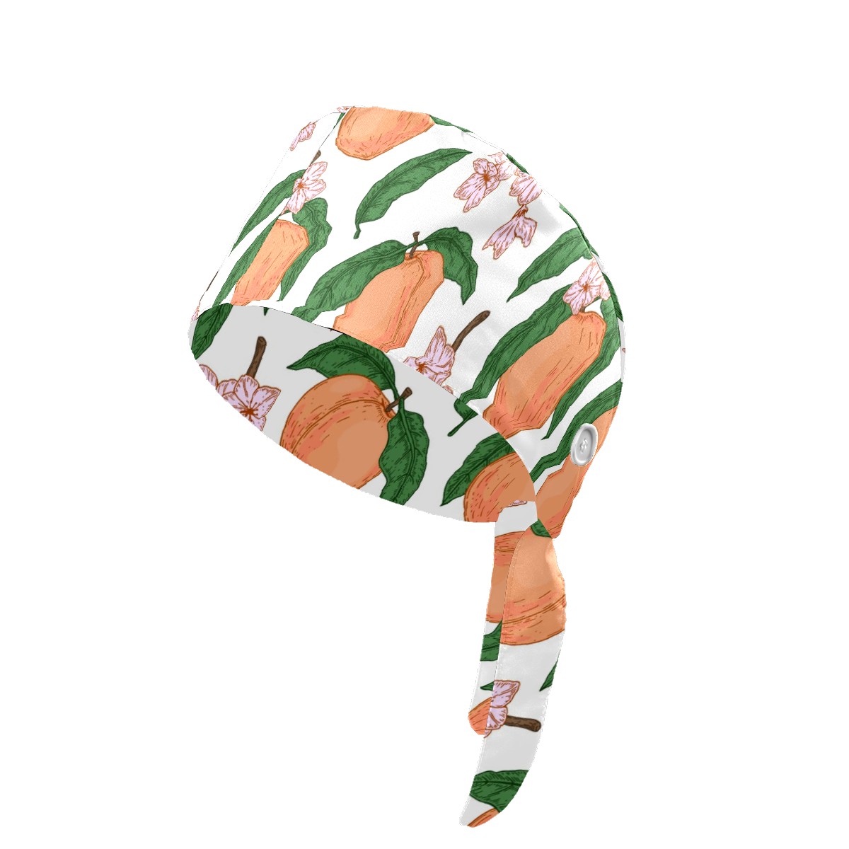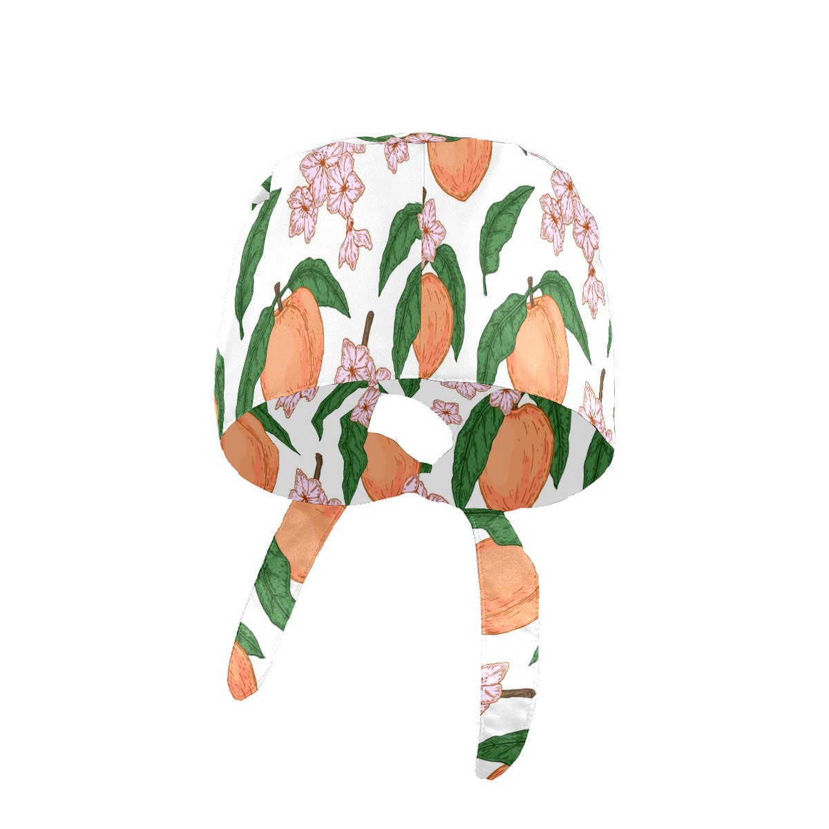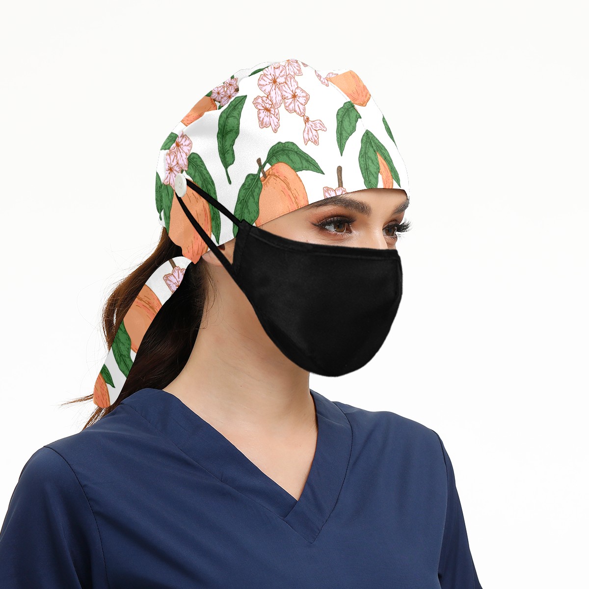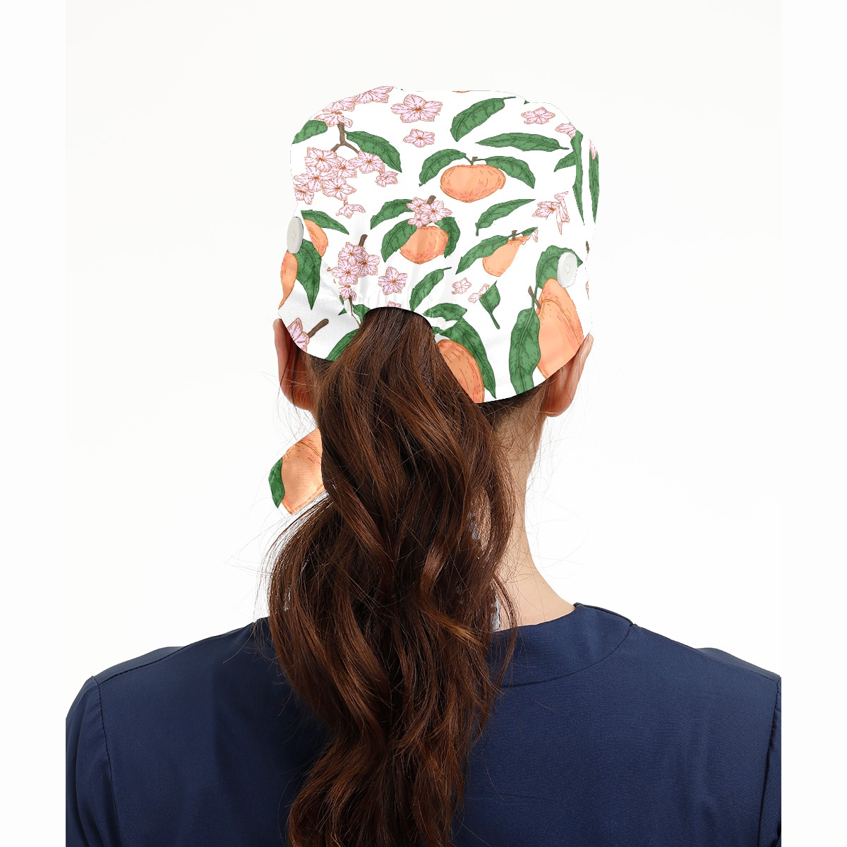 Working Caps with Button & Sweatband Satin Lined Cotton Adjustable Nurse Hats Elastic Band Scrub Cap Surgeon Hat Hand Drawn Peach Flower