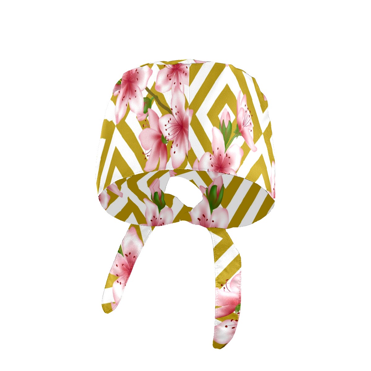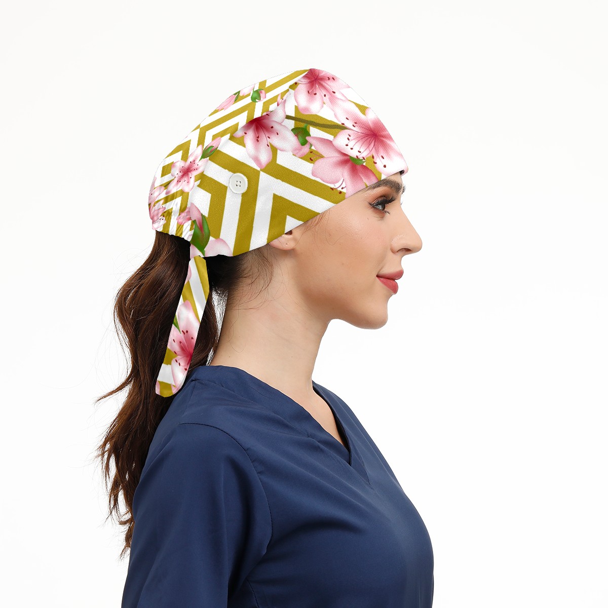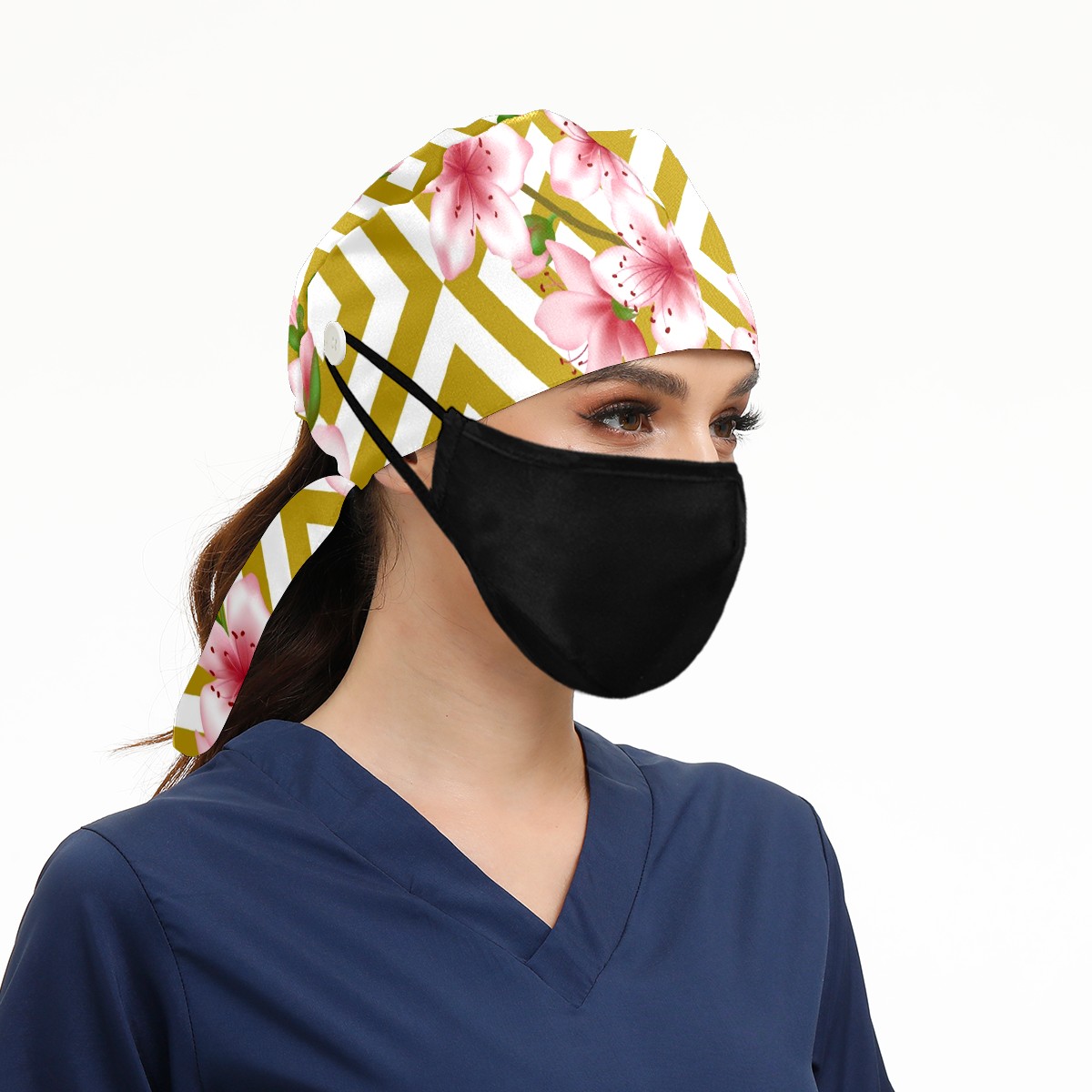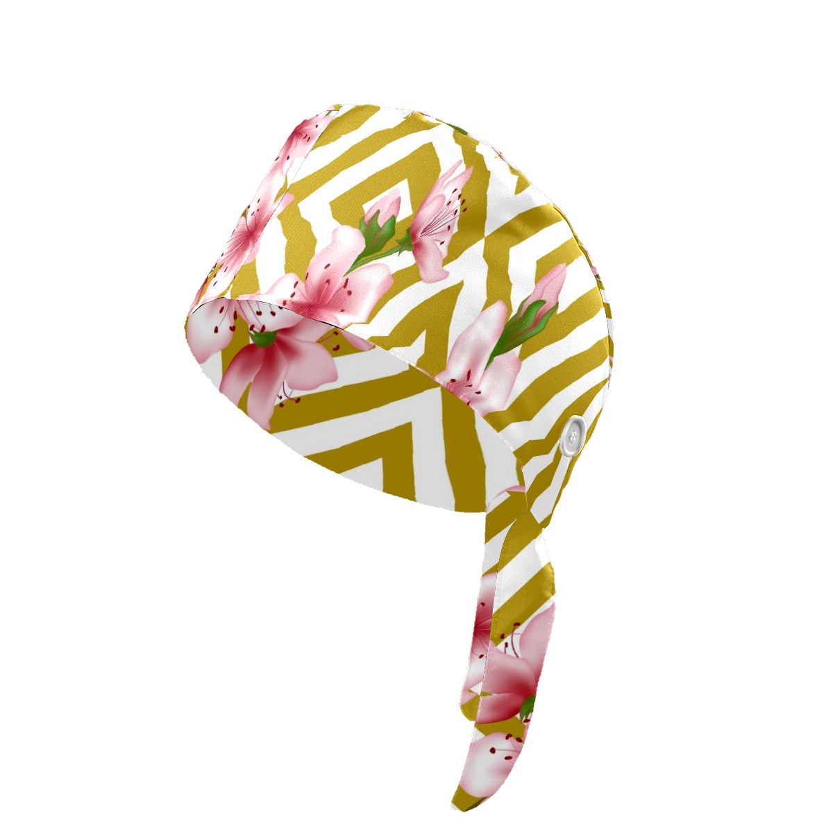 Working Caps with Button & Sweatband Satin Lined Cotton Adjustable Nurse Hats Elastic Band Scrub Cap Surgeon Hat Pink Cherry Blossom Geometric