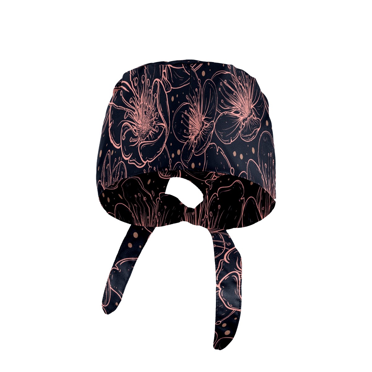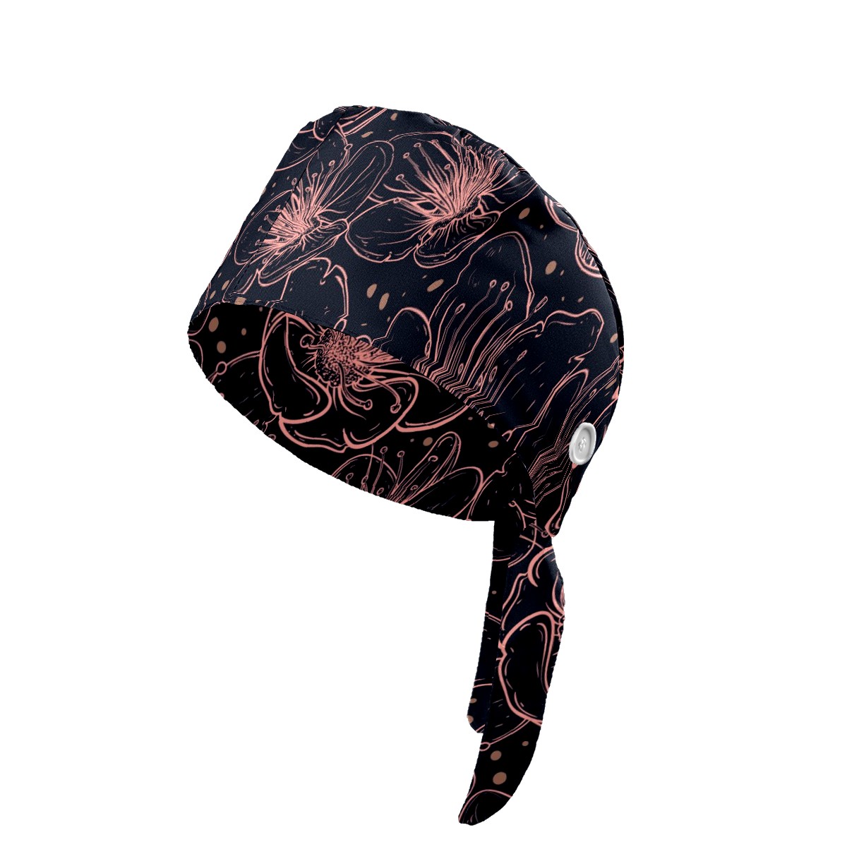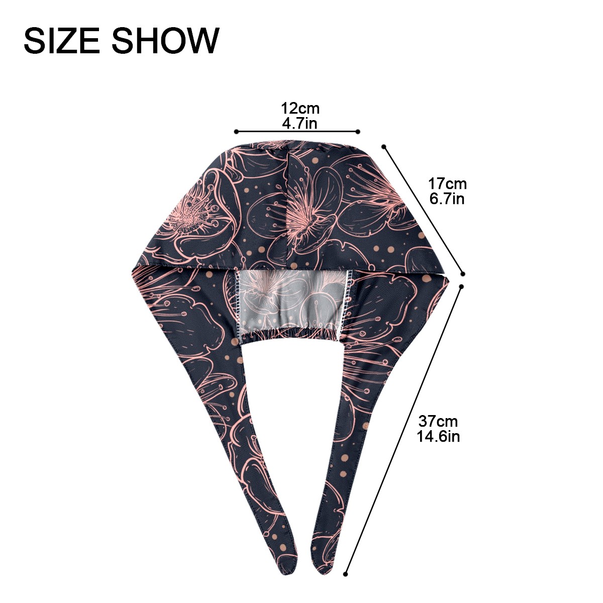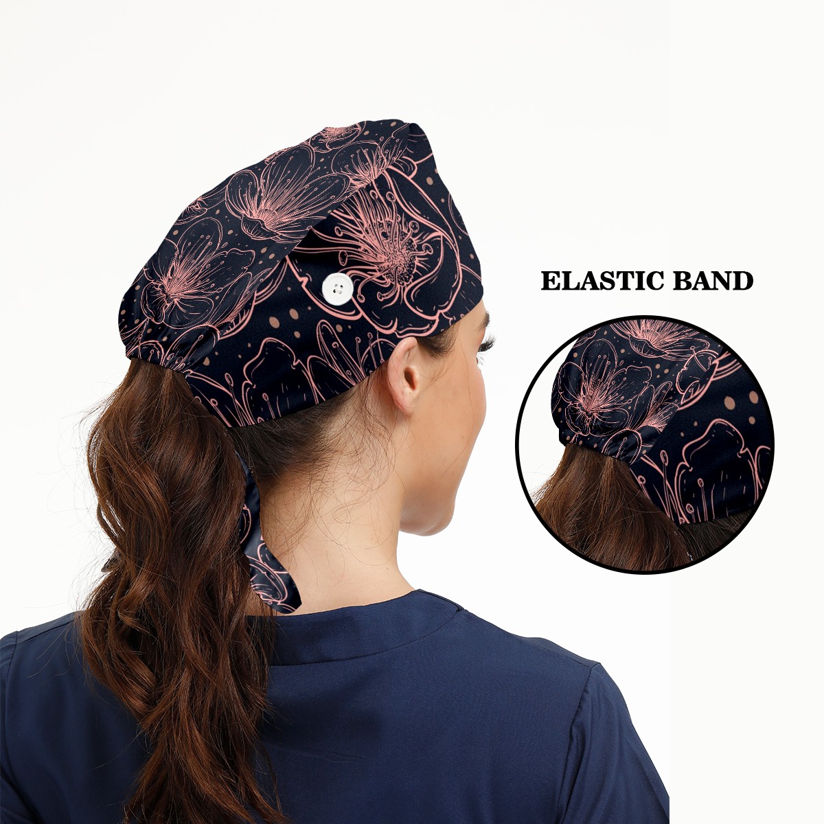Working Caps with Button & Sweatband Satin Lined Cotton Adjustable Nurse Hats Elastic Band Scrub Cap Surgeon Hat Abstract Cherry Blossom Retro