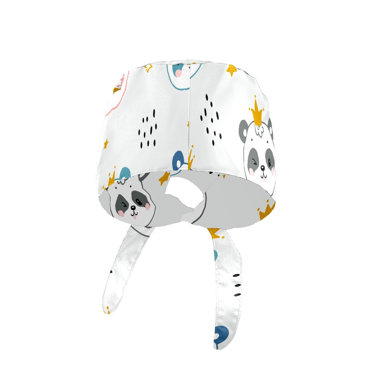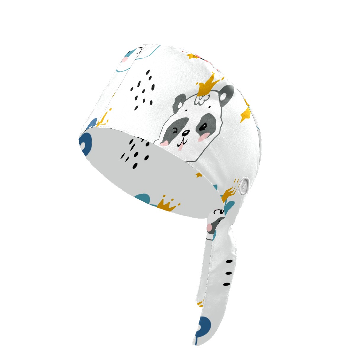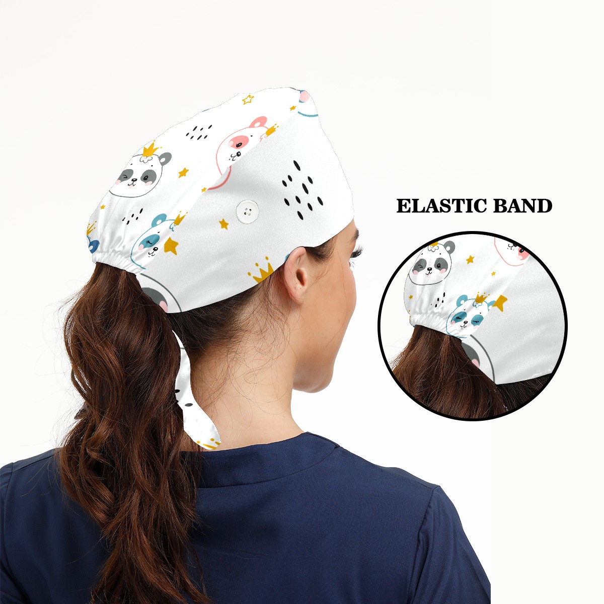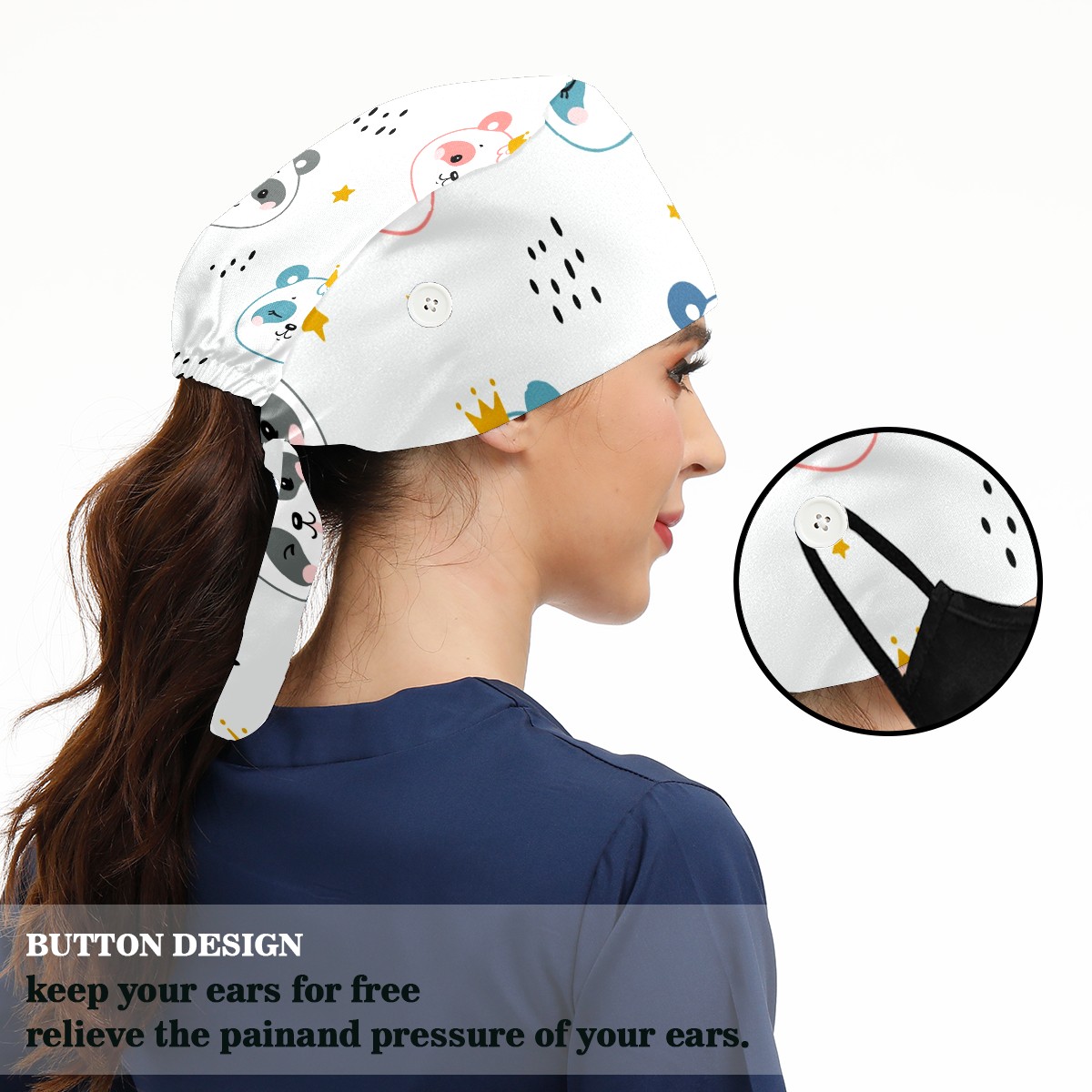 Working Caps with Button & Sweatband Satin Lined Cotton Adjustable Nurse Hats Elastic Band Scrub Cap Surgeon Hat Kawaii Pandas Princess