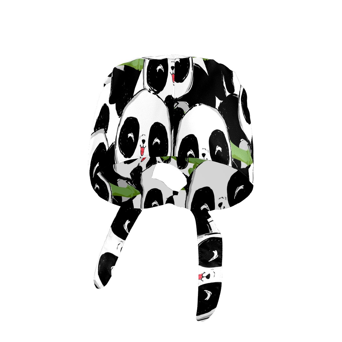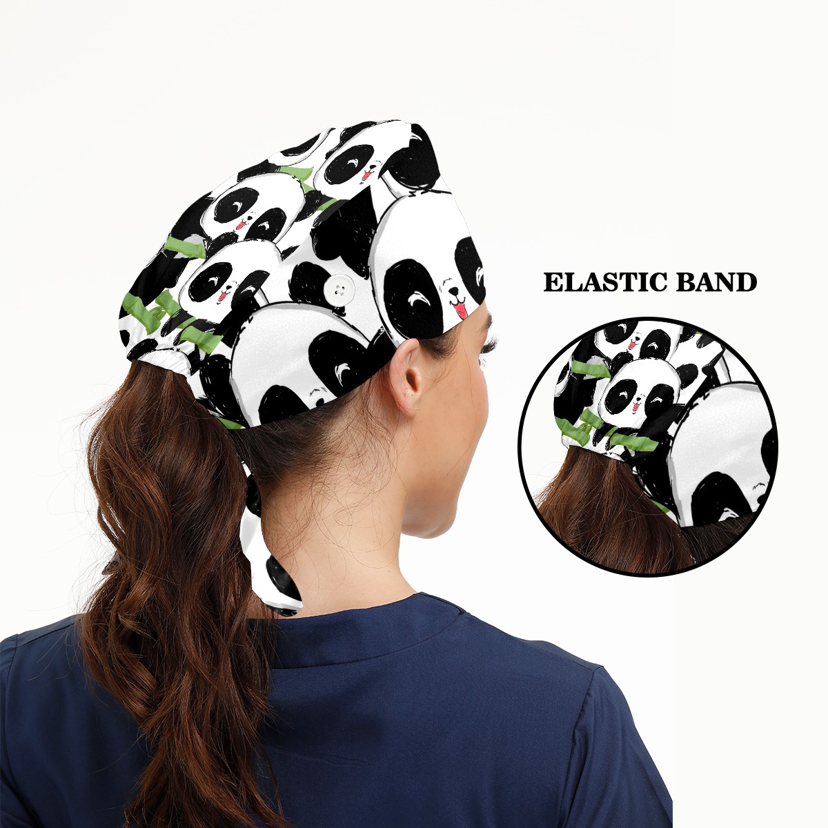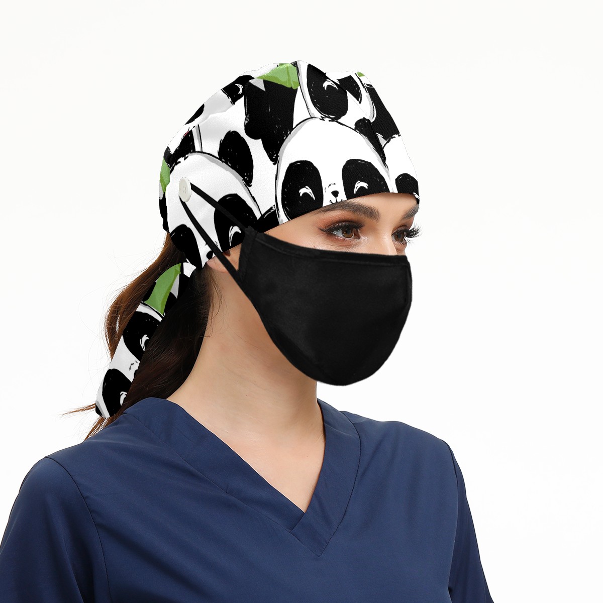 Working Caps with Button & Sweatband Satin Lined Cotton Adjustable Nurse Hats Elastic Band Scrub Cap Surgeon Hat Cute Panda