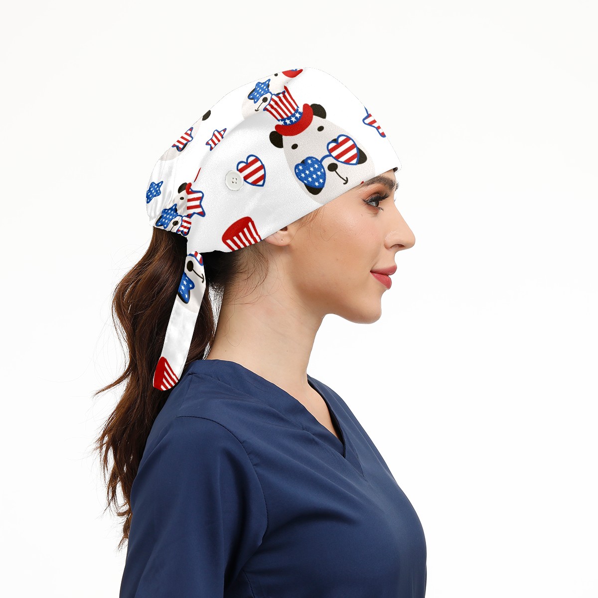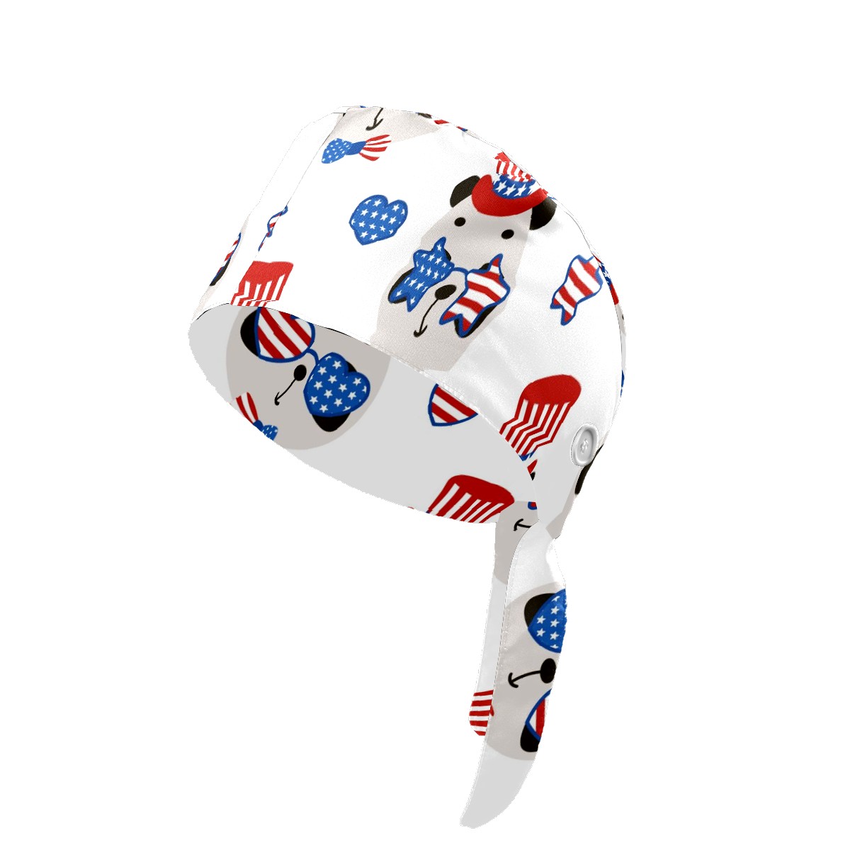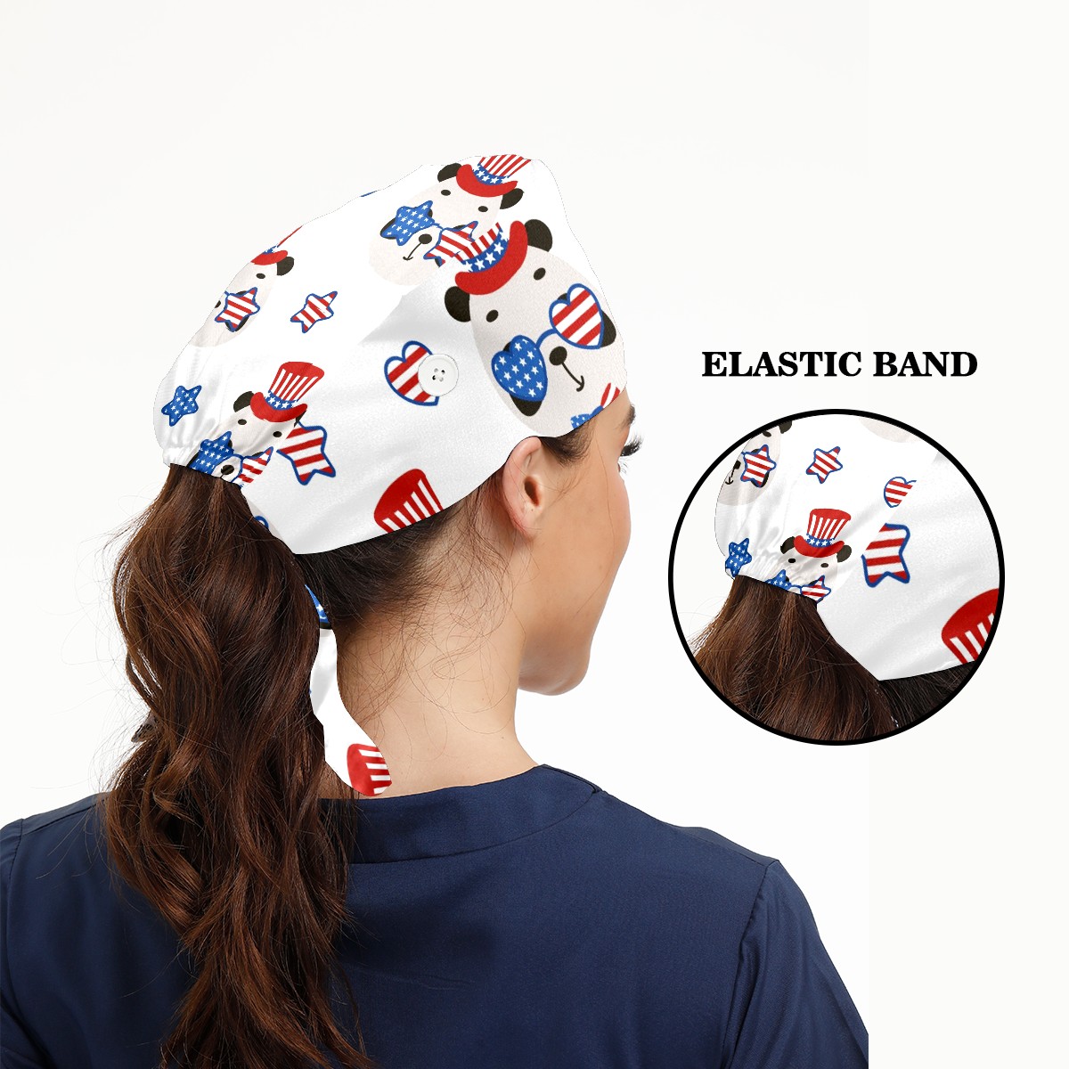 Working Caps with Button & Sweatband Satin Lined Cotton Adjustable Nurse Hats Elastic Band Scrub Cap Surgeon Hat Cute Panda USA Patriotic Hat