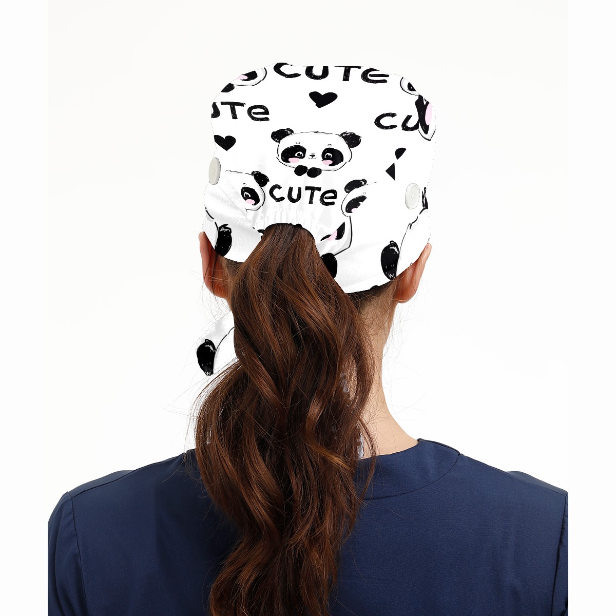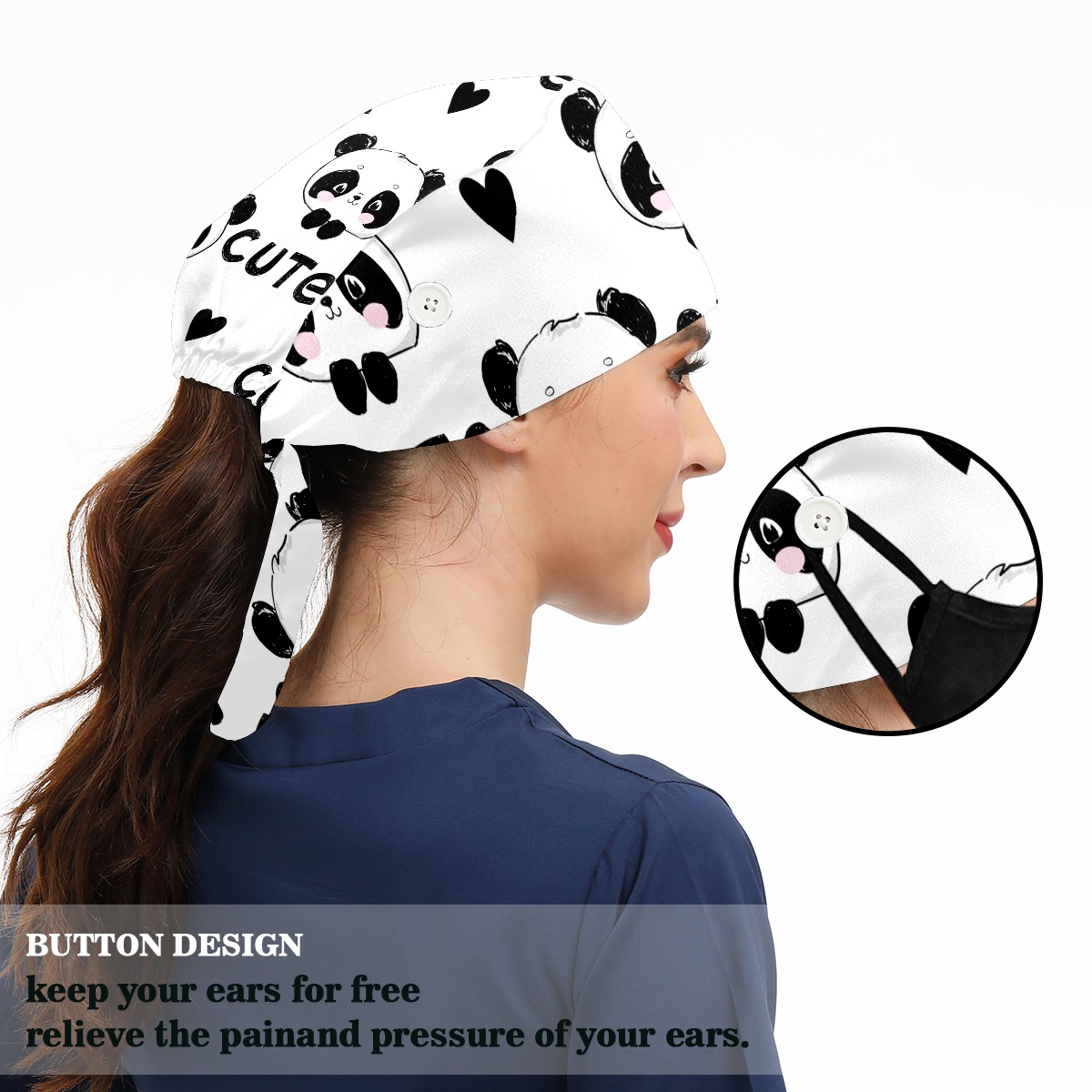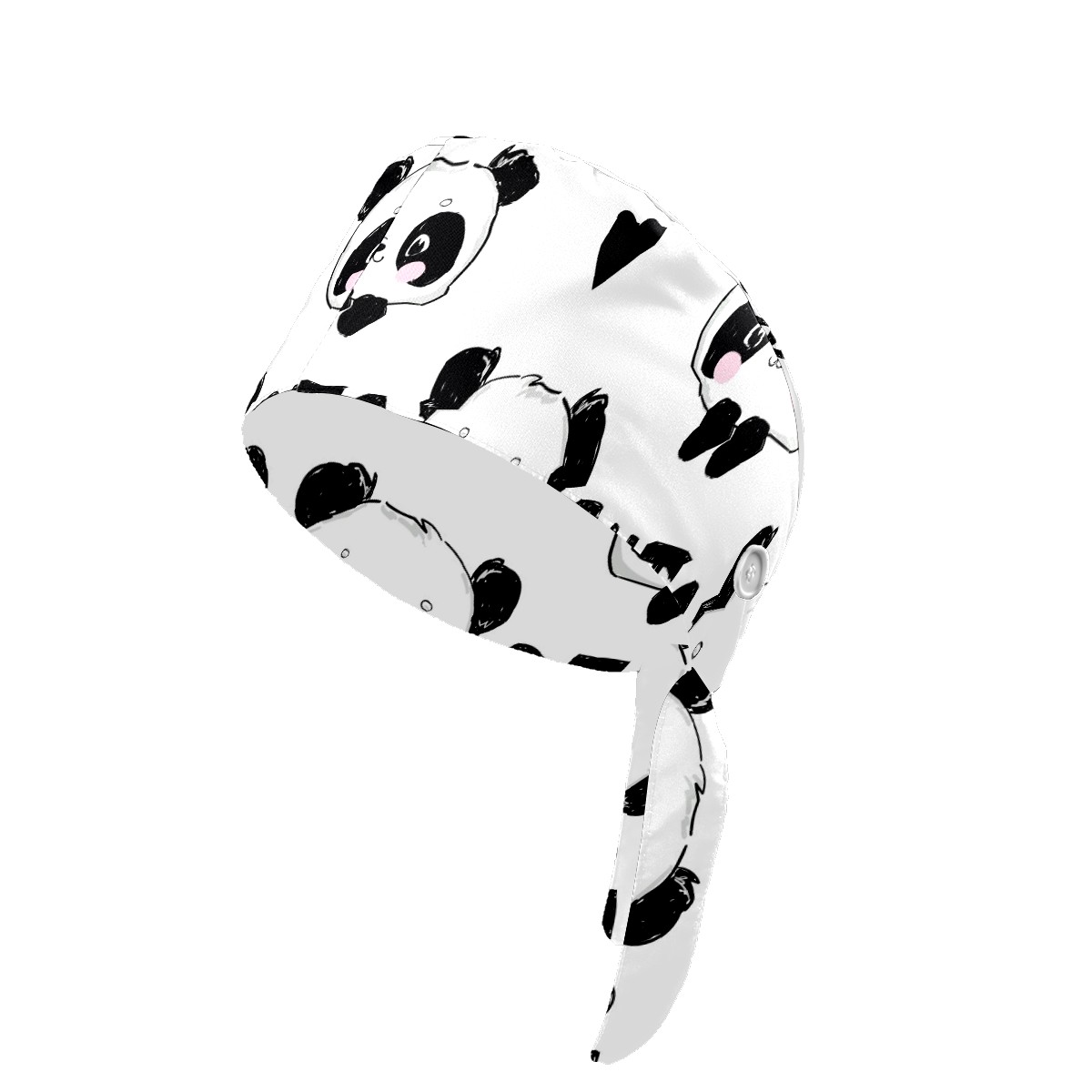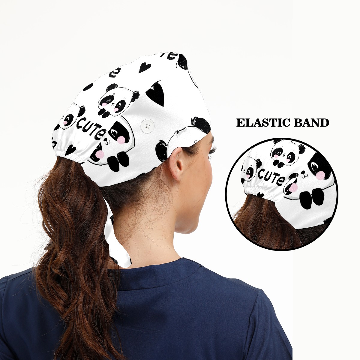 Working Caps with Button & Sweatband Satin Lined Cotton Adjustable Nurse Hats Elastic Band Scrub Cap Surgeon Hat Cute Panda And Heart