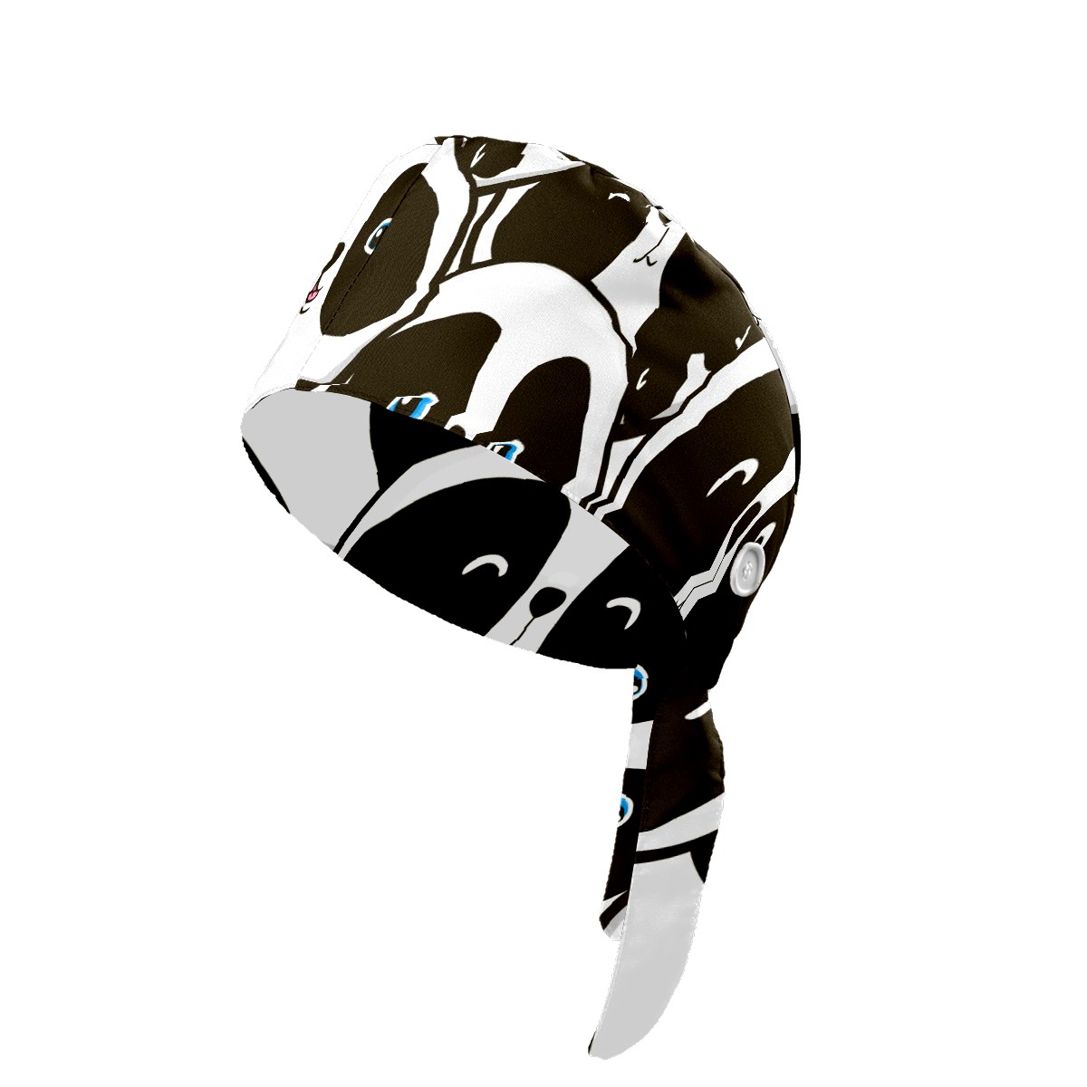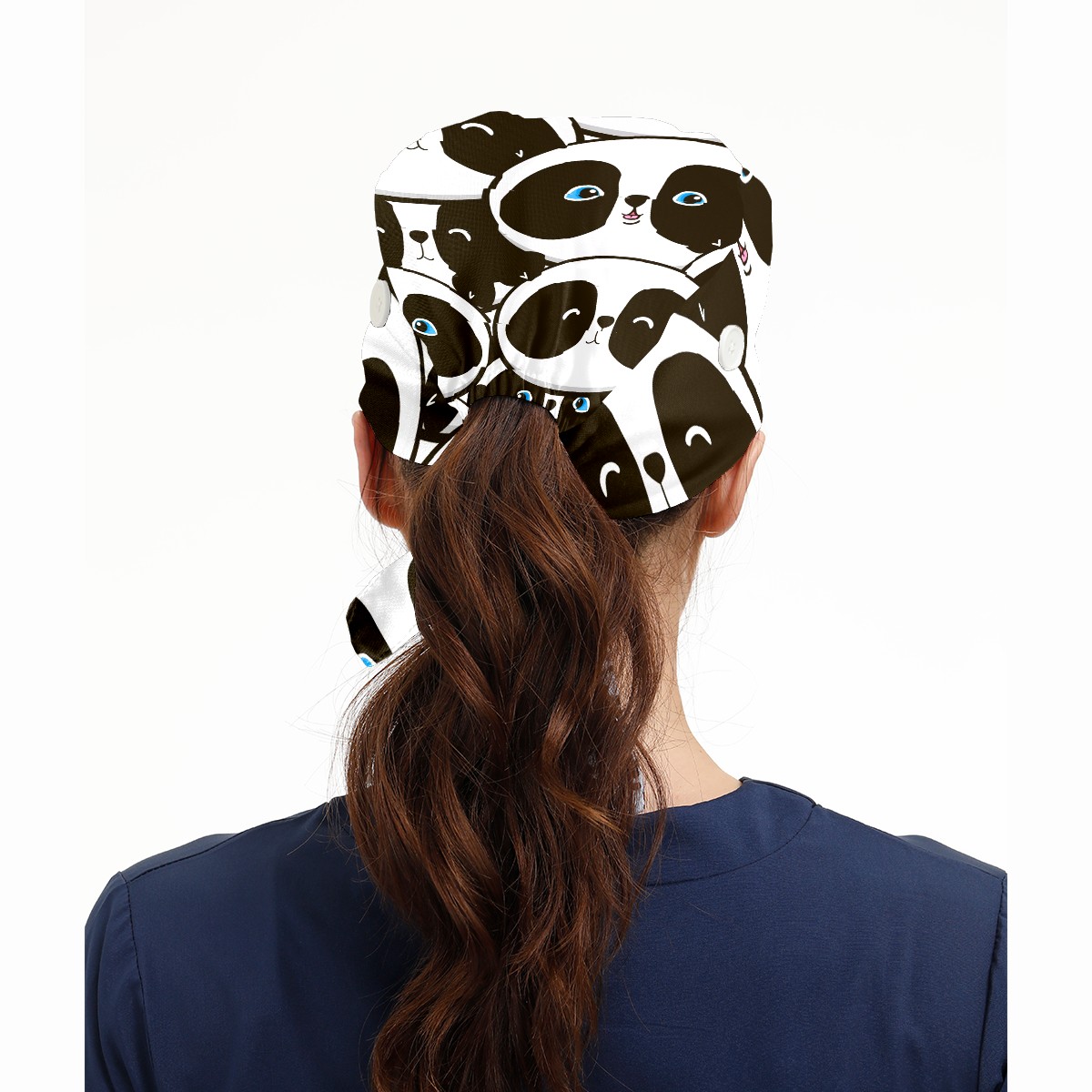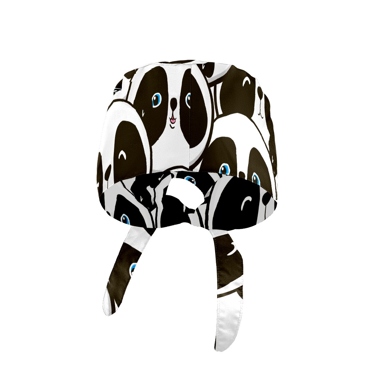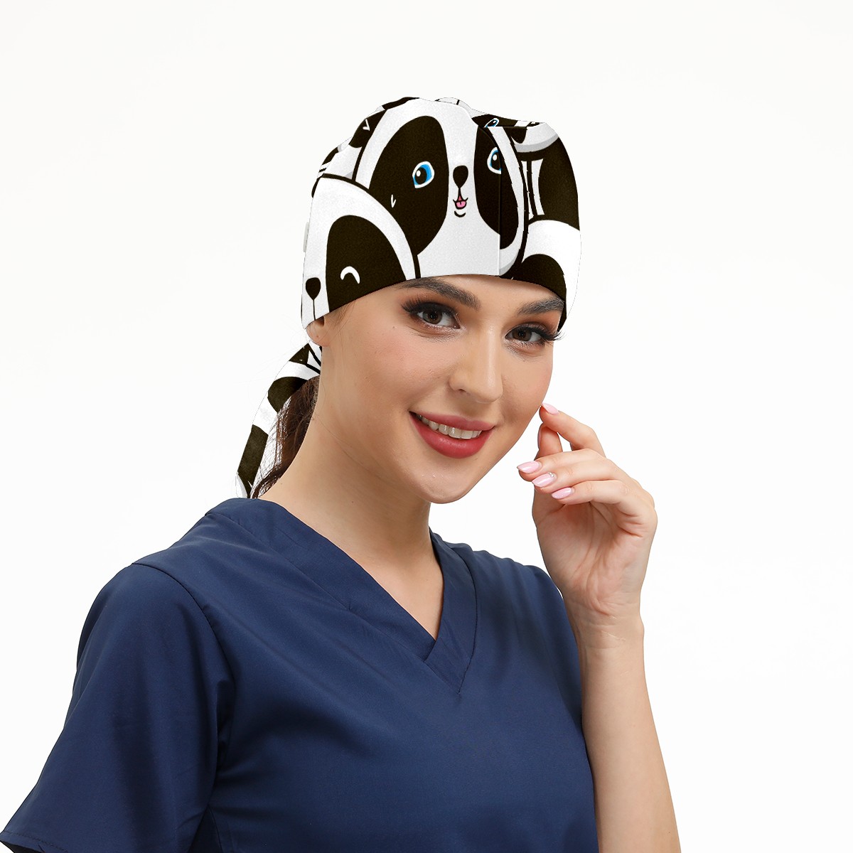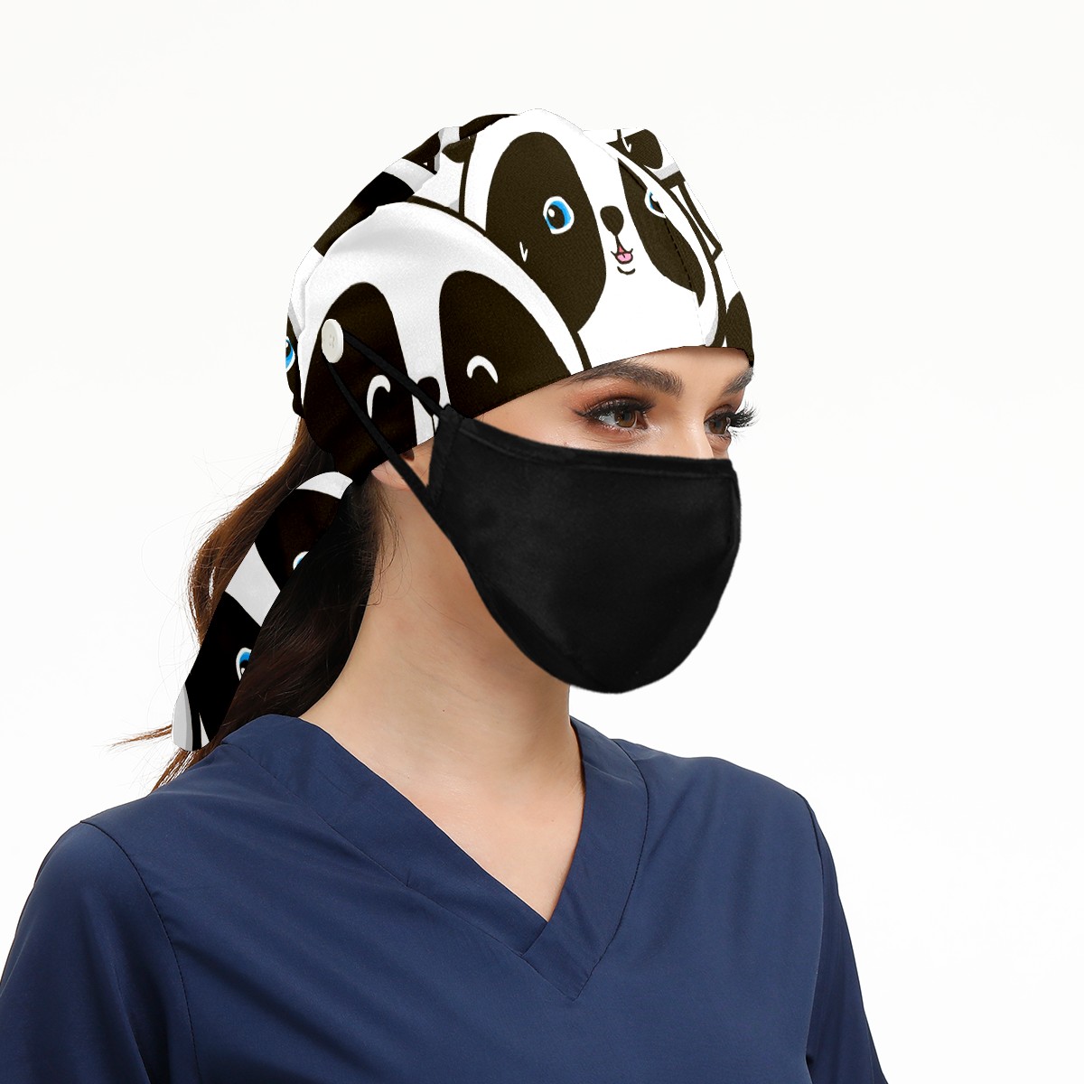 Working Caps with Button & Sweatband Satin Lined Cotton Adjustable Nurse Hats Elastic Band Scrub Cap Surgeon Hat Cute Panda Baby