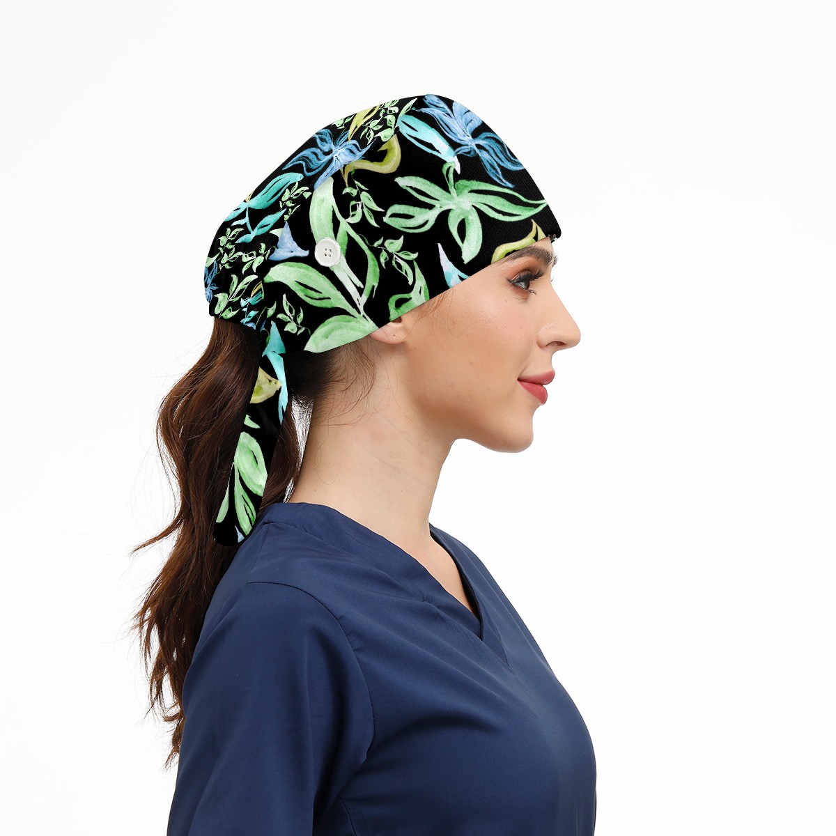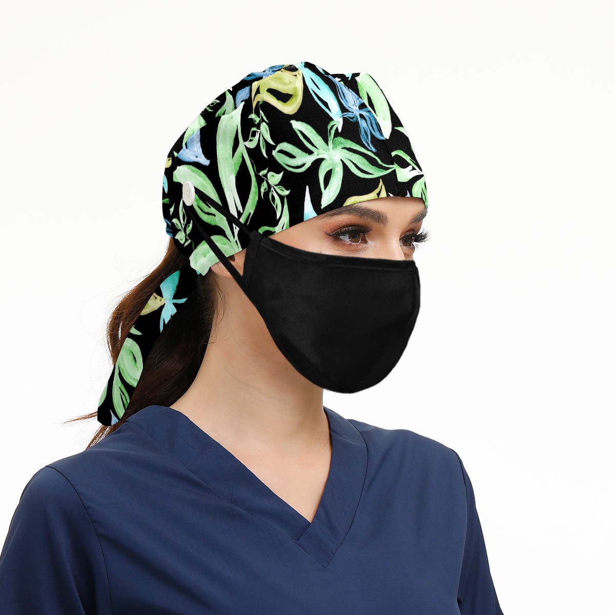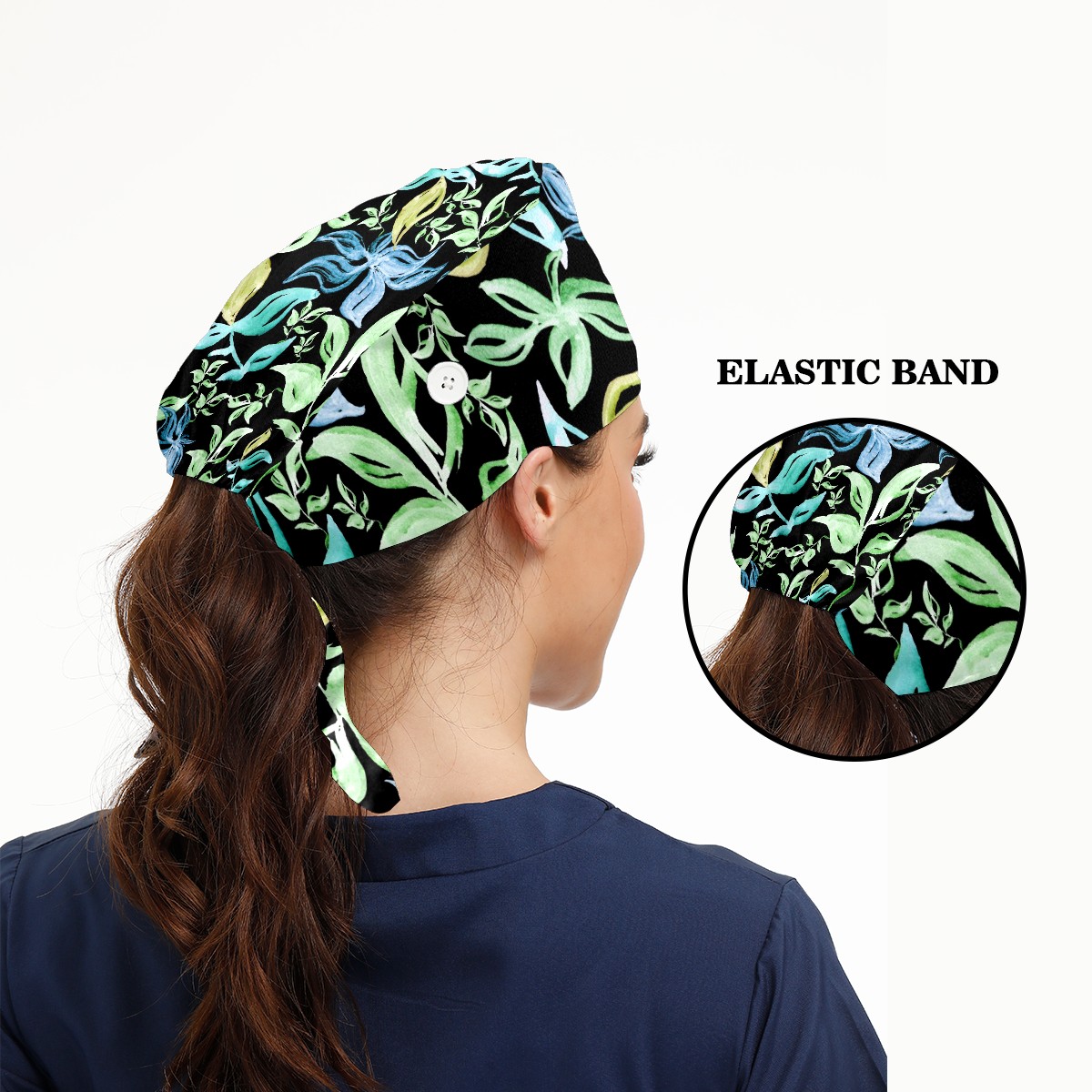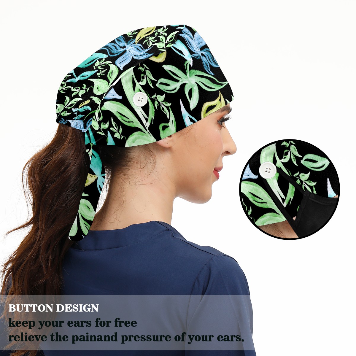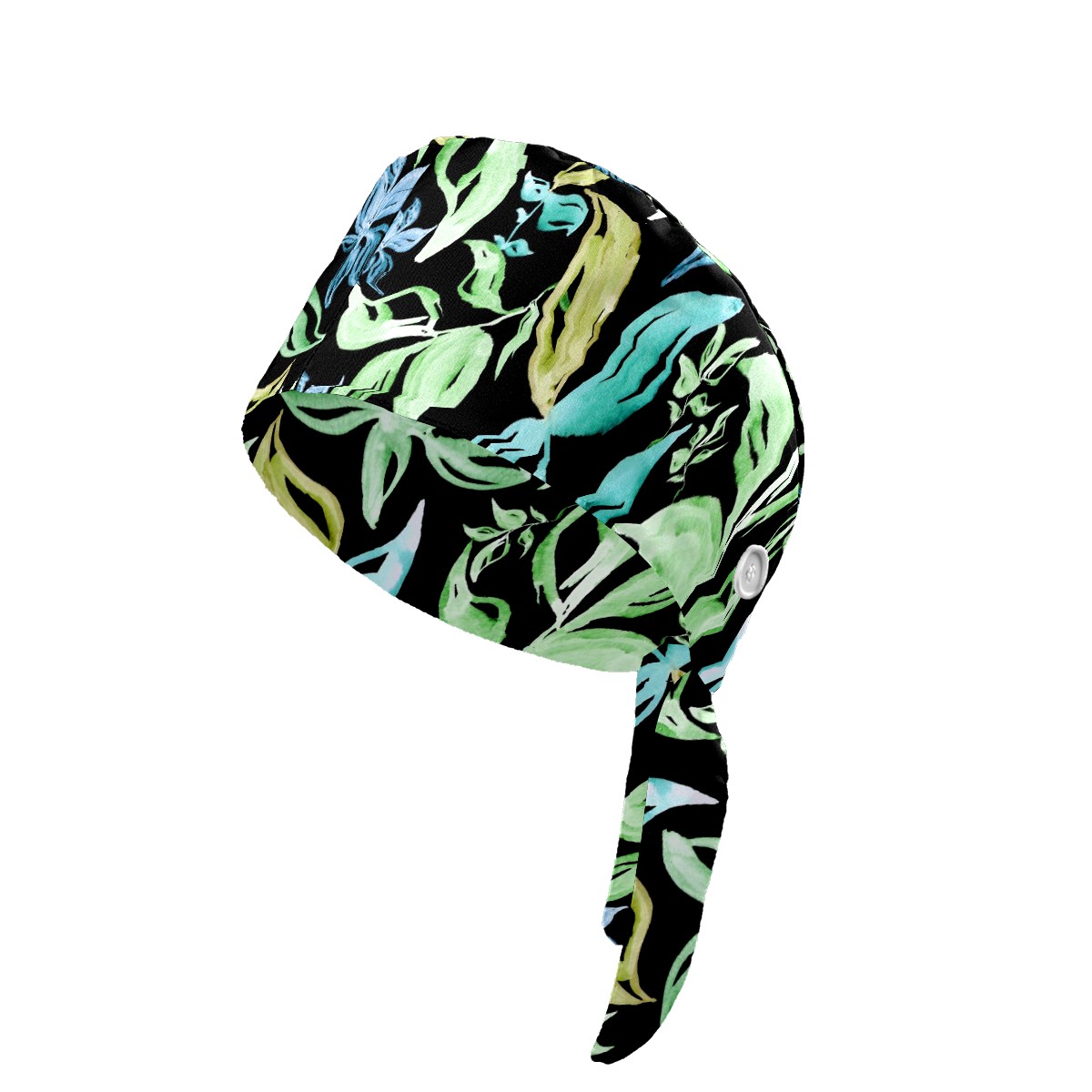 Working Caps with Button & Sweatband Satin Lined Cotton Adjustable Nurse Hats Elastic Band Scrub Cap Surgeon Hat Abstract Summer Tropical Green Leaves