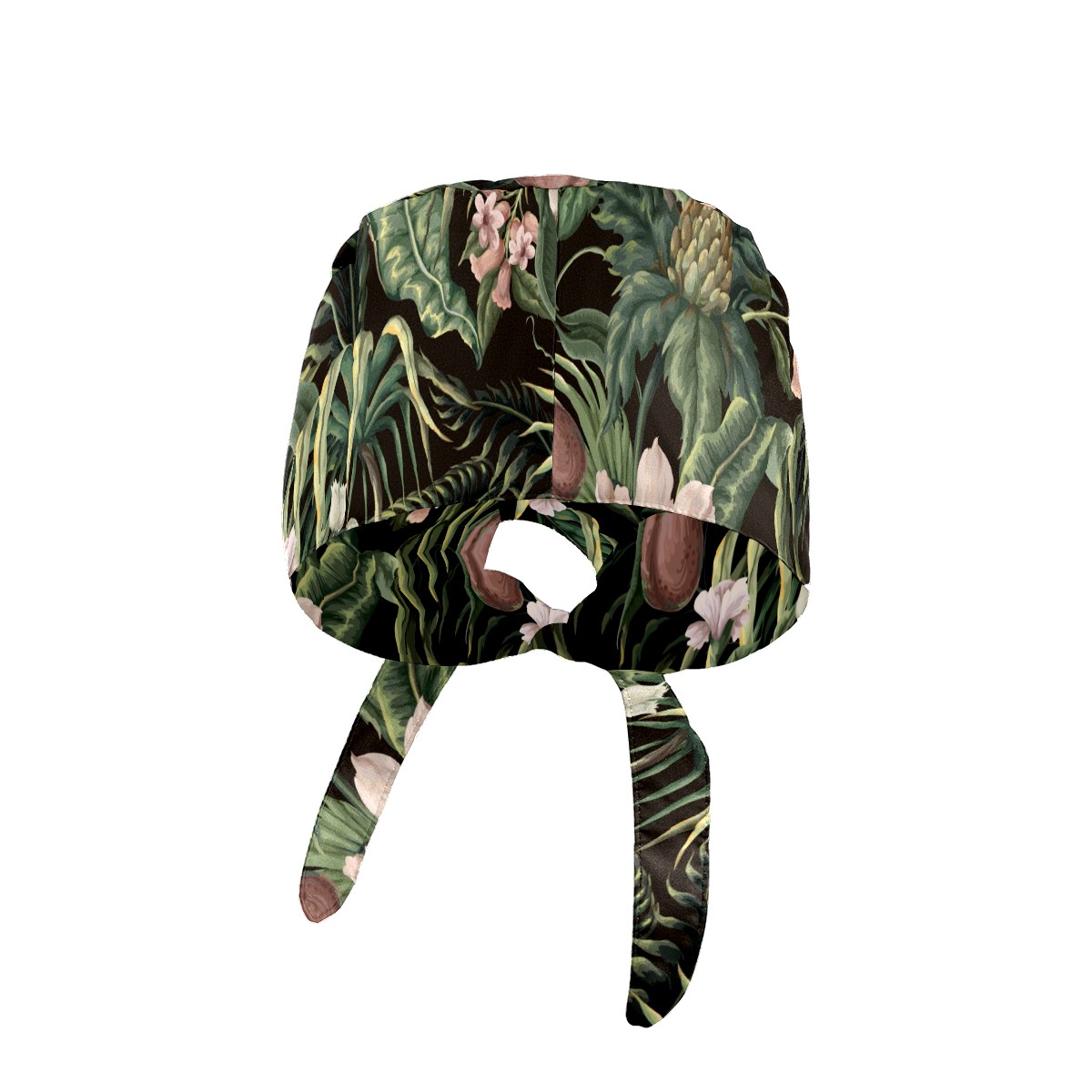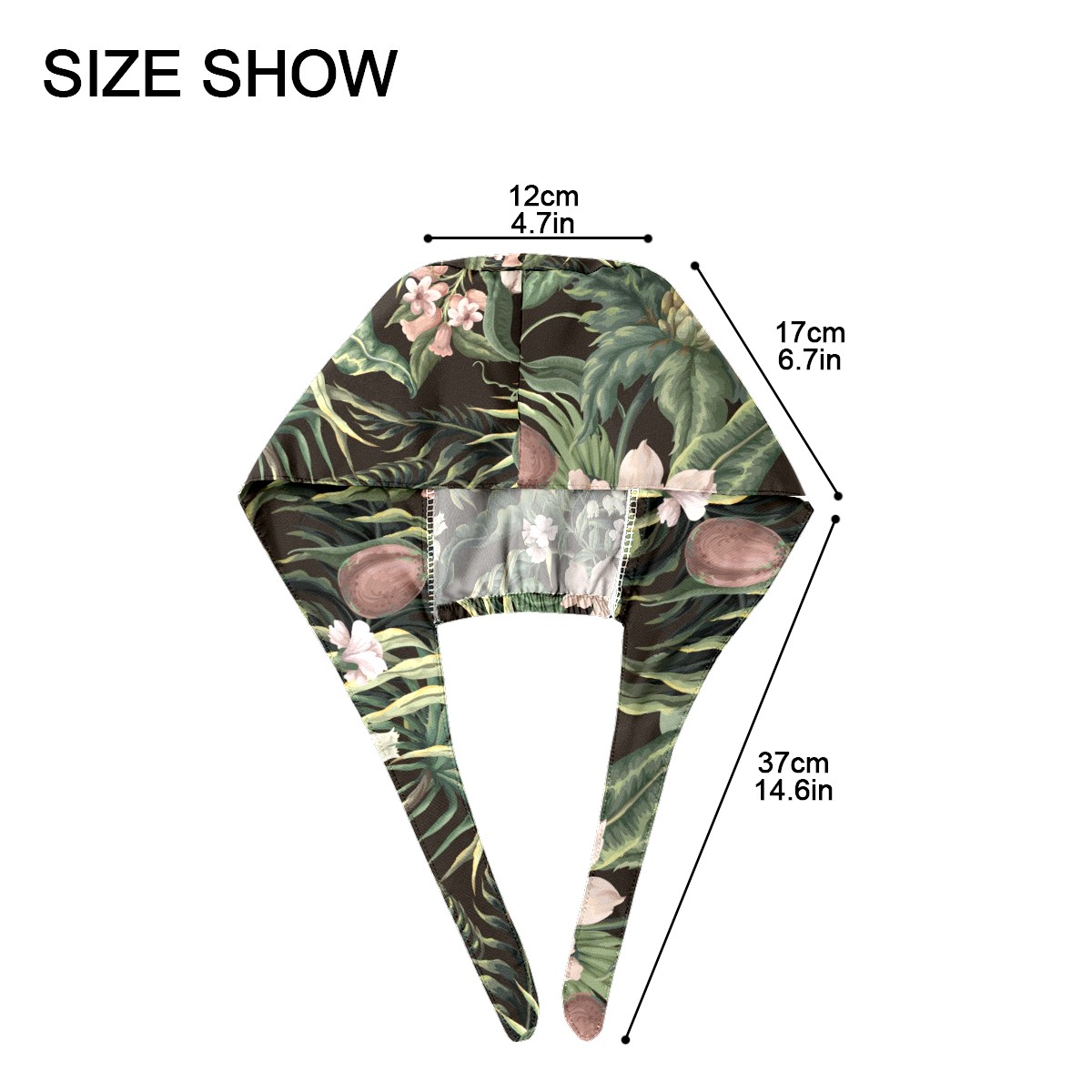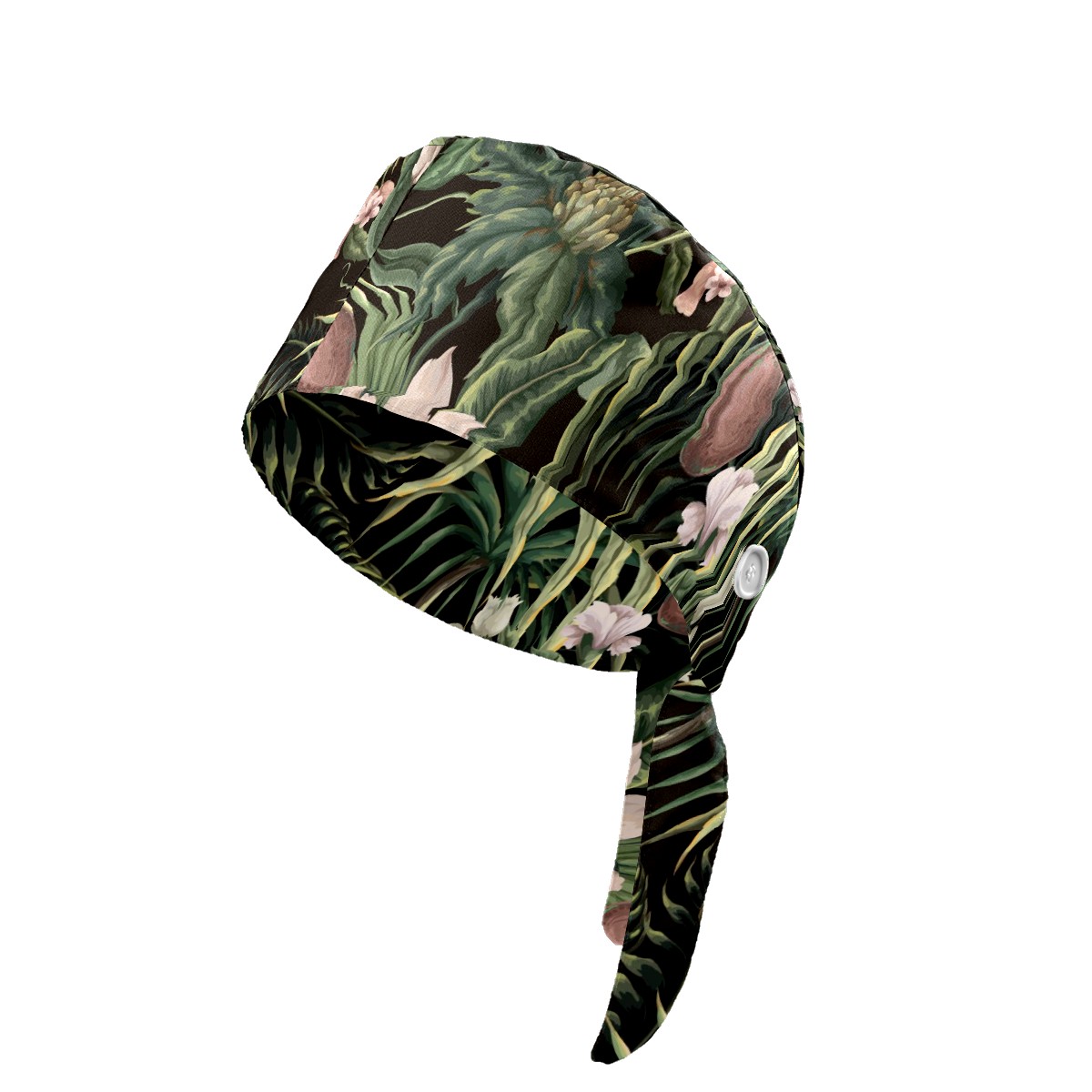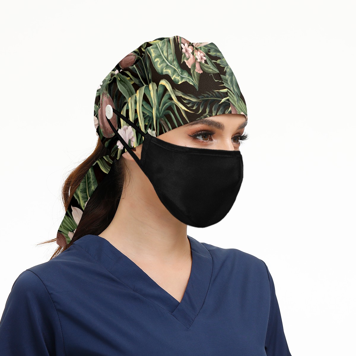 Working Caps with Button & Sweatband Satin Lined Cotton Adjustable Nurse Hats Elastic Band Scrub Cap Surgeon Hat Tropical Leaves Plants And Flowers