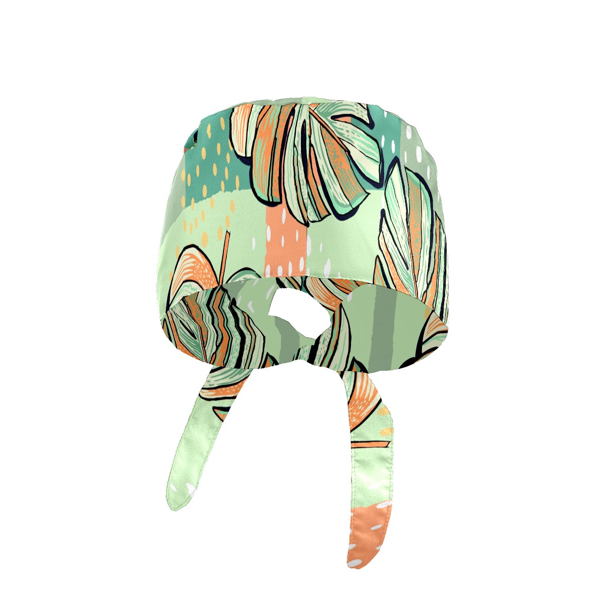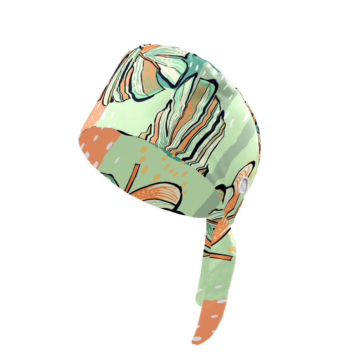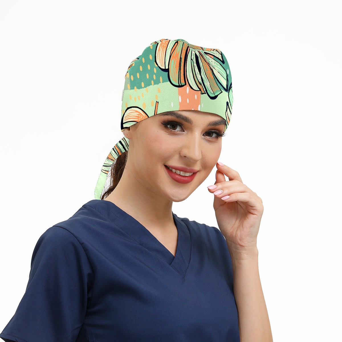 Working Caps with Button & Sweatband Satin Lined Cotton Adjustable Nurse Hats Elastic Band Scrub Cap Surgeon Hat Tropical Funny Monstera Leaf