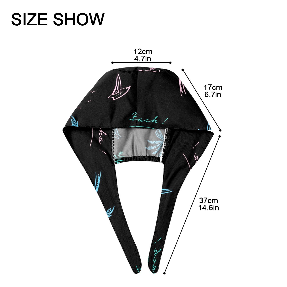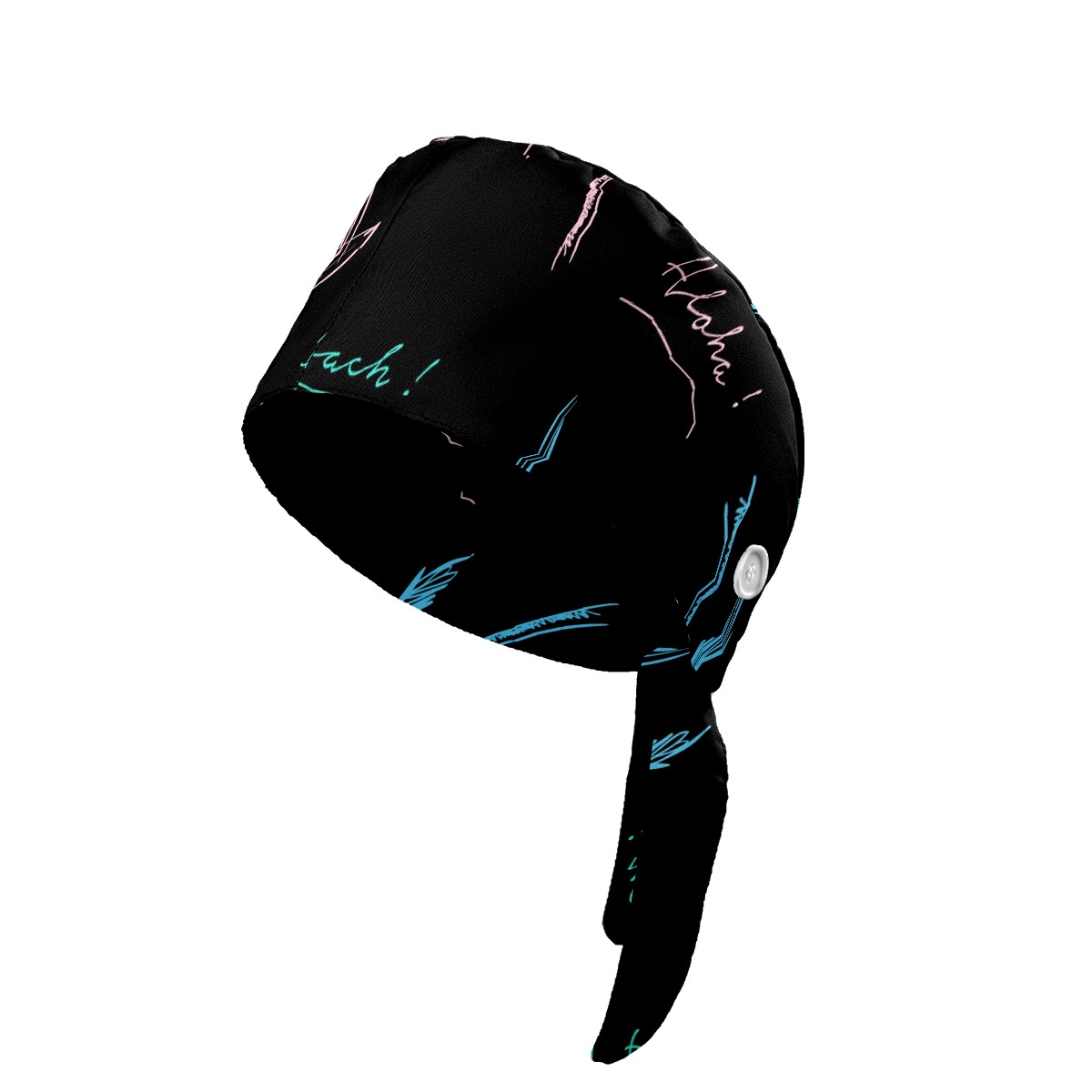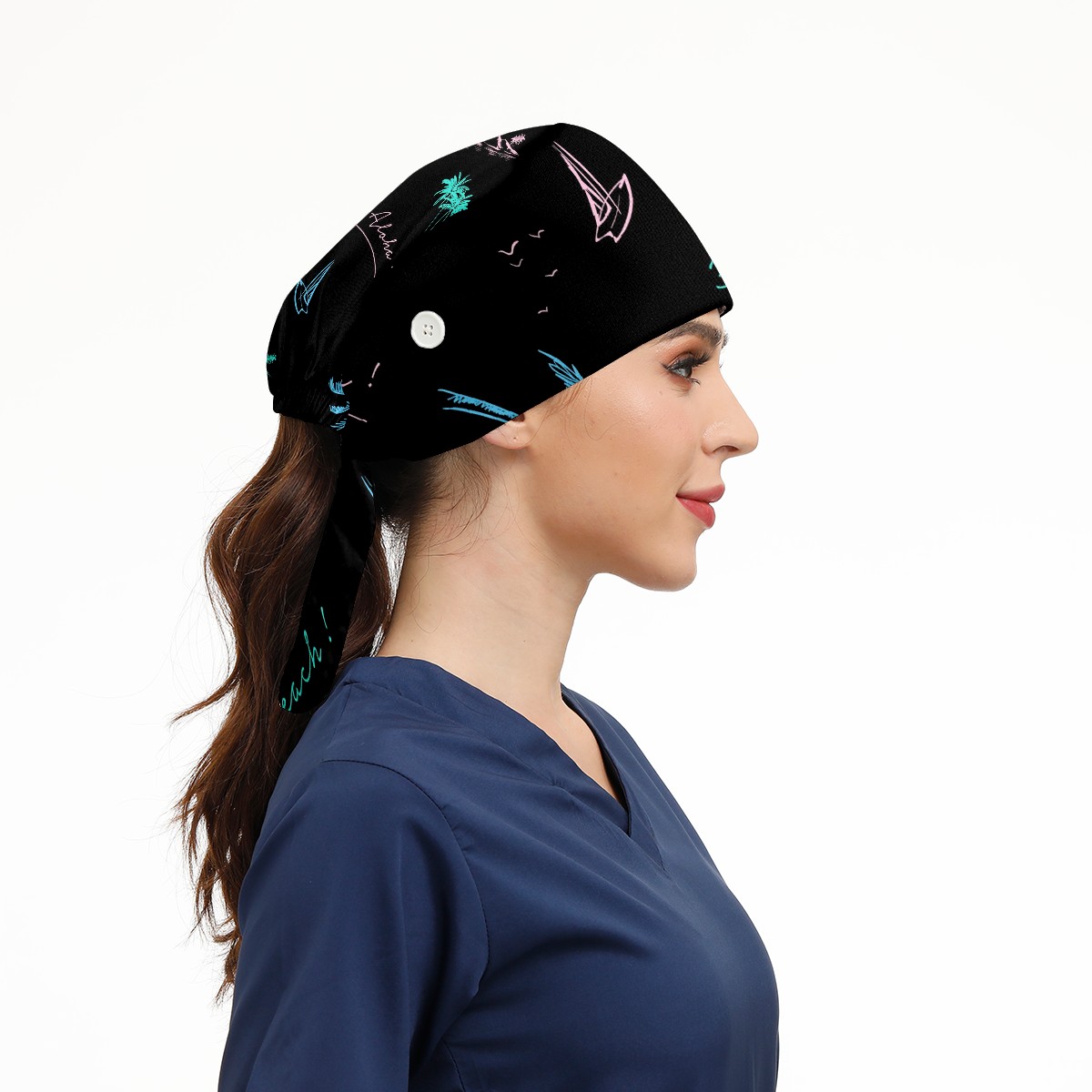 Working Caps with Button & Sweatband Satin Lined Cotton Adjustable Nurse Hats Elastic Band Scrub Cap Surgeon Hat Palm Trees Island Beach And Ocean