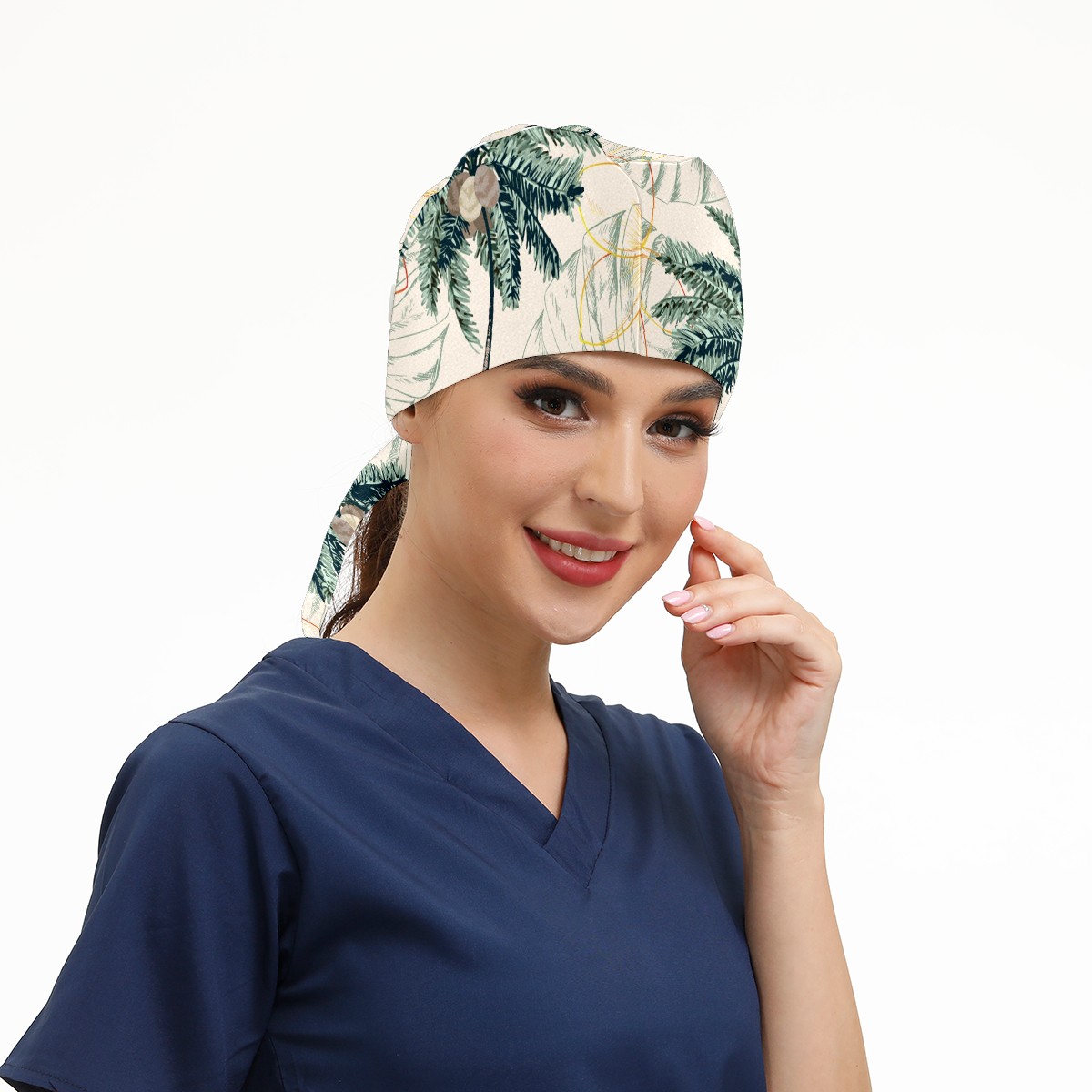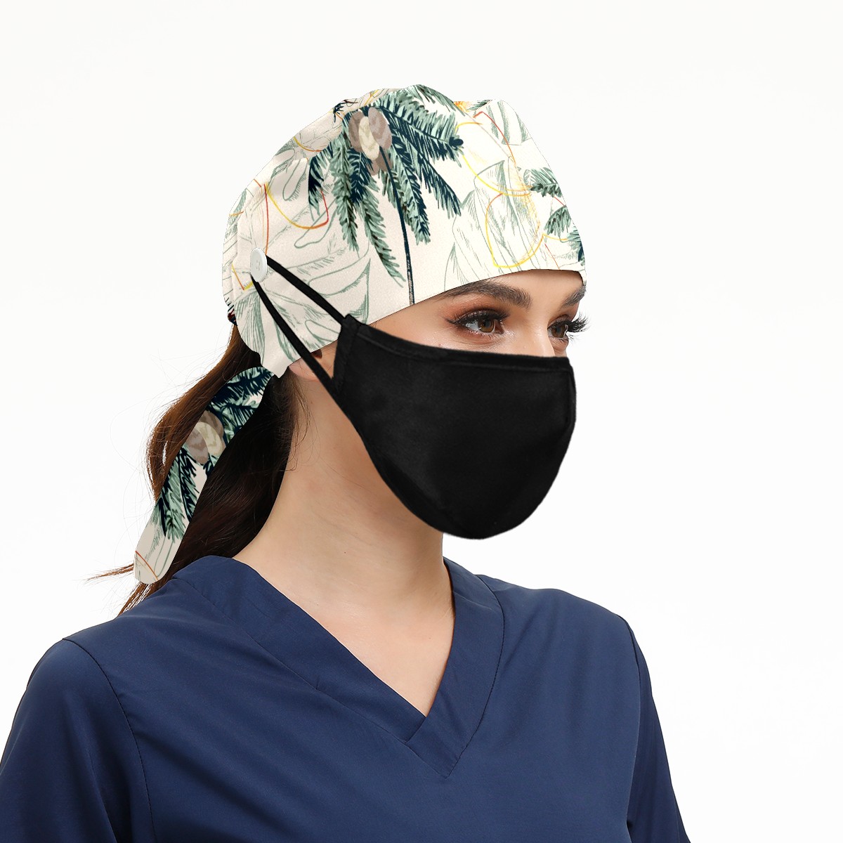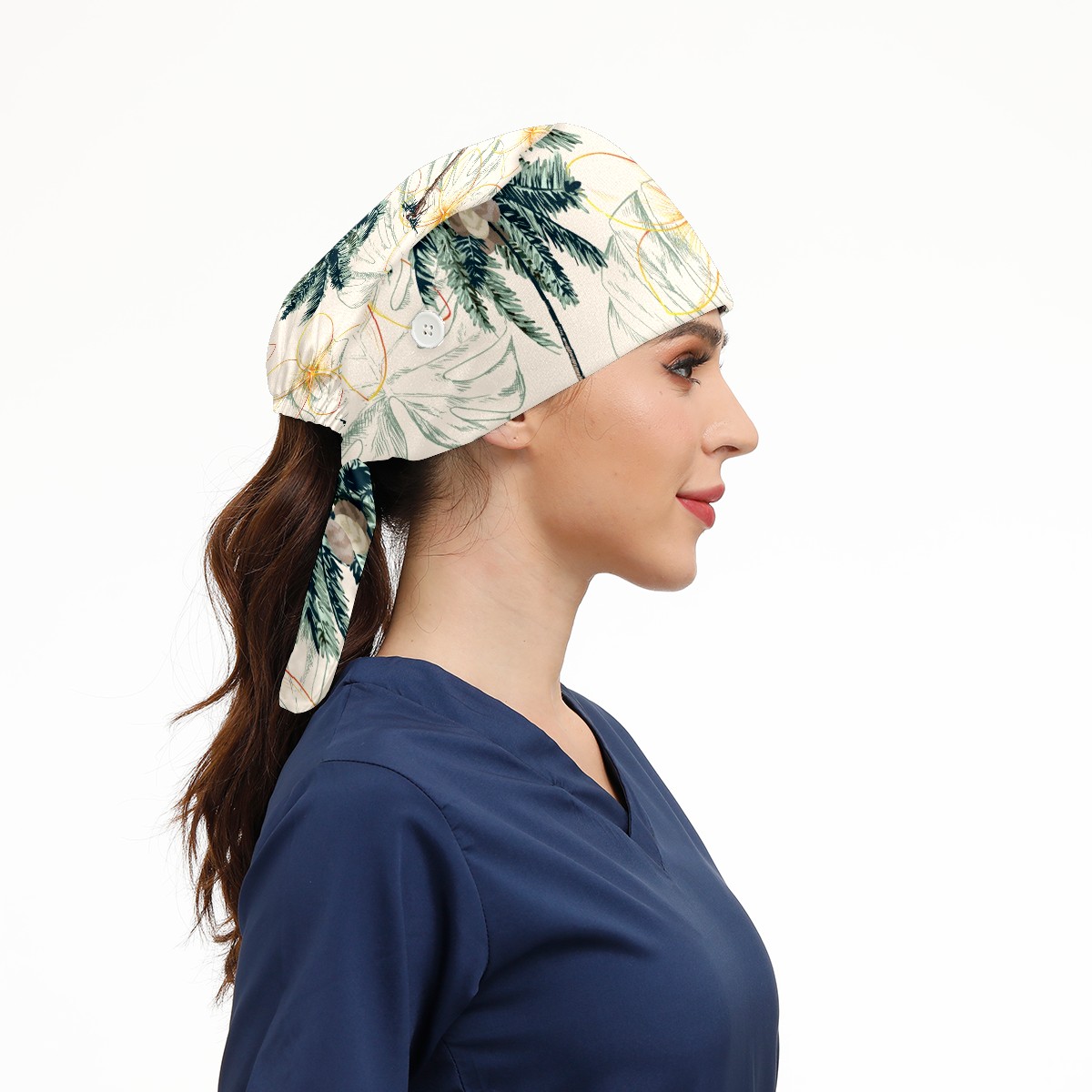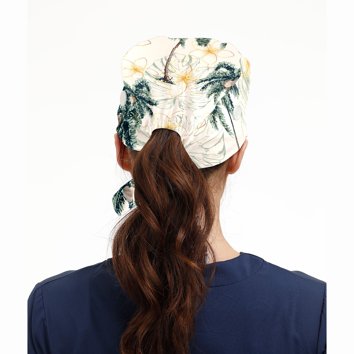 Working Caps with Button & Sweatband Satin Lined Cotton Adjustable Nurse Hats Elastic Band Scrub Cap Surgeon Hat Colorful Tropical Palm Tree