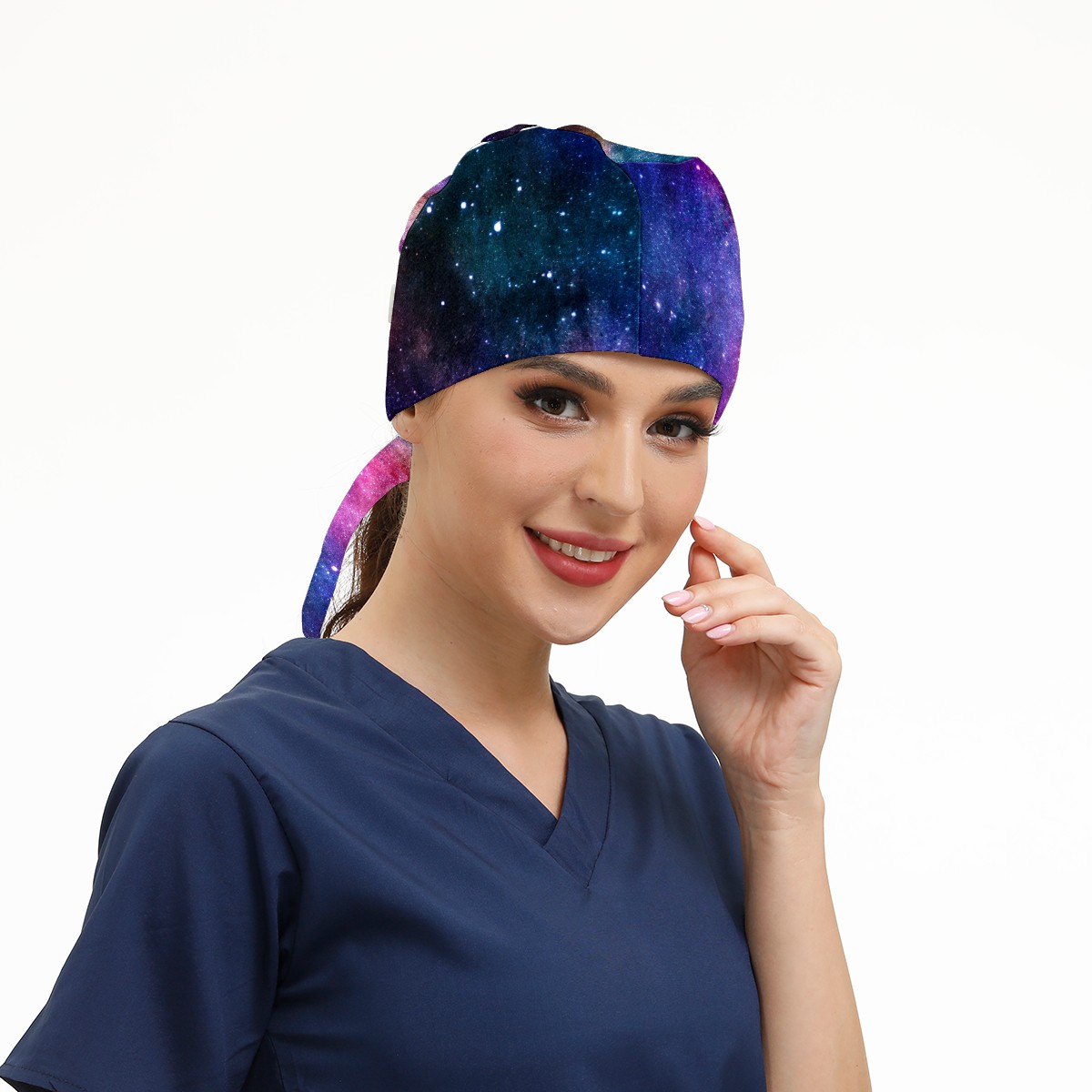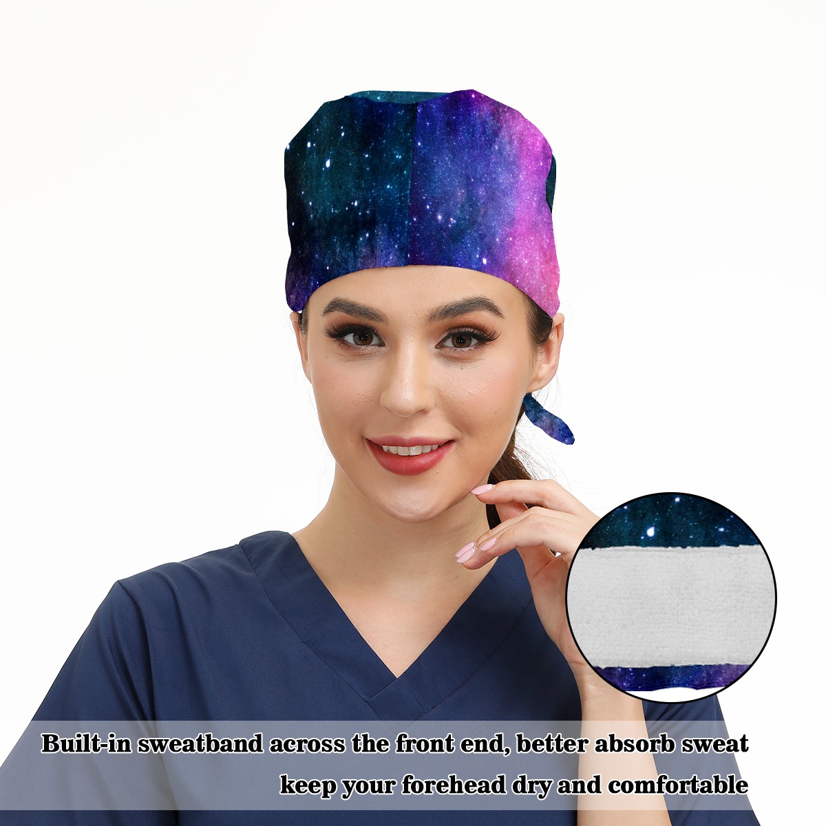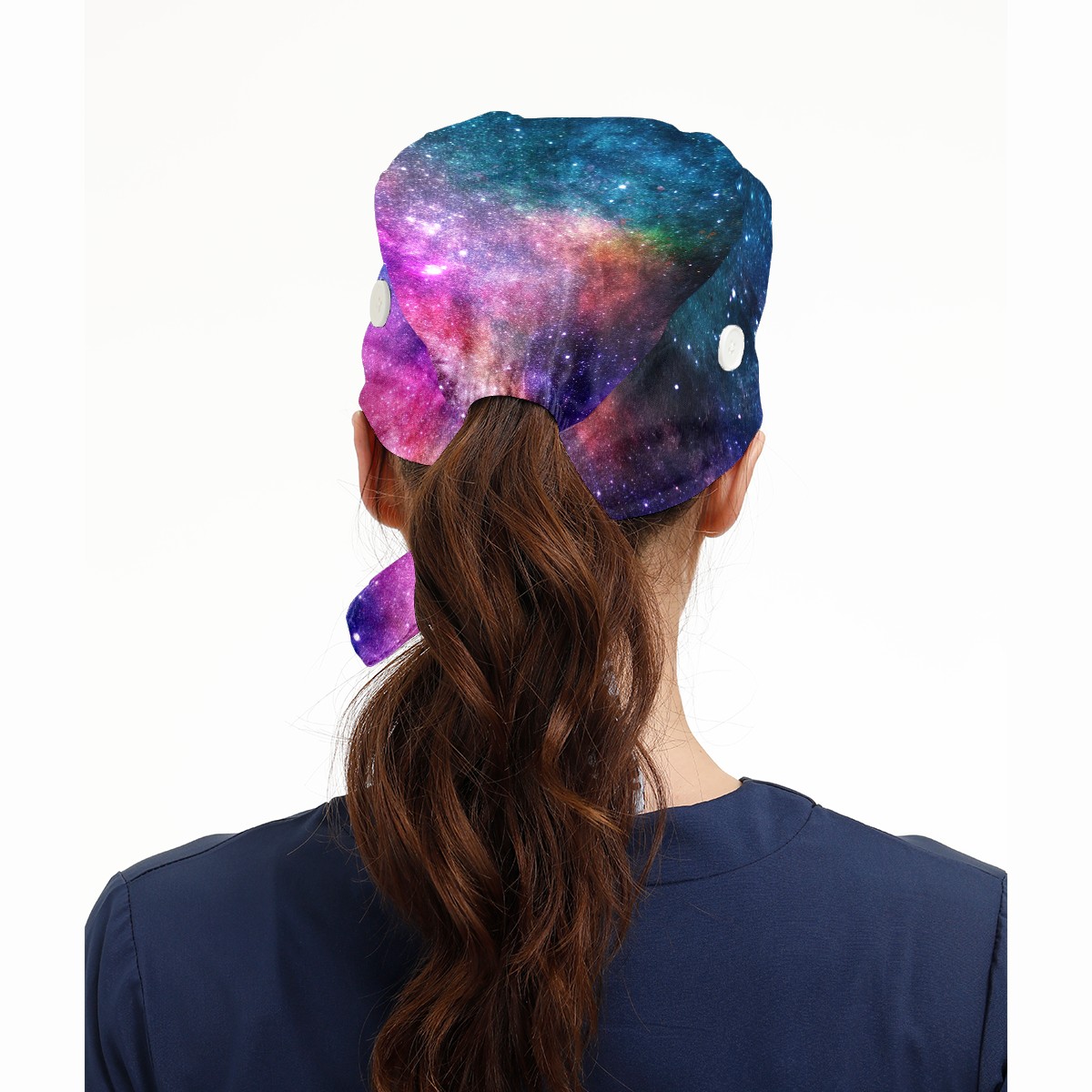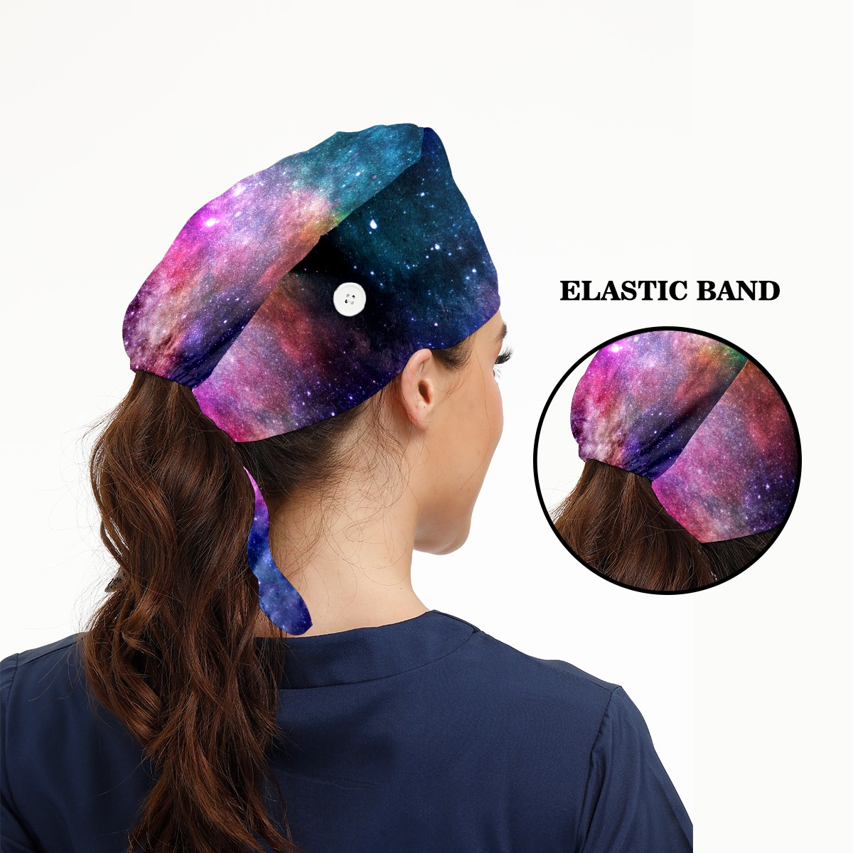 Working Caps with Button & Sweatband Satin Lined Cotton Adjustable Nurse Hats Elastic Band Scrub Cap Surgeon Hat Colorful Universe Galaxy