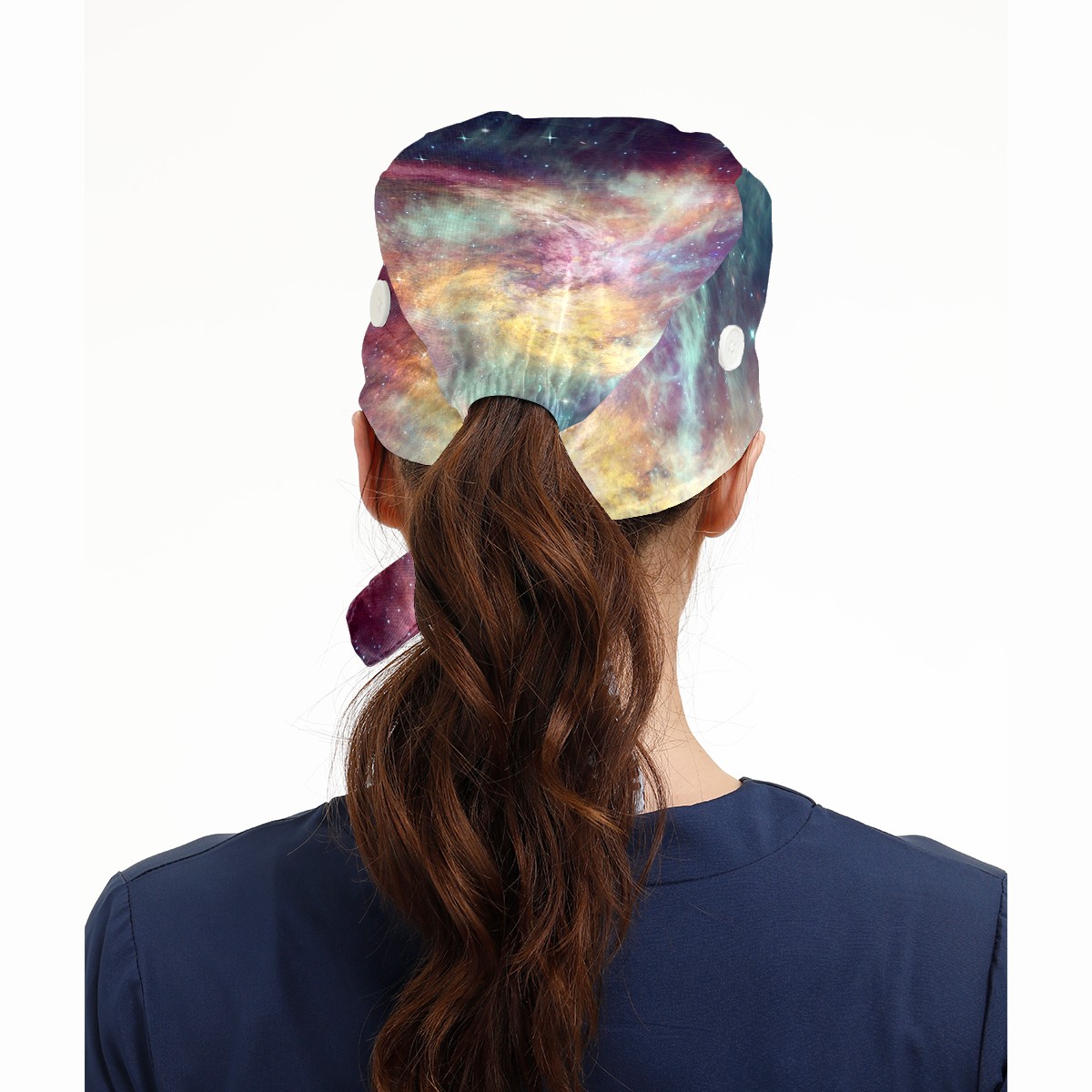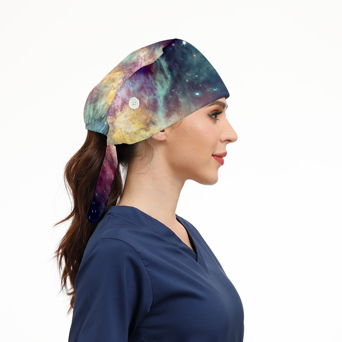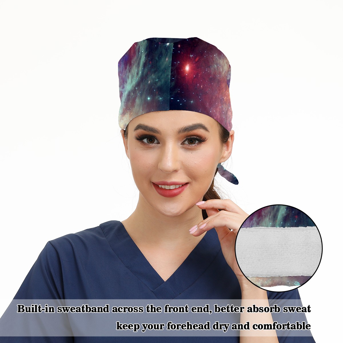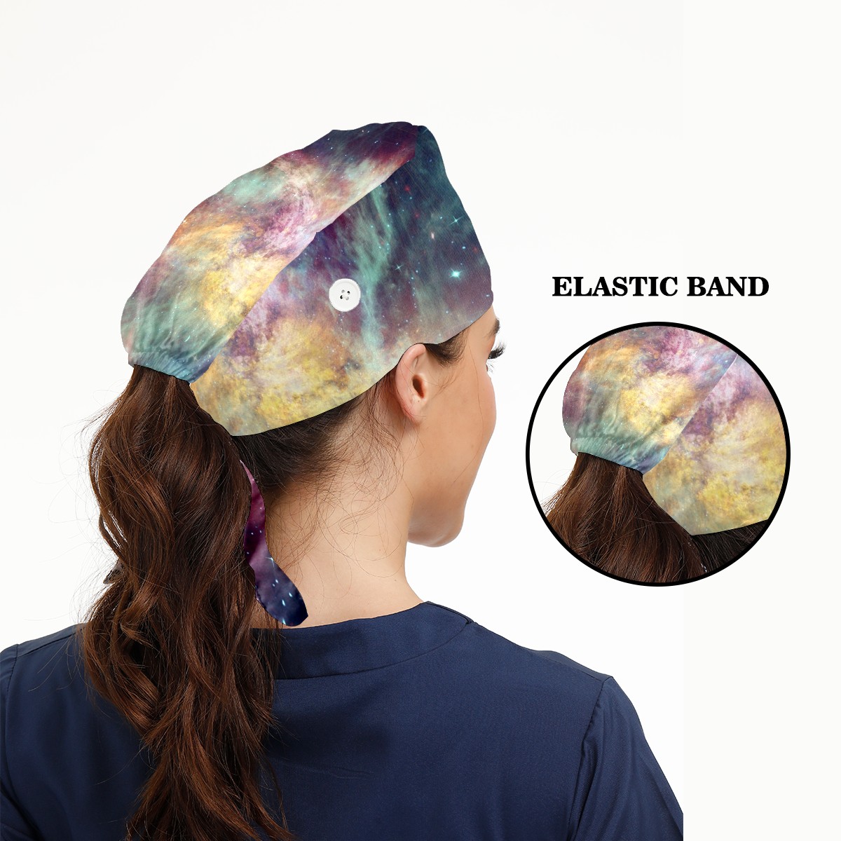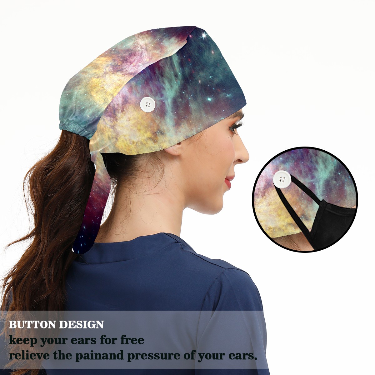 Working Caps with Button & Sweatband Satin Lined Cotton Adjustable Nurse Hats Elastic Band Scrub Cap Surgeon Hat Universe Planet Galaxy