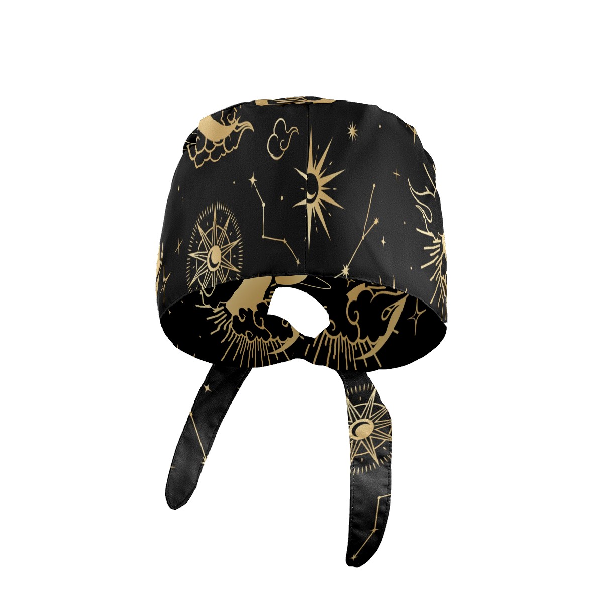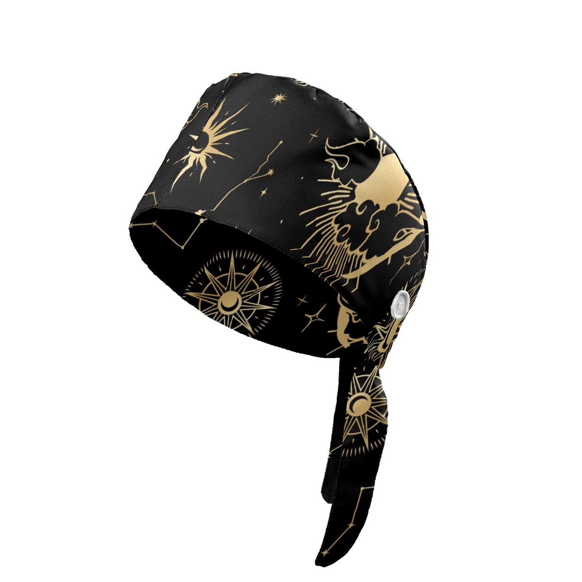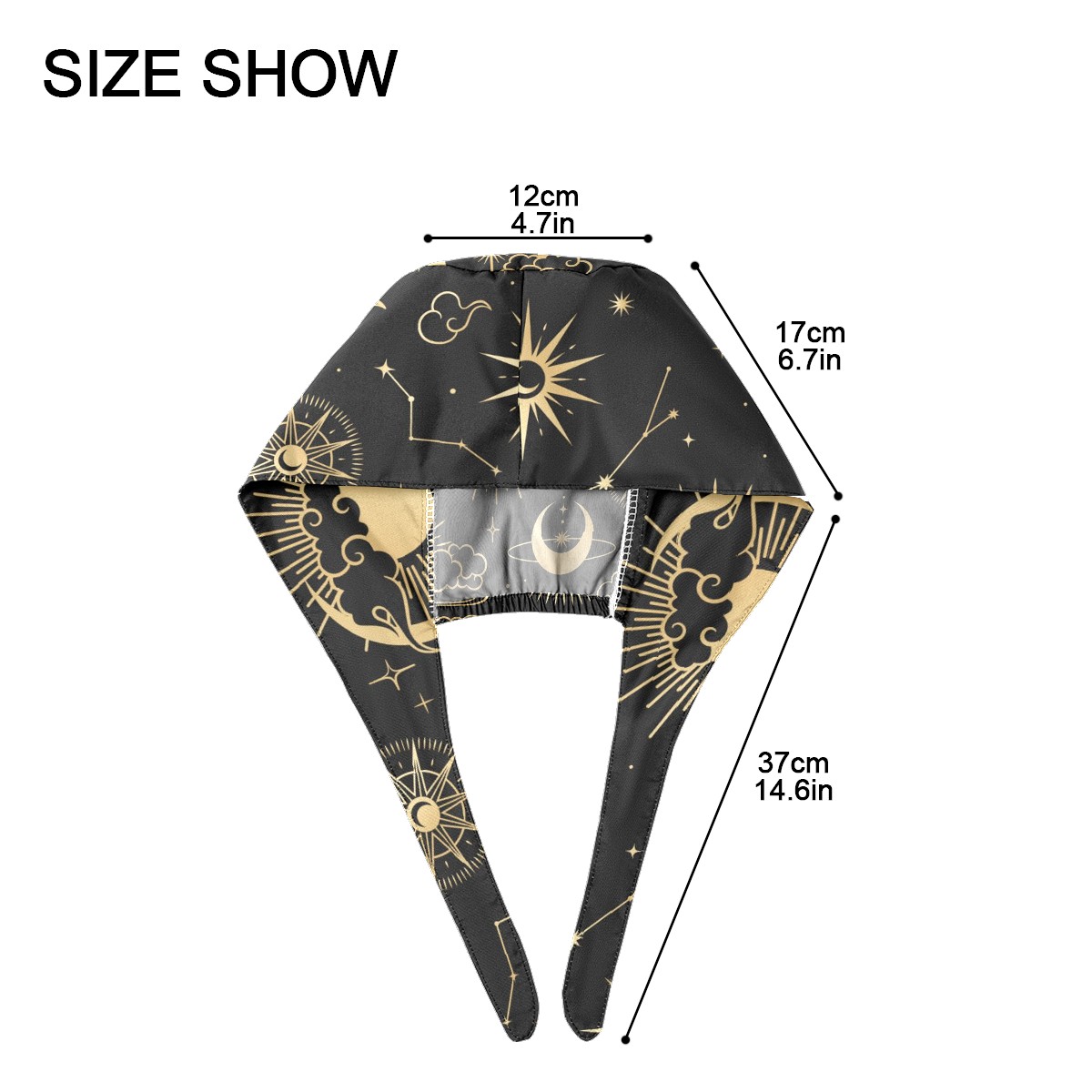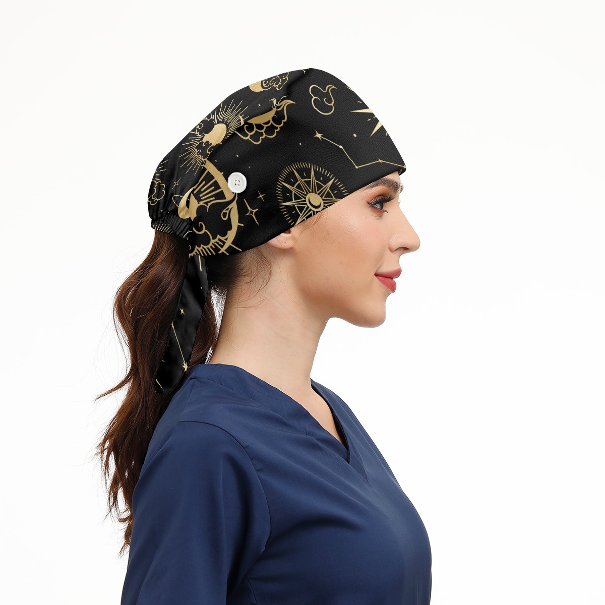 Working Caps with Button & Sweatband Satin Lined Cotton Adjustable Nurse Hats Elastic Band Scrub Cap Surgeon Hat Retro Moon Sun Stars Clouds