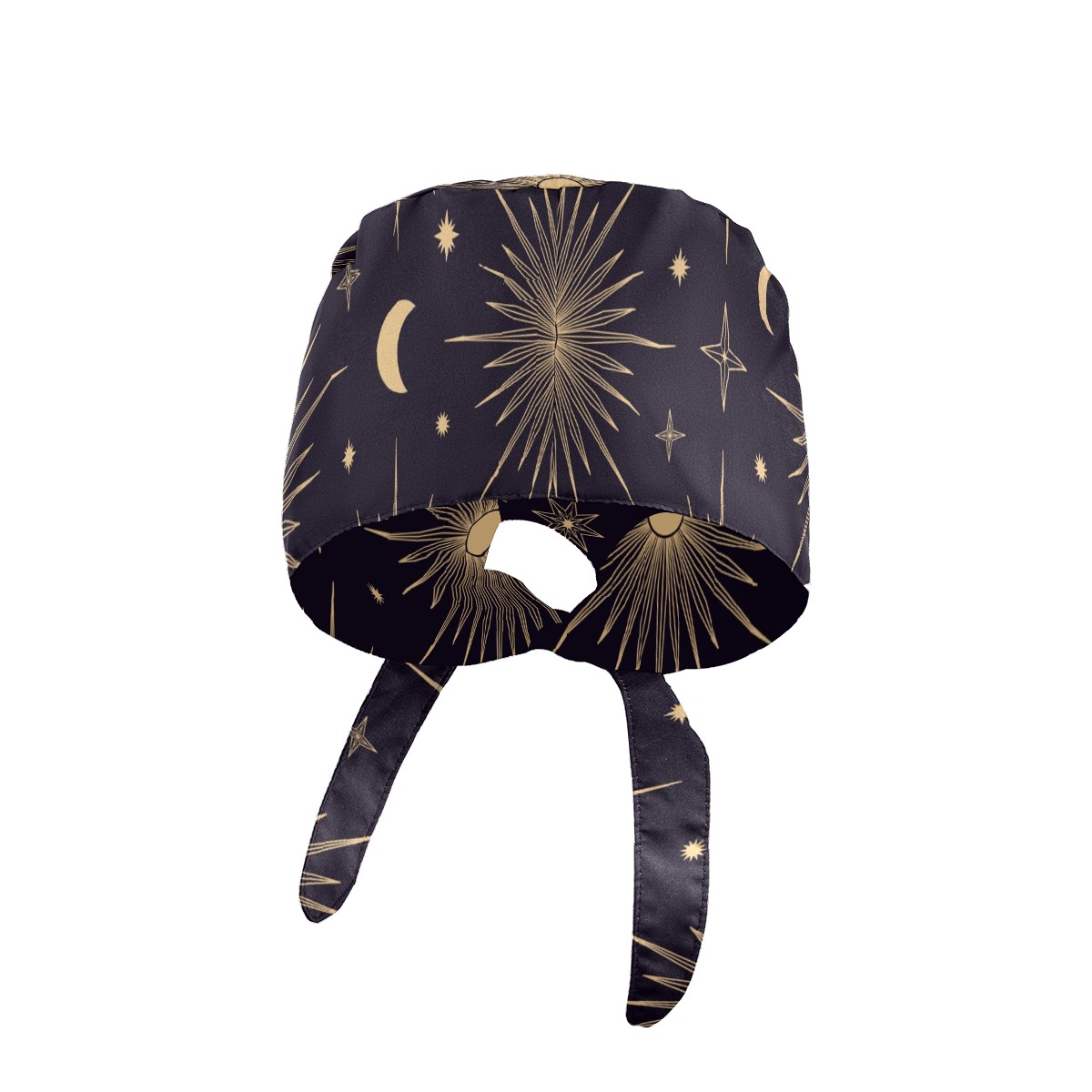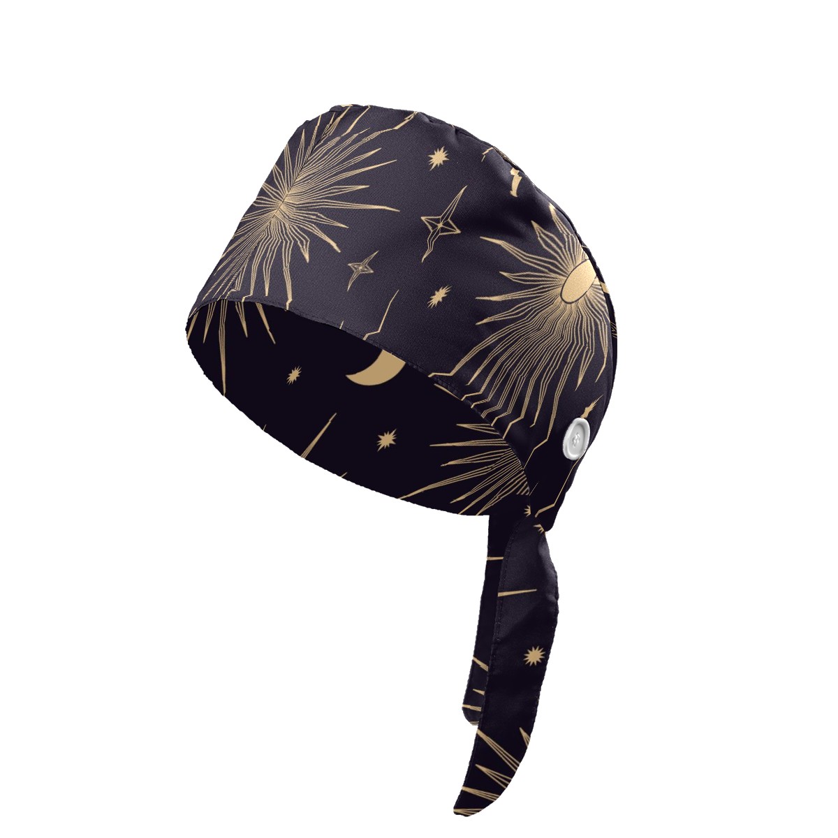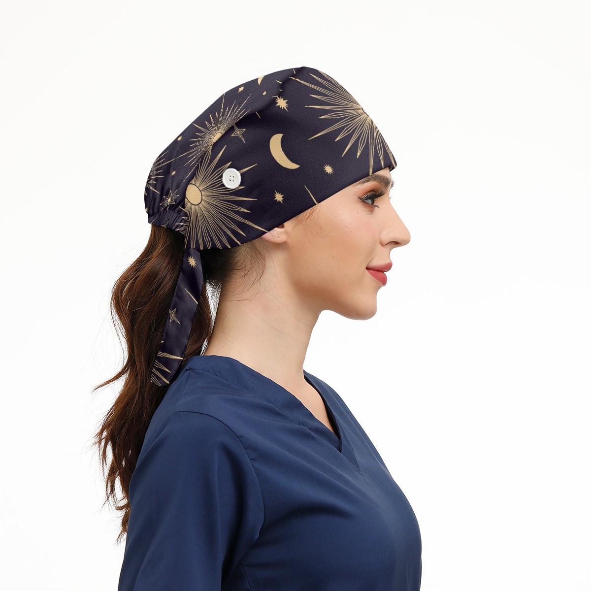 Working Caps with Button & Sweatband Satin Lined Cotton Adjustable Nurse Hats Elastic Band Scrub Cap Surgeon Hat Magic Sun Moon Star Galaxy