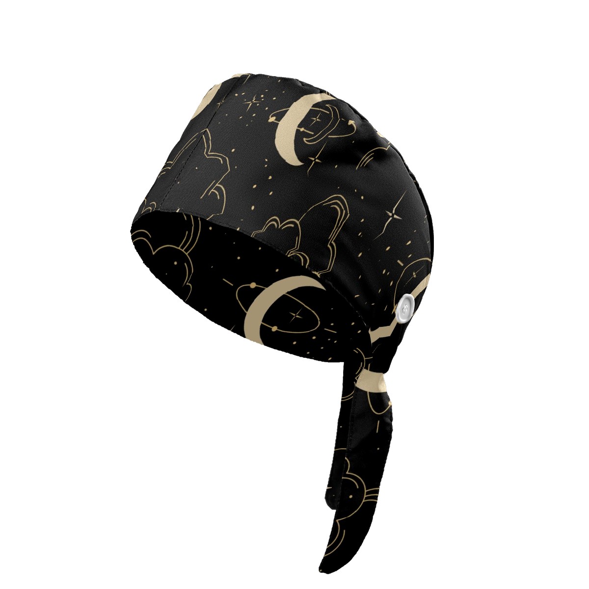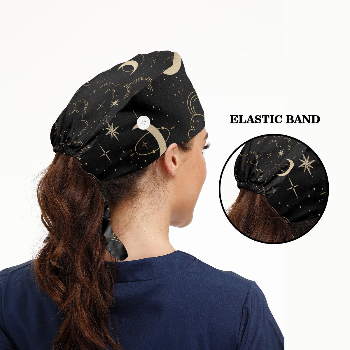 Working Caps with Button & Sweatband Satin Lined Cotton Adjustable Nurse Hats Elastic Band Scrub Cap Surgeon Hat Magic Cloud Moon And Star