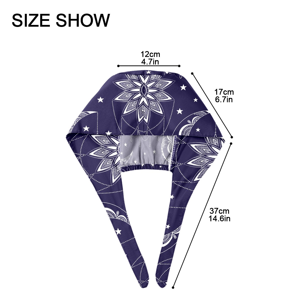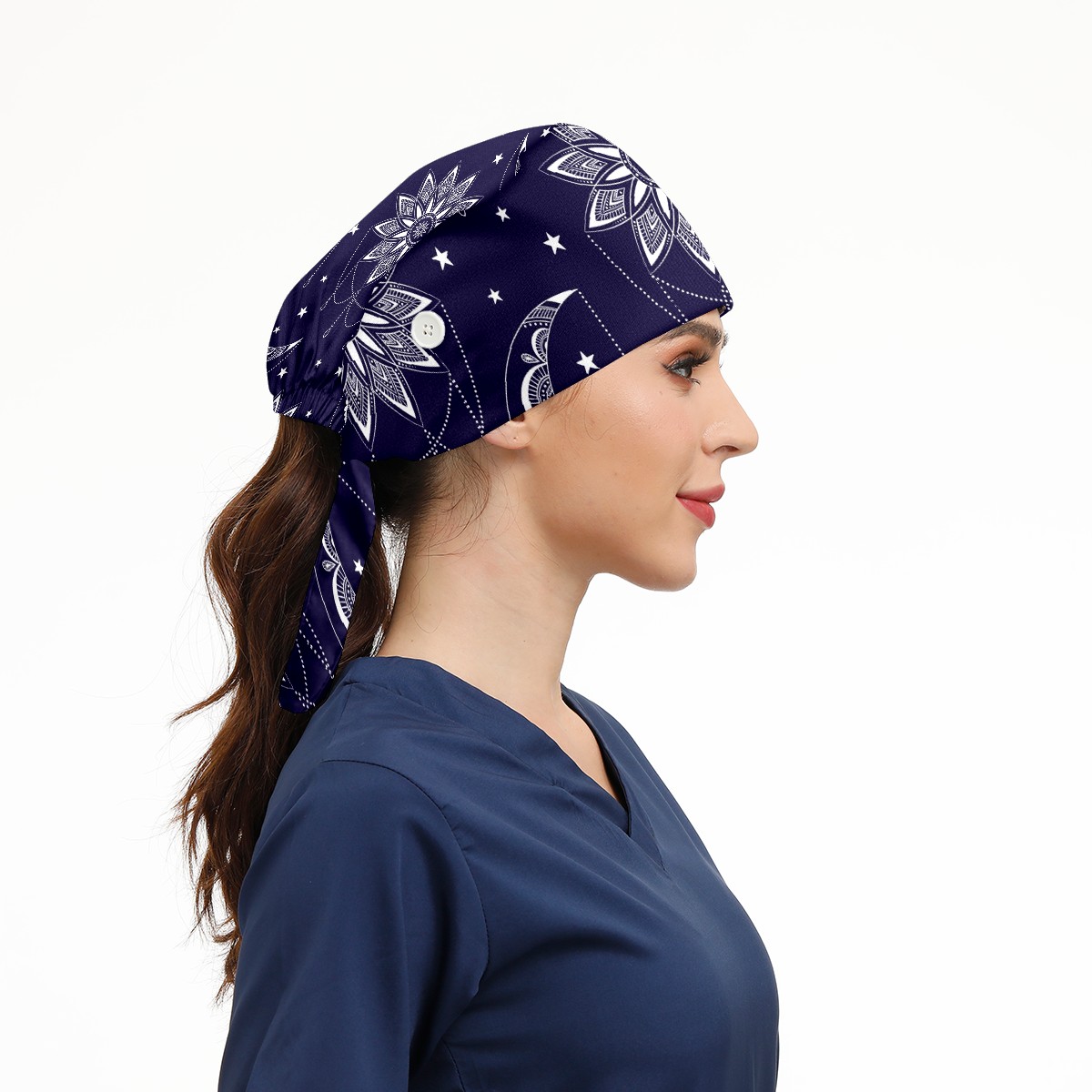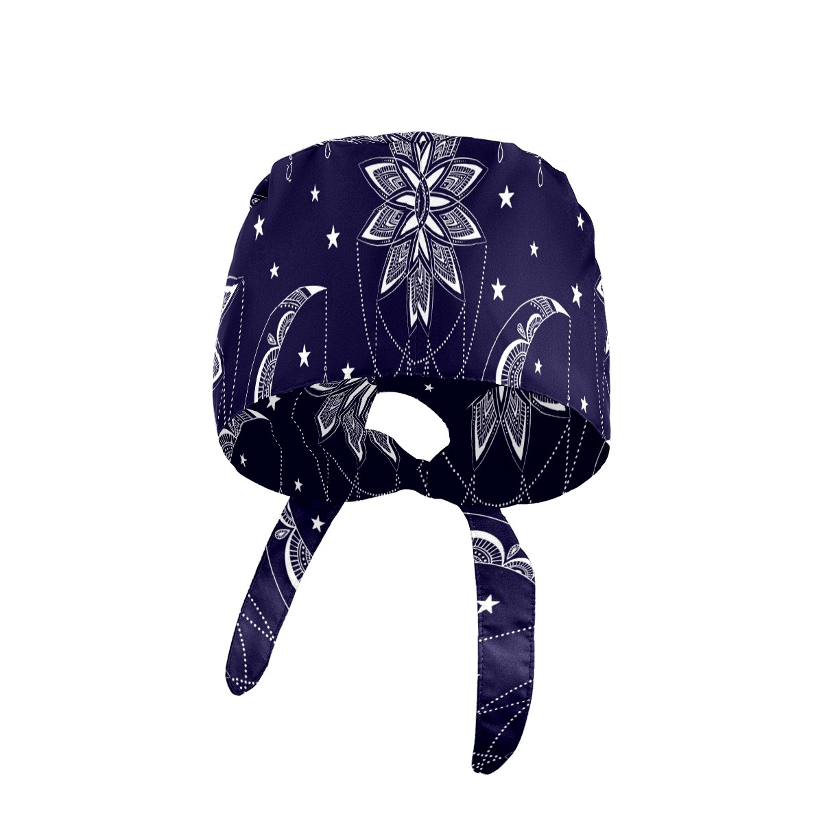 Working Caps with Button & Sweatband Satin Lined Cotton Adjustable Nurse Hats Elastic Band Scrub Cap Surgeon Hat Abstract Boho Moon Sun Stars