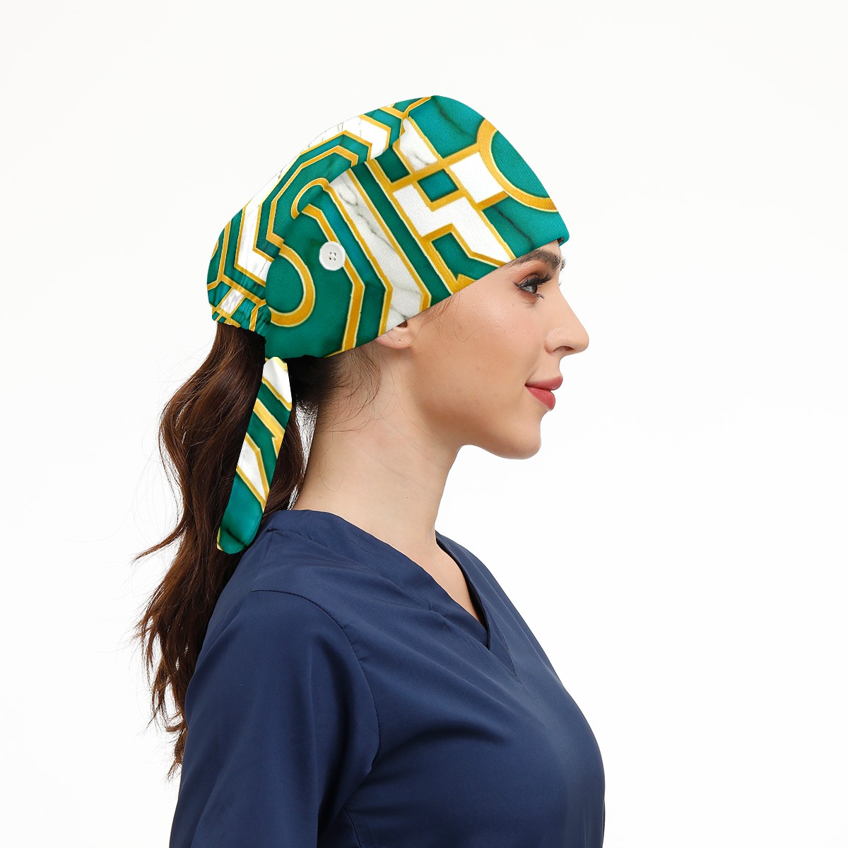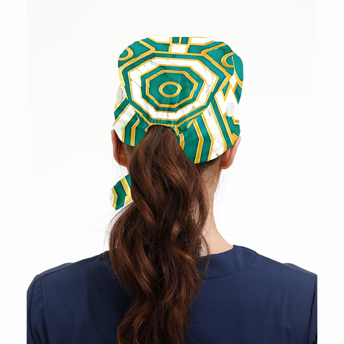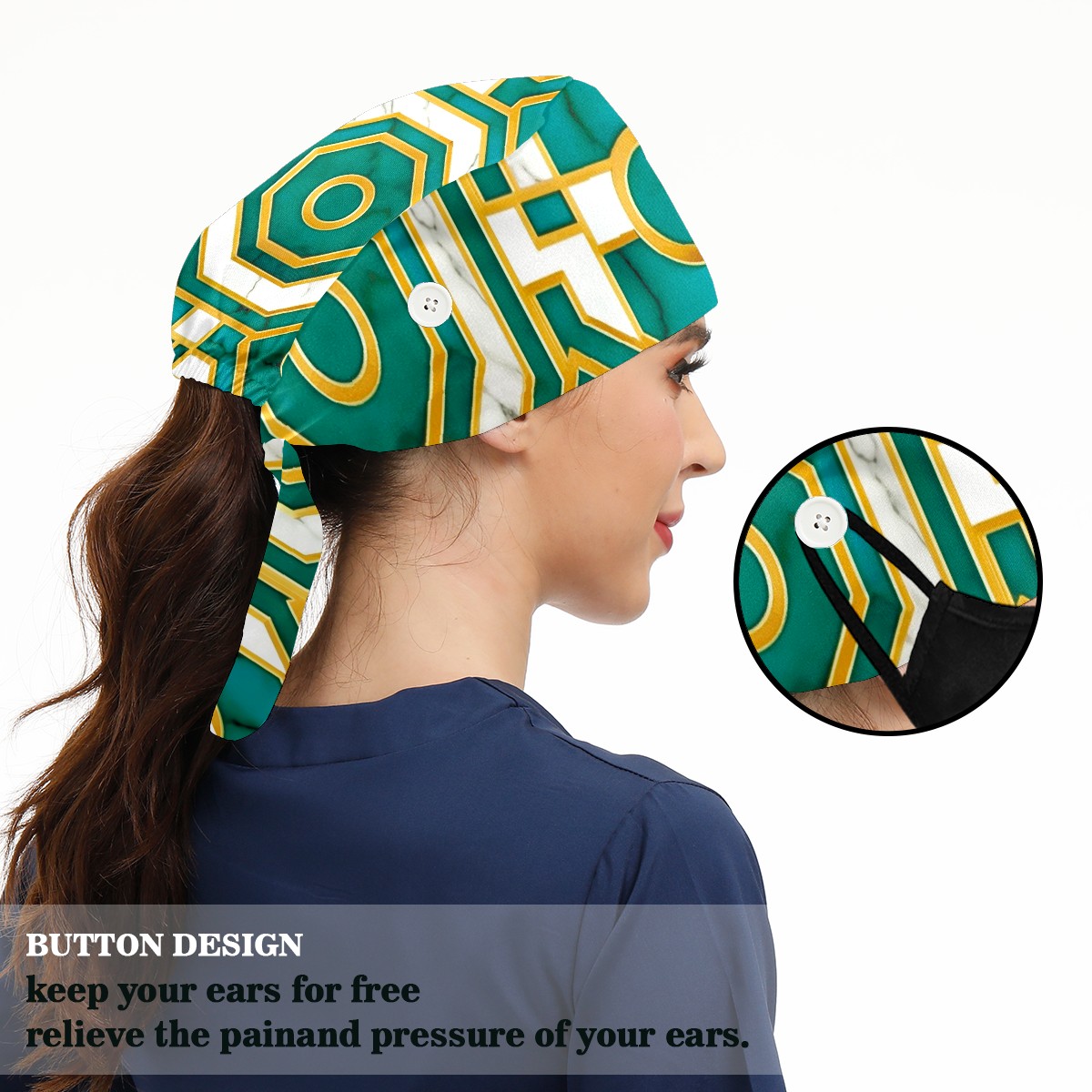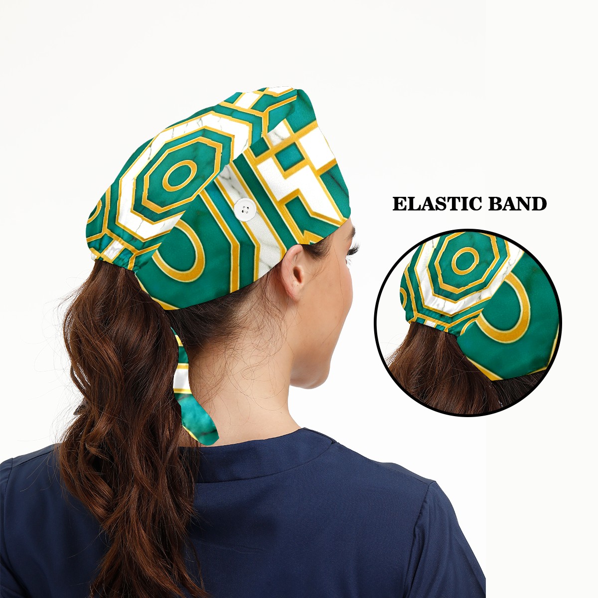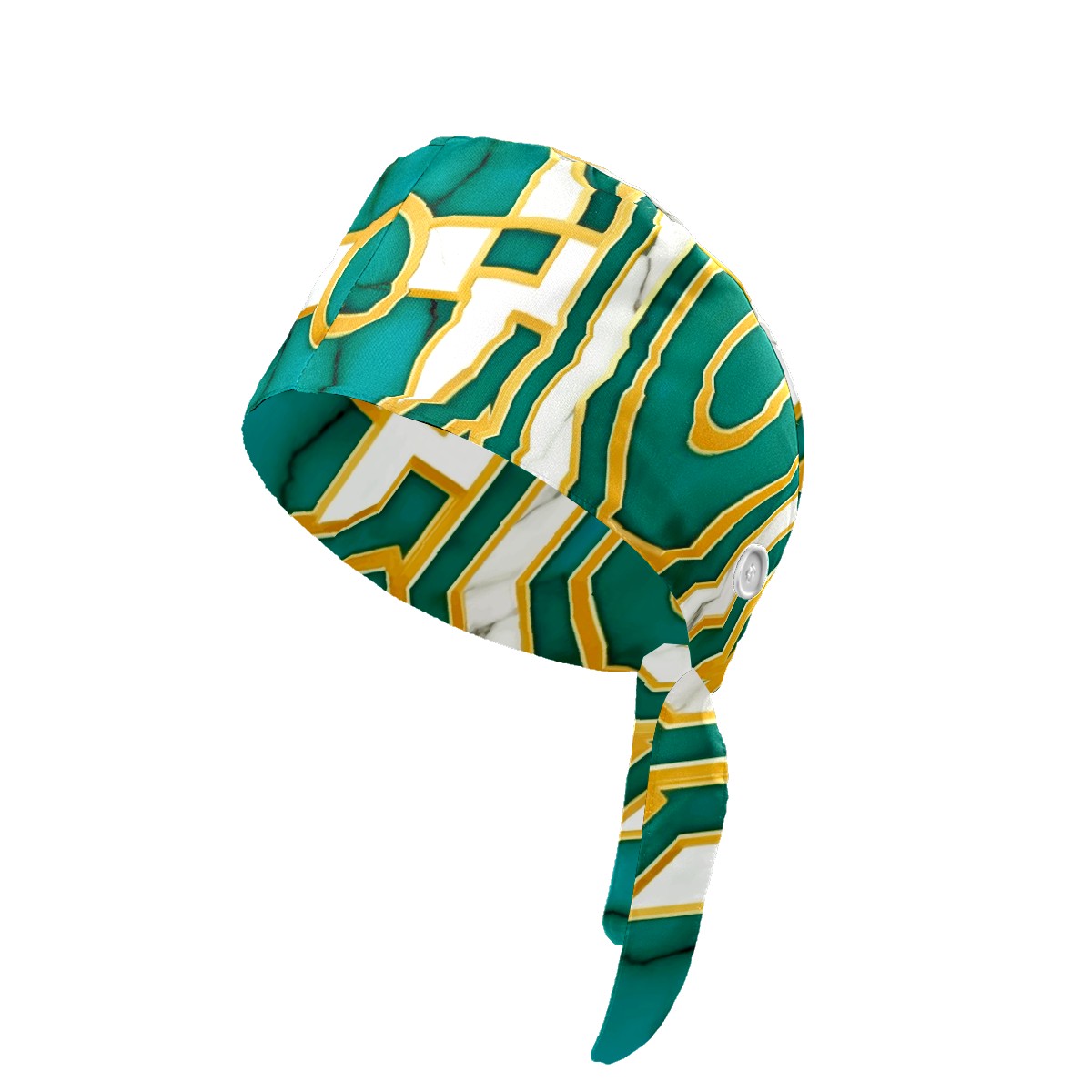 Working Caps with Button & Sweatband Satin Lined Cotton Adjustable Nurse Hats Elastic Band Scrub Cap Surgeon Hat Turquoise Gold Marble