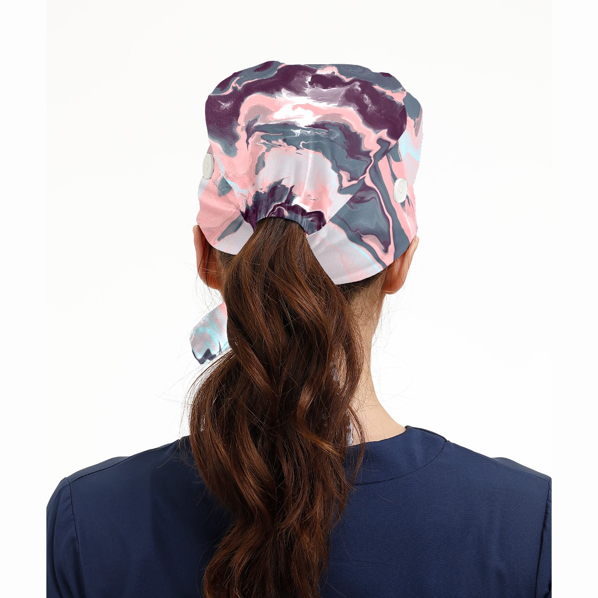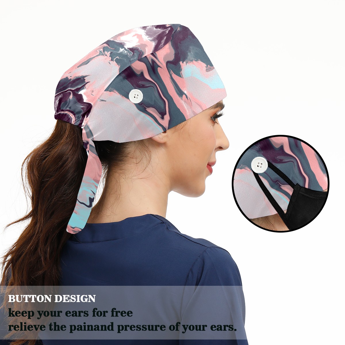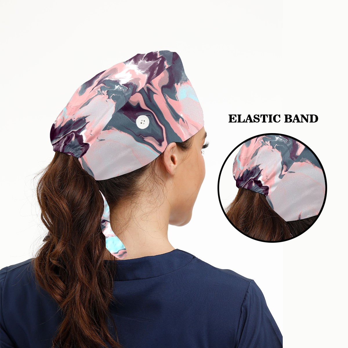 Working Caps with Button & Sweatband Satin Lined Cotton Adjustable Nurse Hats Elastic Band Scrub Cap Surgeon Hat Abstract Liquid Tie Dye Marble
