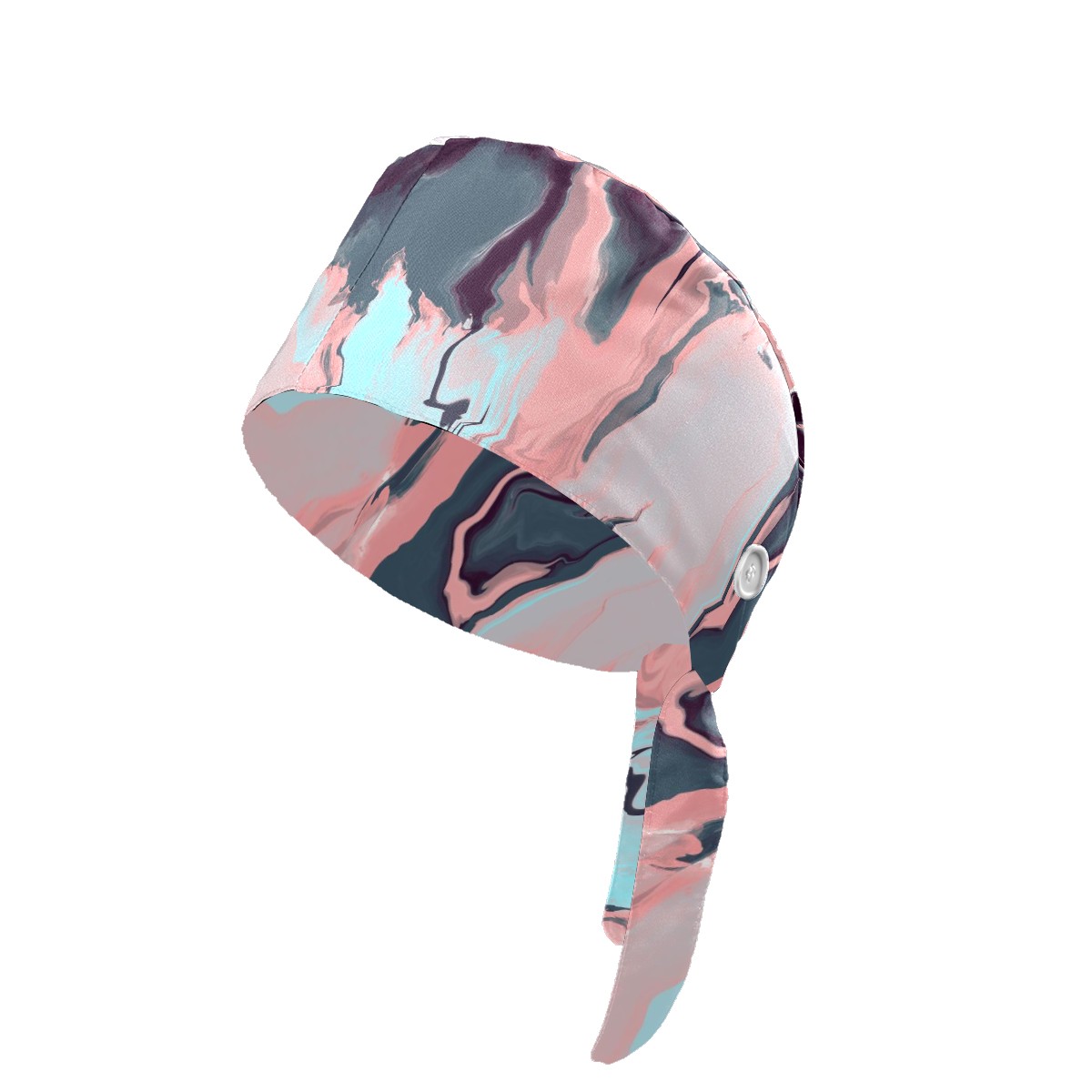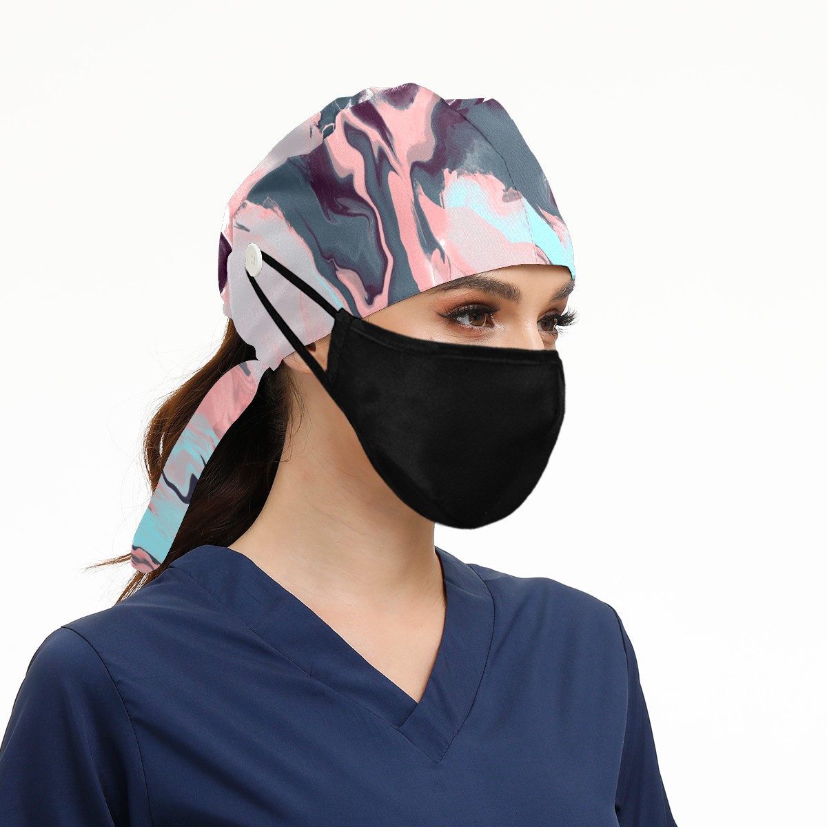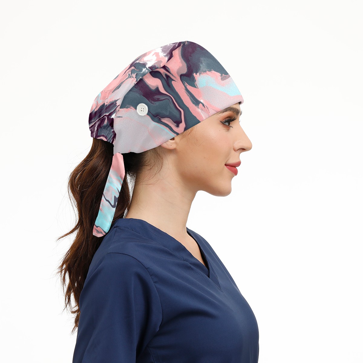 Working Caps with Button & Sweatband Satin Lined Cotton Adjustable Nurse Hats Elastic Band Scrub Cap Surgeon Hat Abstract Liquid Tie Dye Marble