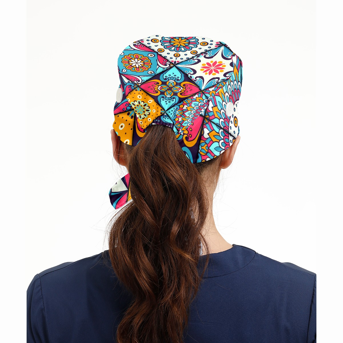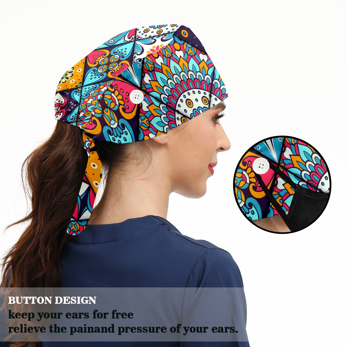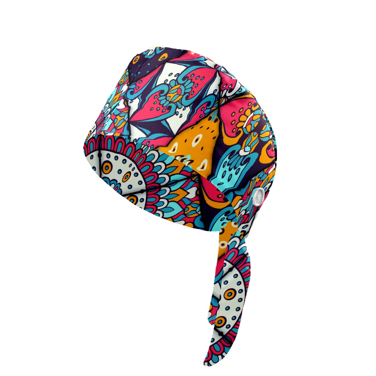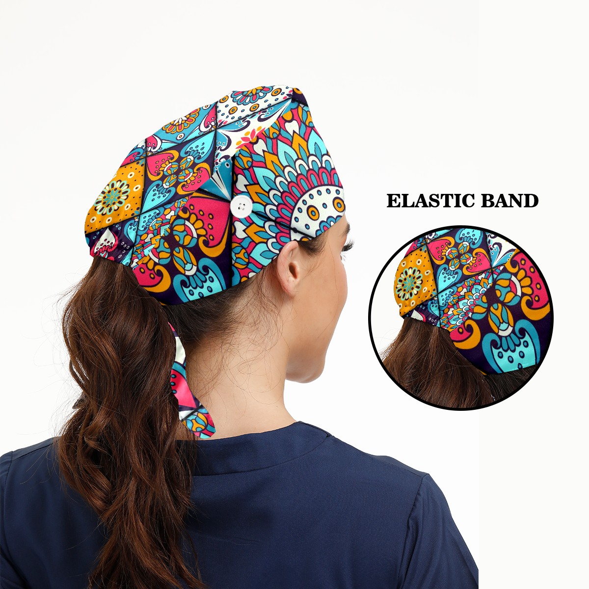 Working Caps with Button & Sweatband Satin Lined Cotton Adjustable Nurse Hats Elastic Band Scrub Cap Surgeon Hat Vintage Ethnic Mandala Decorative Elements