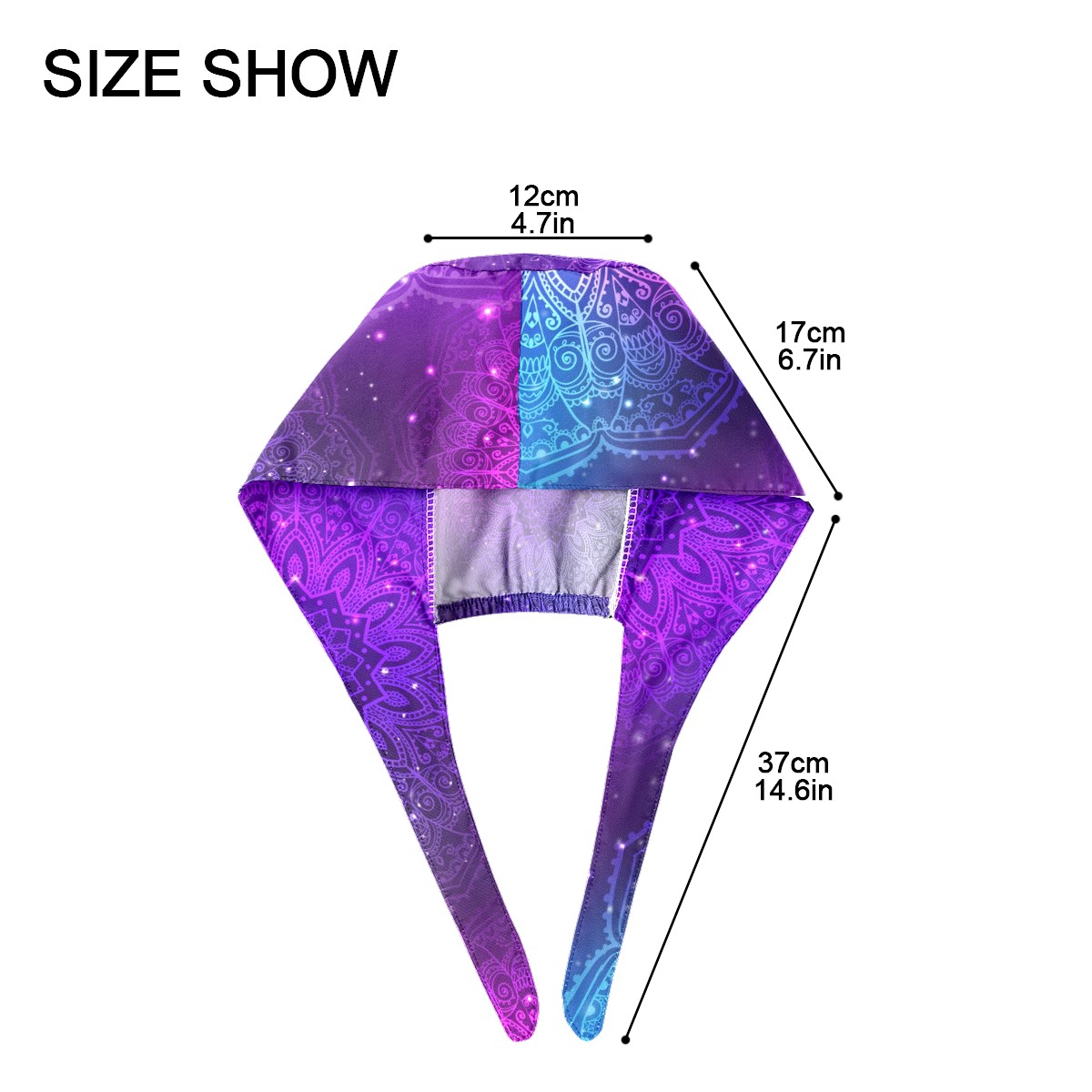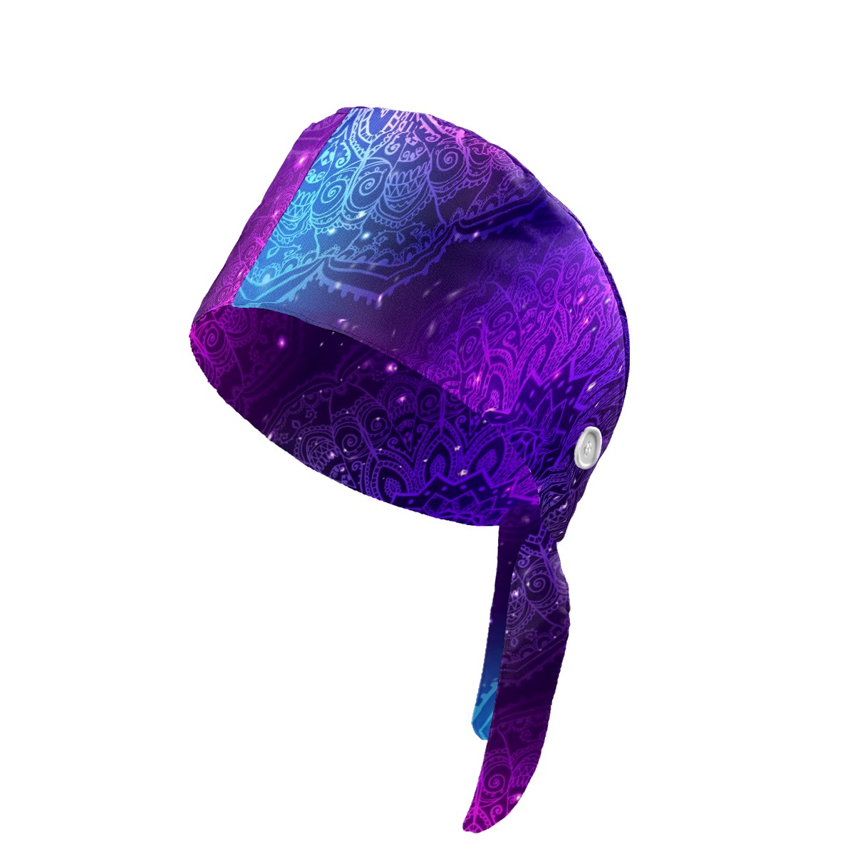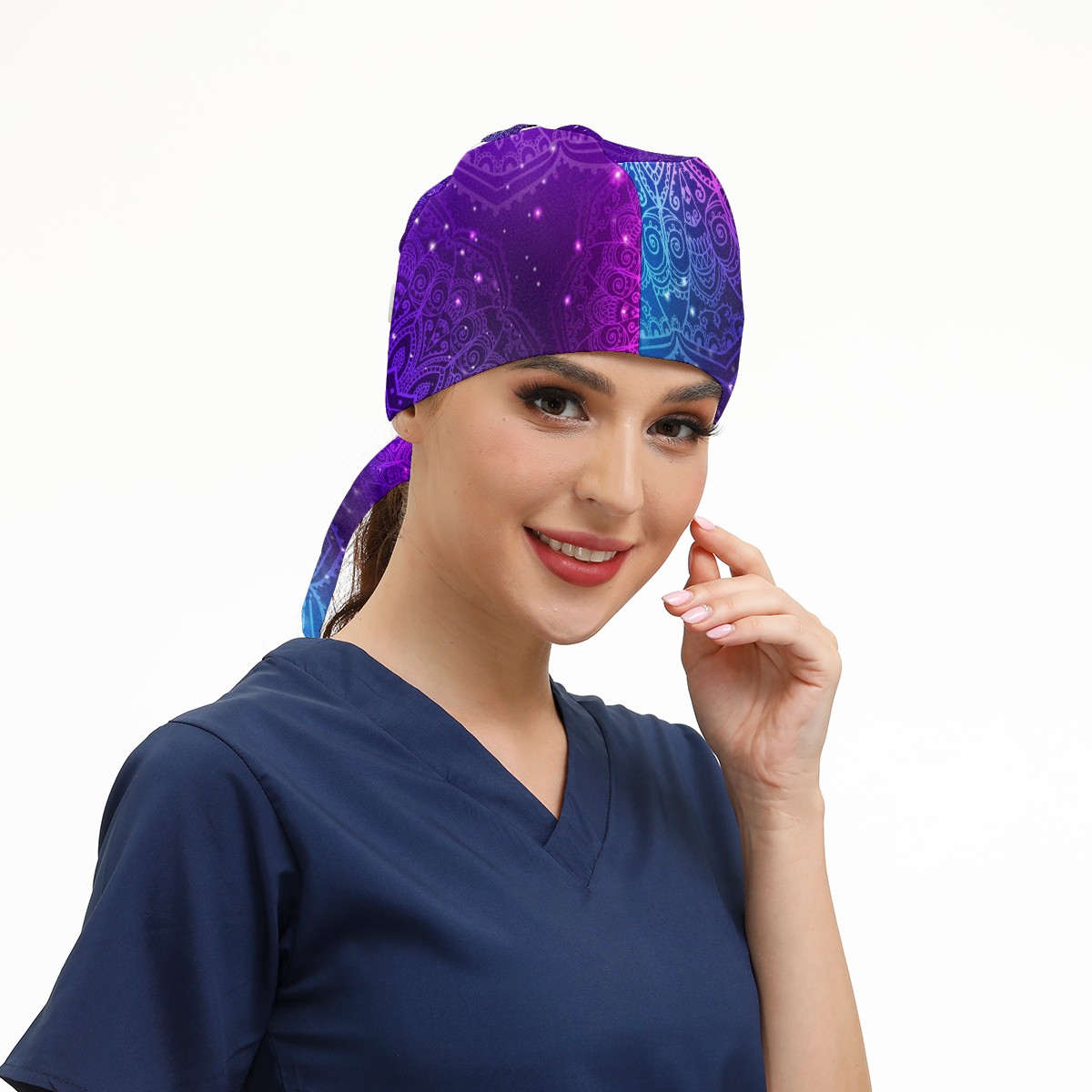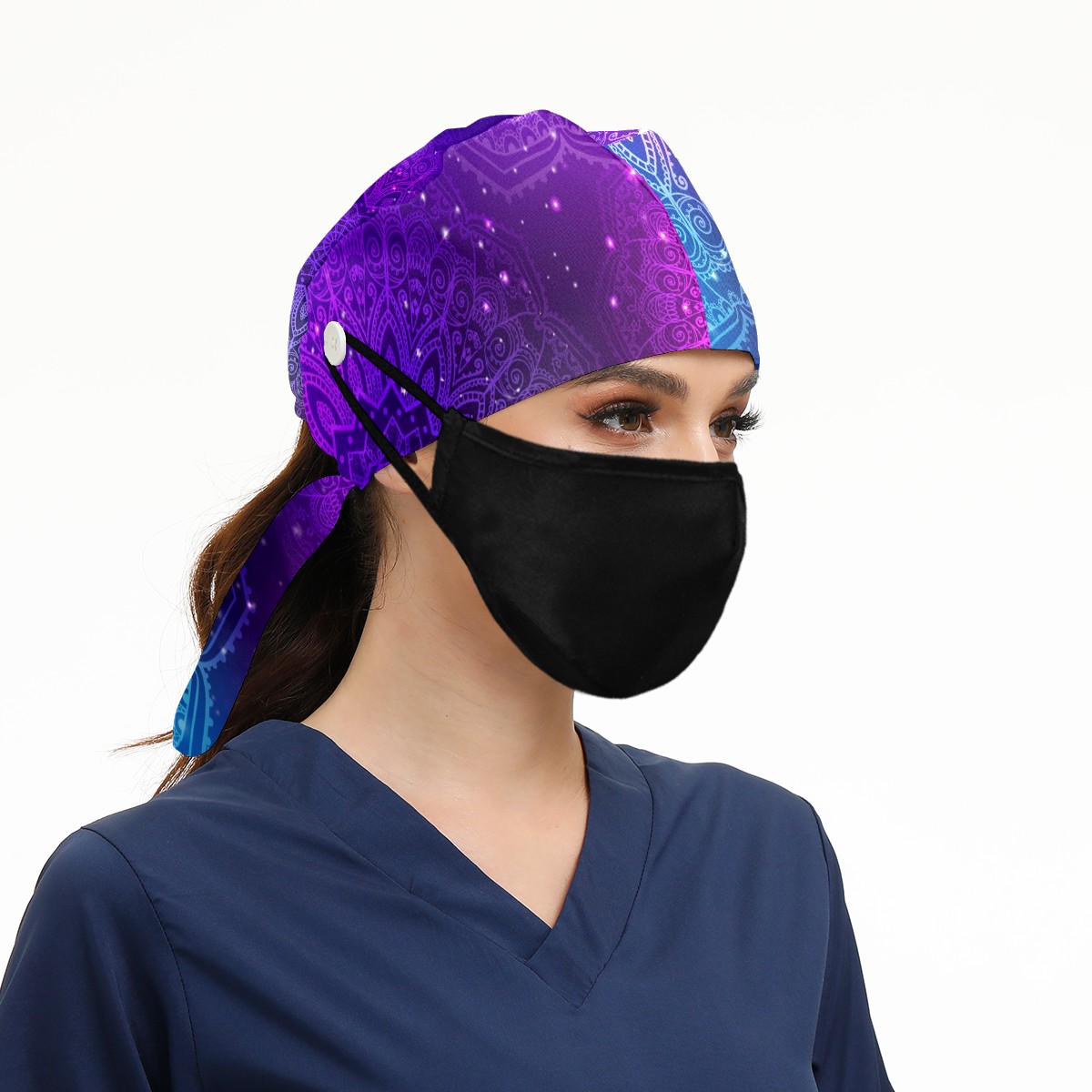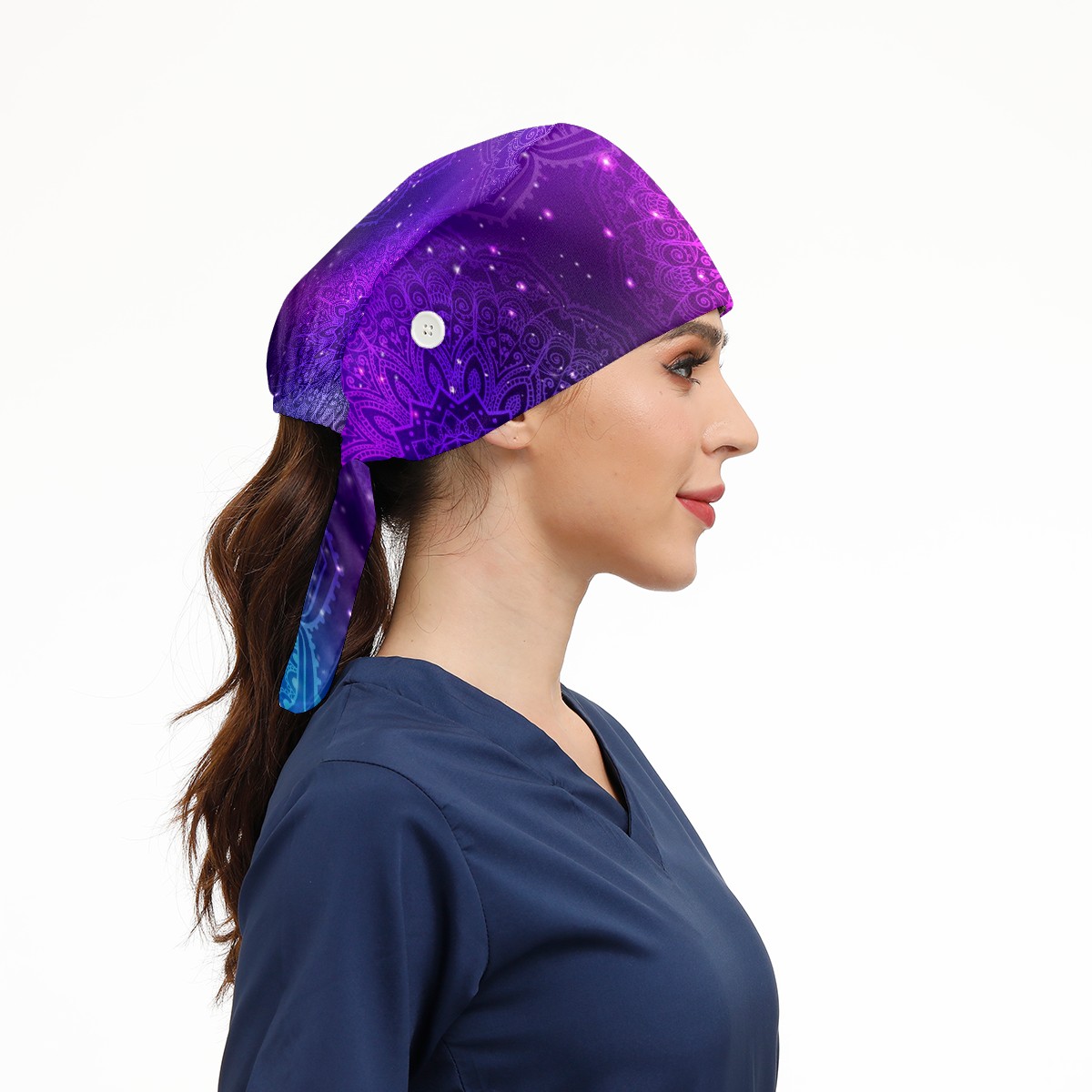 Working Caps with Button & Sweatband Satin Lined Cotton Adjustable Nurse Hats Elastic Band Scrub Cap Surgeon Hat Purple Boho Mandala Galaxy